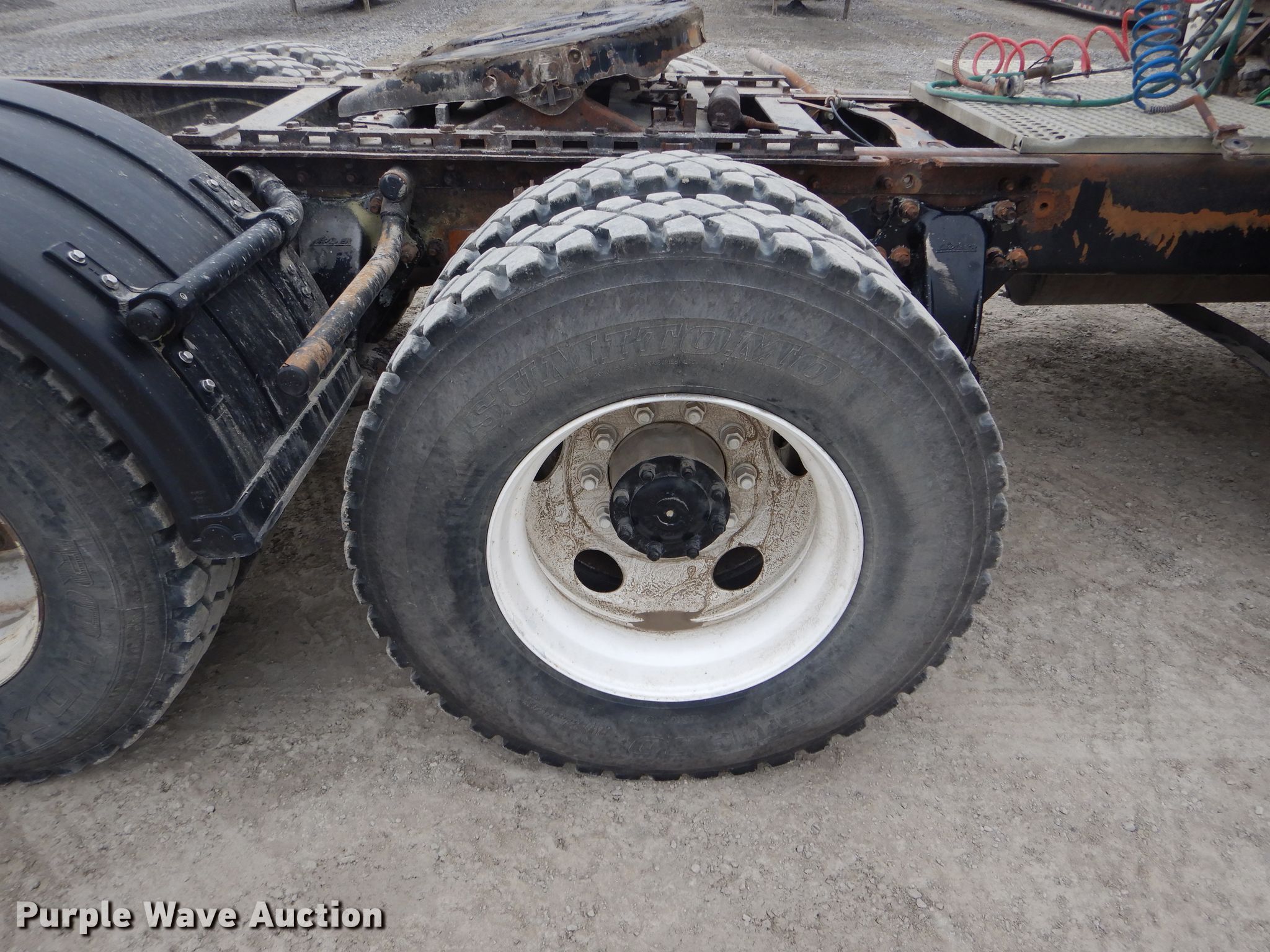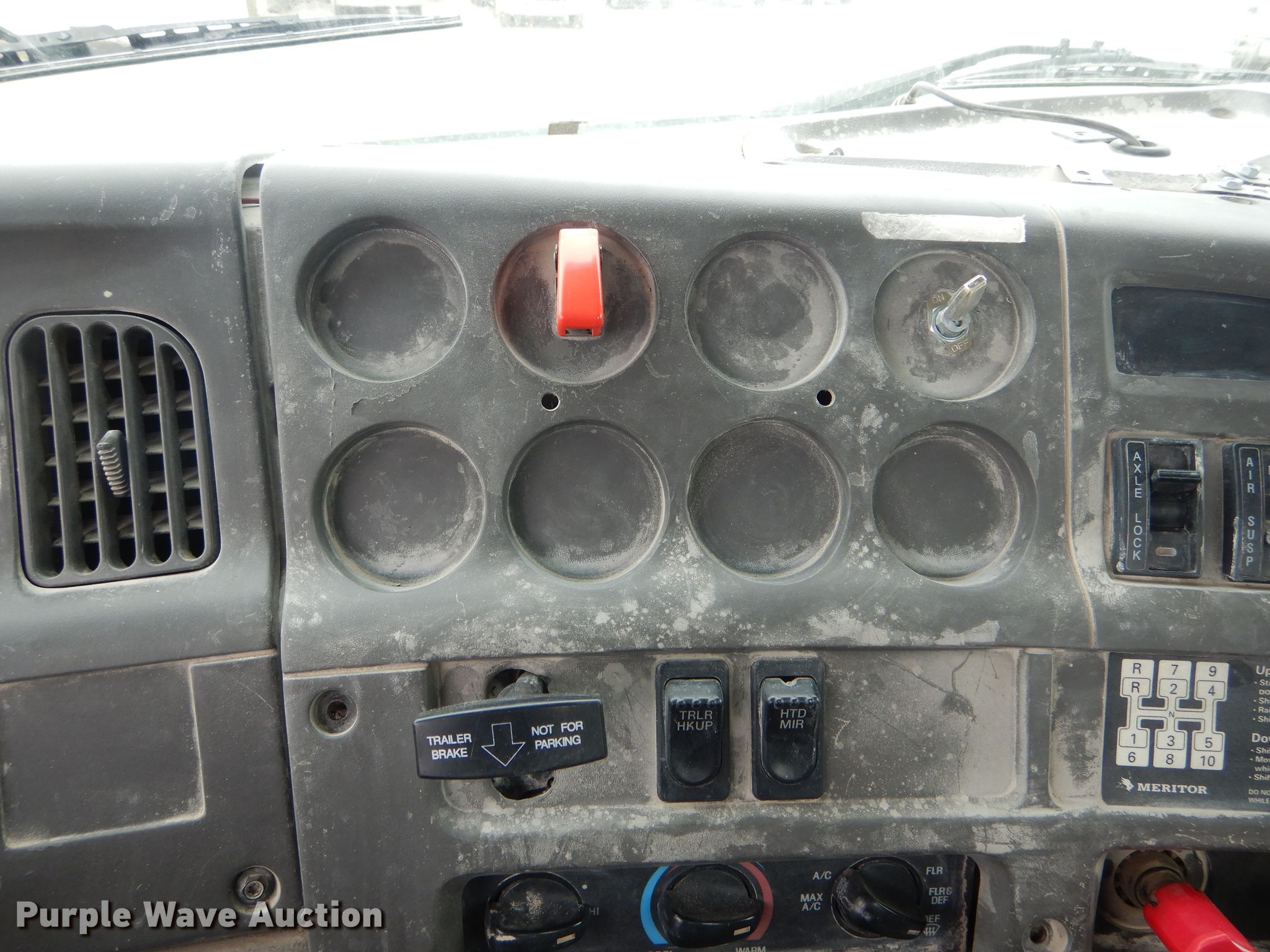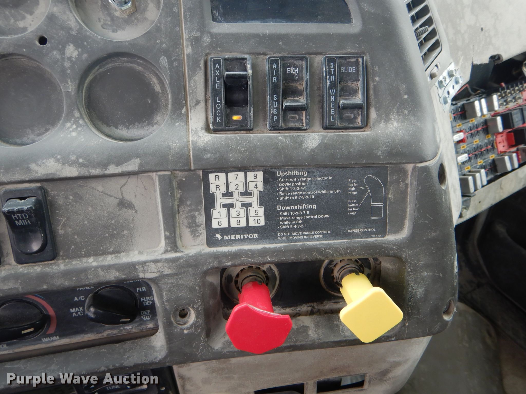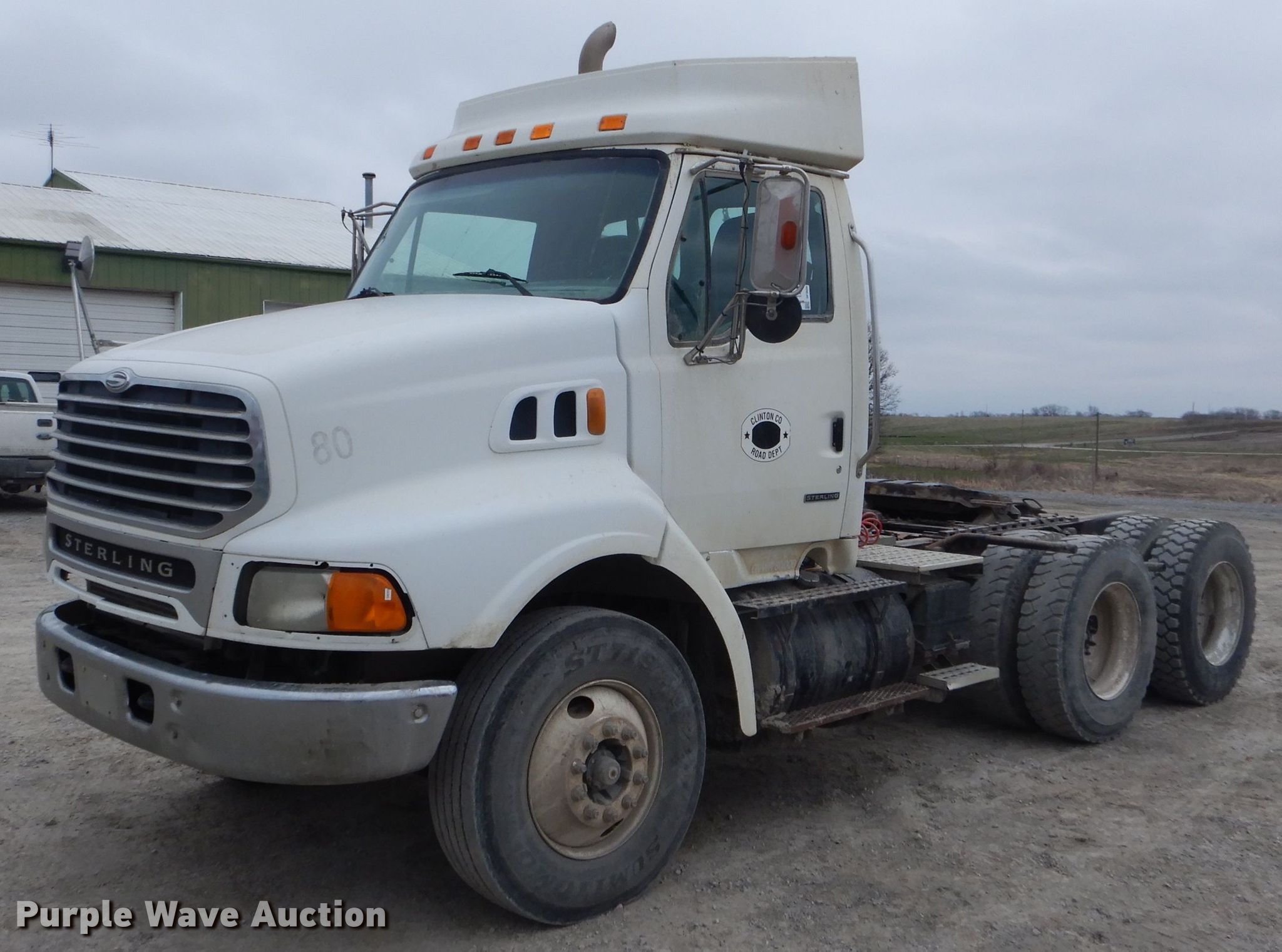 Purple Wave is selling a used Truck Tractor in Missouri. This item is a 2002 Sterling AT9500 semi truck with the following: 489,731 miles on odometer, Caterpillar C12 12.0L L6 diesel engine, Serial 2KS71219, Meritor 10 speed manual transmission, Tandem axle, Inter-axle differential lock, AC and heat, Cruise, Heated mirrors, Dump valves, Aluminum deck plate, Air operated sliding fifth wheel plate, Dual fuel tanks, Air suspension, Air brakes, 164" wheelbase, 11R22.5 tires, GVWR 52,000 lbs, FAWR 12,000 lbs, IAWR 20,000 lbs, RAWR 20,000 lbs, Unit# 80
