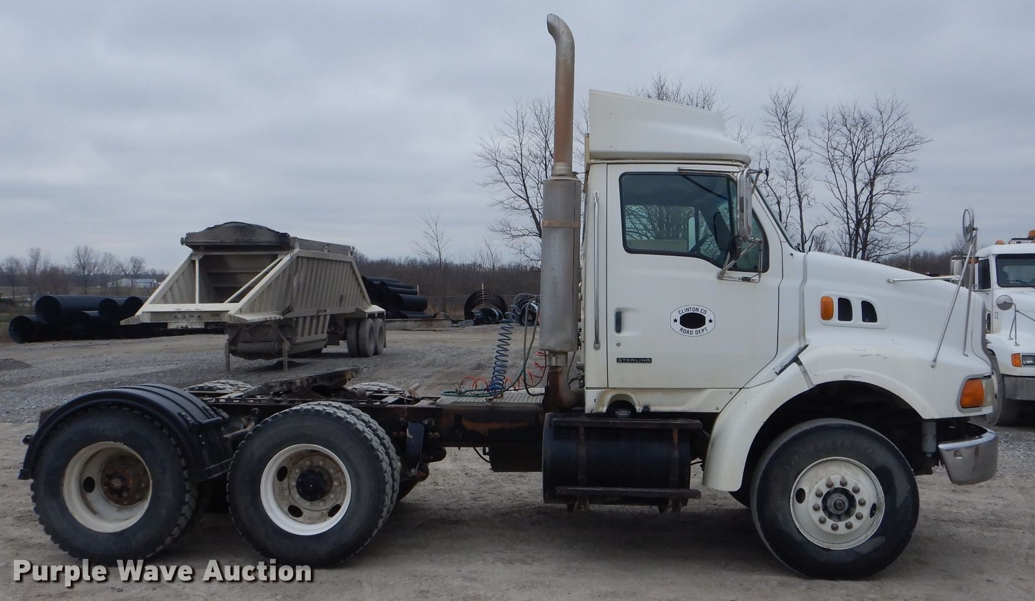 2002 Sterling AT9500 semi truck. 489,731 miles on odometer, Caterpillar C12 12.0L L6 diesel engine Serial 2KS71219, Meritor 10 speed manual transmission, Tandem axle, Inter-axle differential lock, AC and heat, Cruise, Heated mirrors, Dump valves, Aluminum deck plate, Air operated sliding fifth wheel plate, Dual fuel tanks, Air suspension, Air brakes, 164" wheelbase, 11R22.5 tires, GVWR 52,000 lbs, FAWR 12,000 lbs, IAWR 20,000 lbs, RAWR 20,000 lbs, Unit# 80. Missouri title. Seller is a government entity who will be assigning and distributing the title. Please contact the seller for distribution questions. 2FWJA3AS22AJ83220. Clinton County. 257 MO-116. Plattsburg, MO 64477