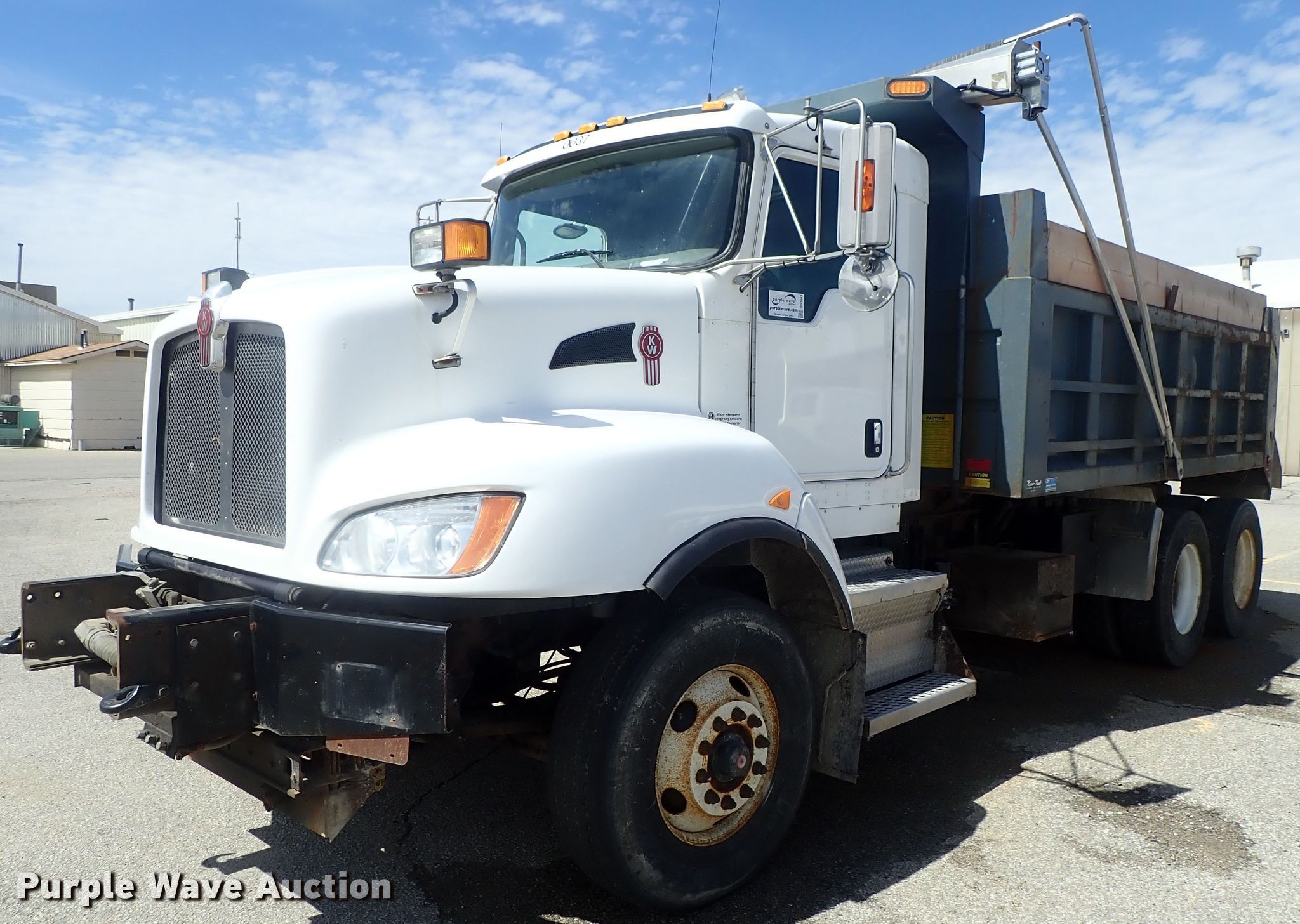 Purple Wave is selling a used Construction Dump Truck in Kansas. This item is a 2010 Kenworth T400 dump truck with the following: 166,394 miles on odometer, 6,905 hours on meter, 8.9L L6 diesel engine, Allison automatic transmission, Tandem axle, AC and heat, Cruise, PTO, Warren FL-15 steel dump bed, 15'L x 96"W, 12 to 14 cu.yd. capacity, Single ram hoist, Air operated end gate, Roll tarp, Air suspension, Air brakes, 315/80R22.5 front tires, 11R22.5 rear tires, GVWR 60,000 lbs
