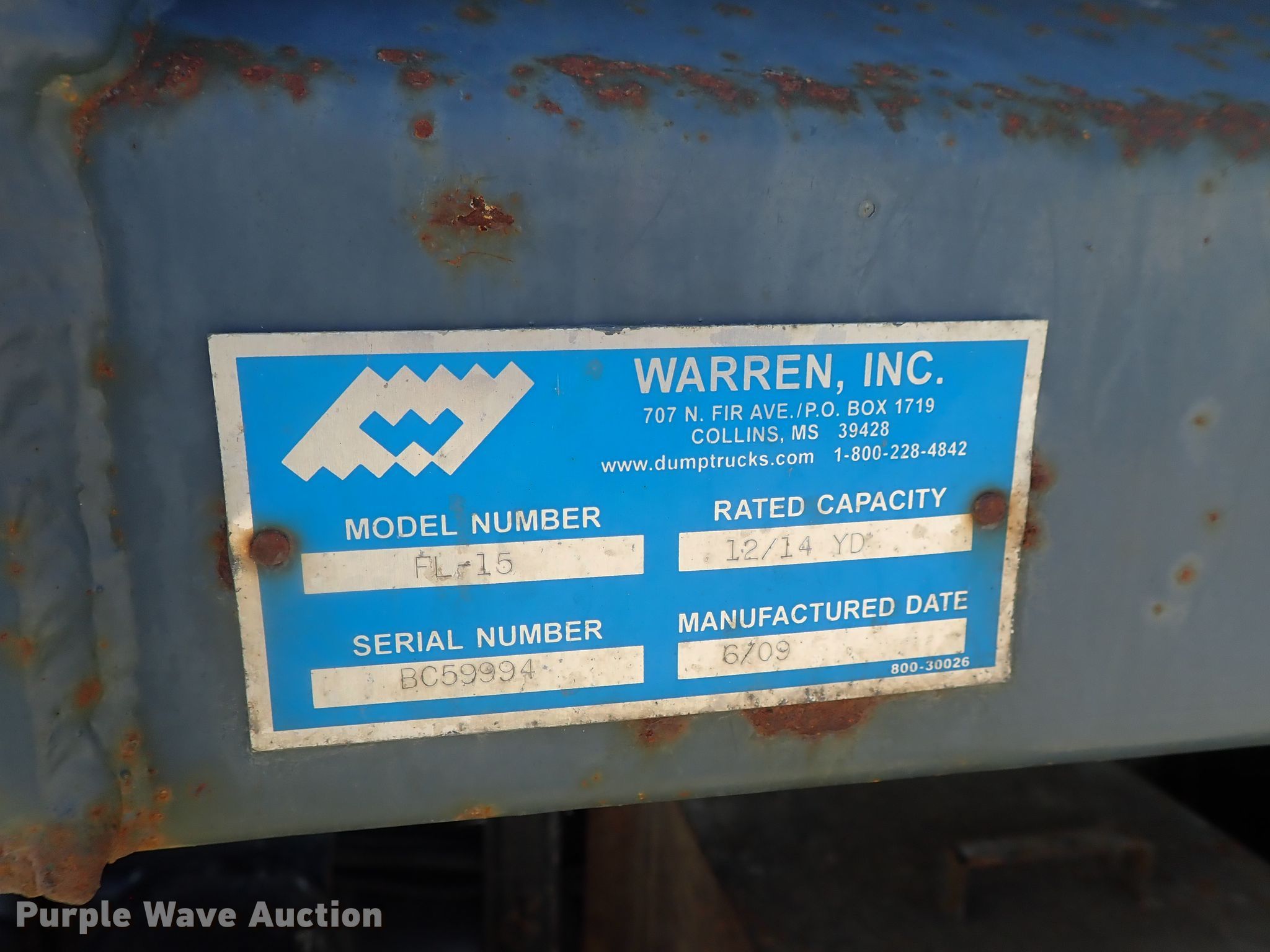 - Warren FL-15 steel dump bed