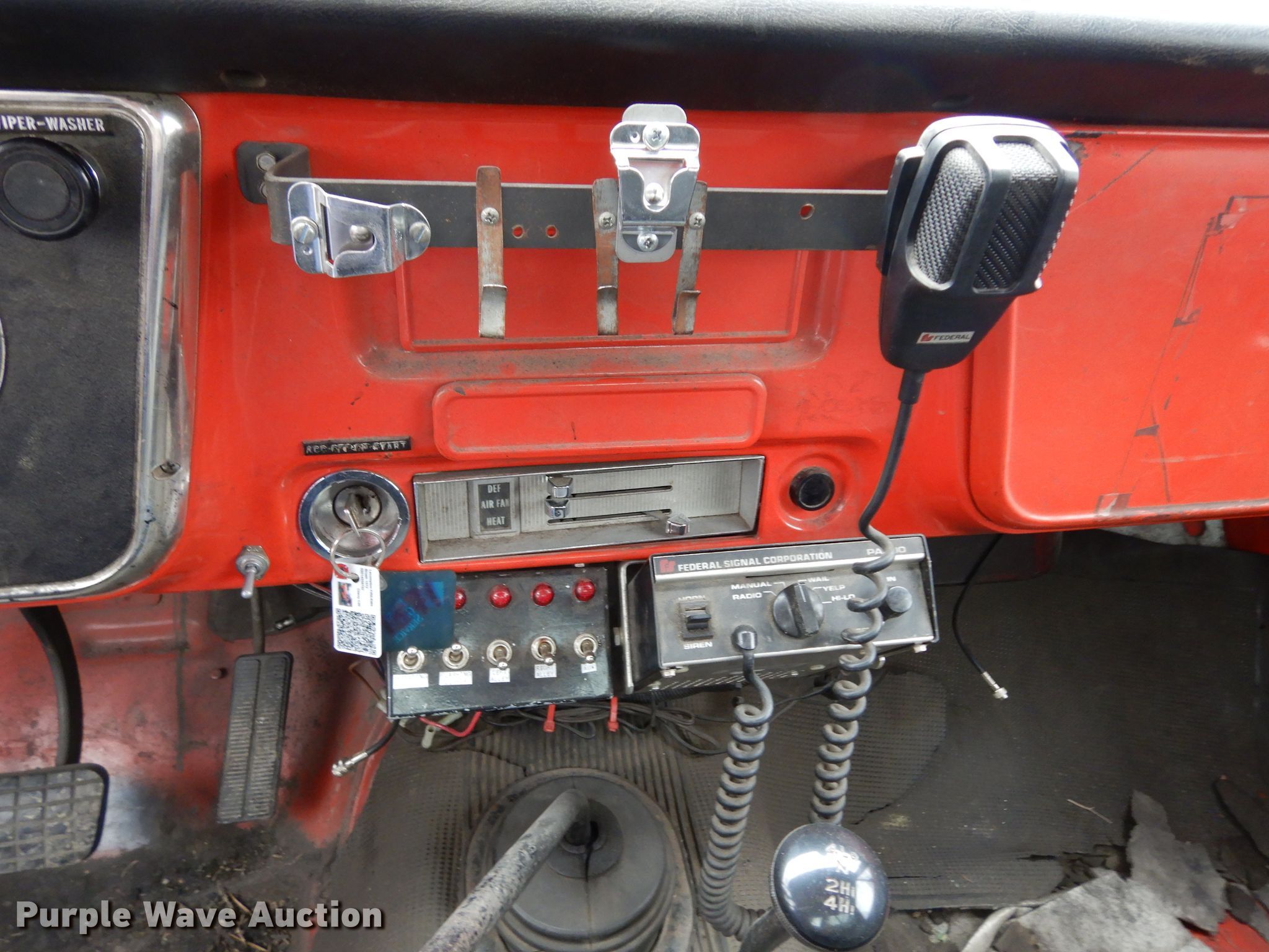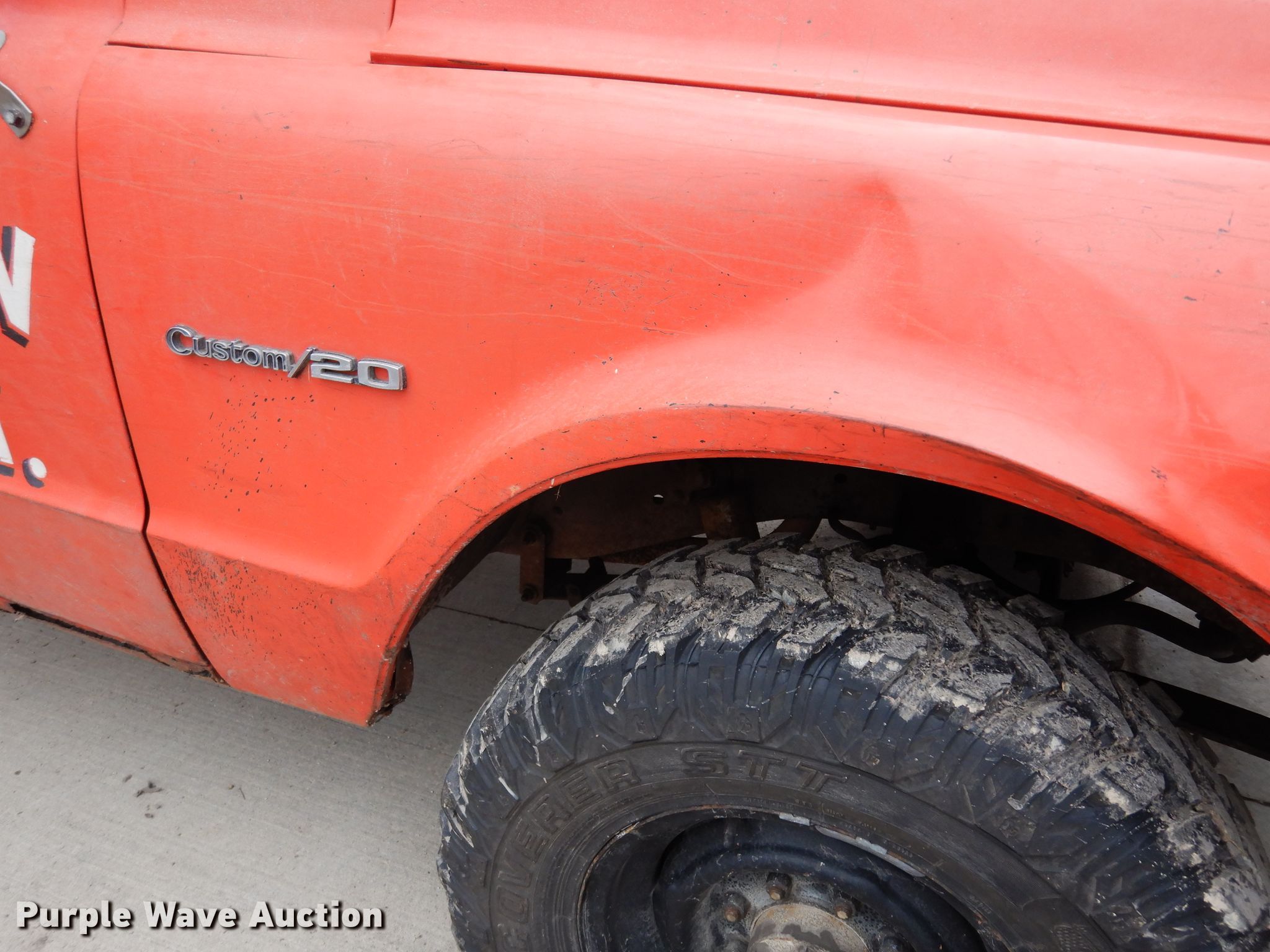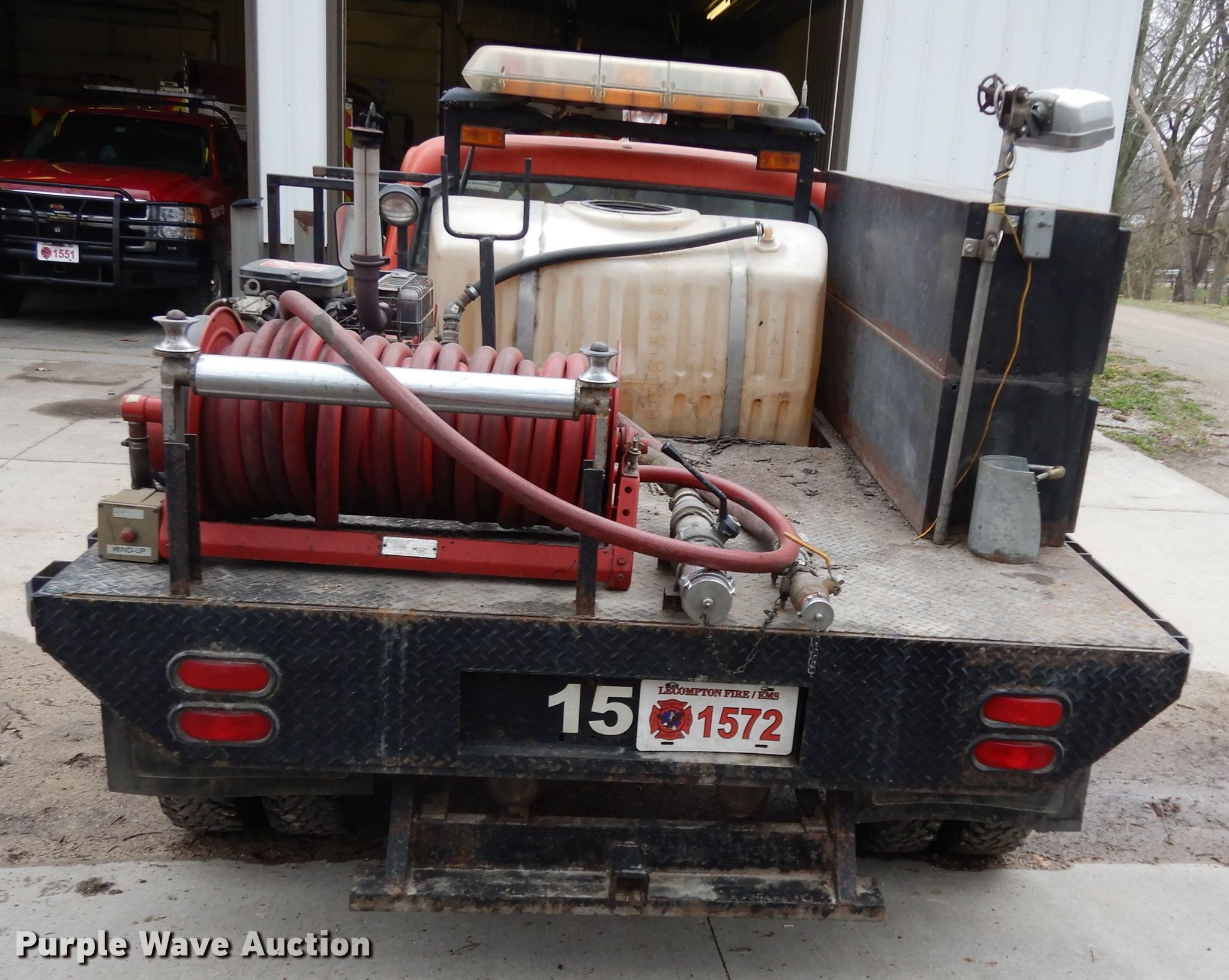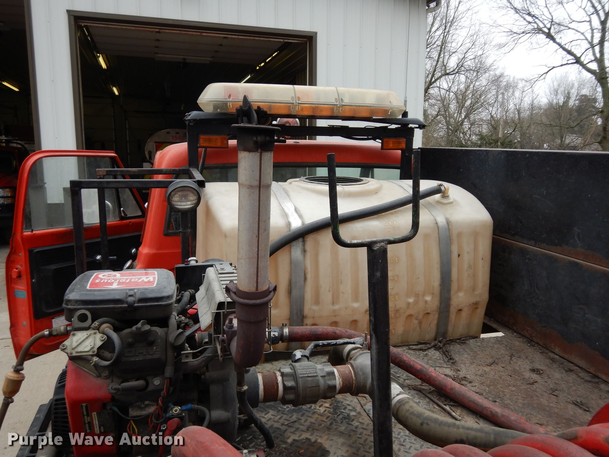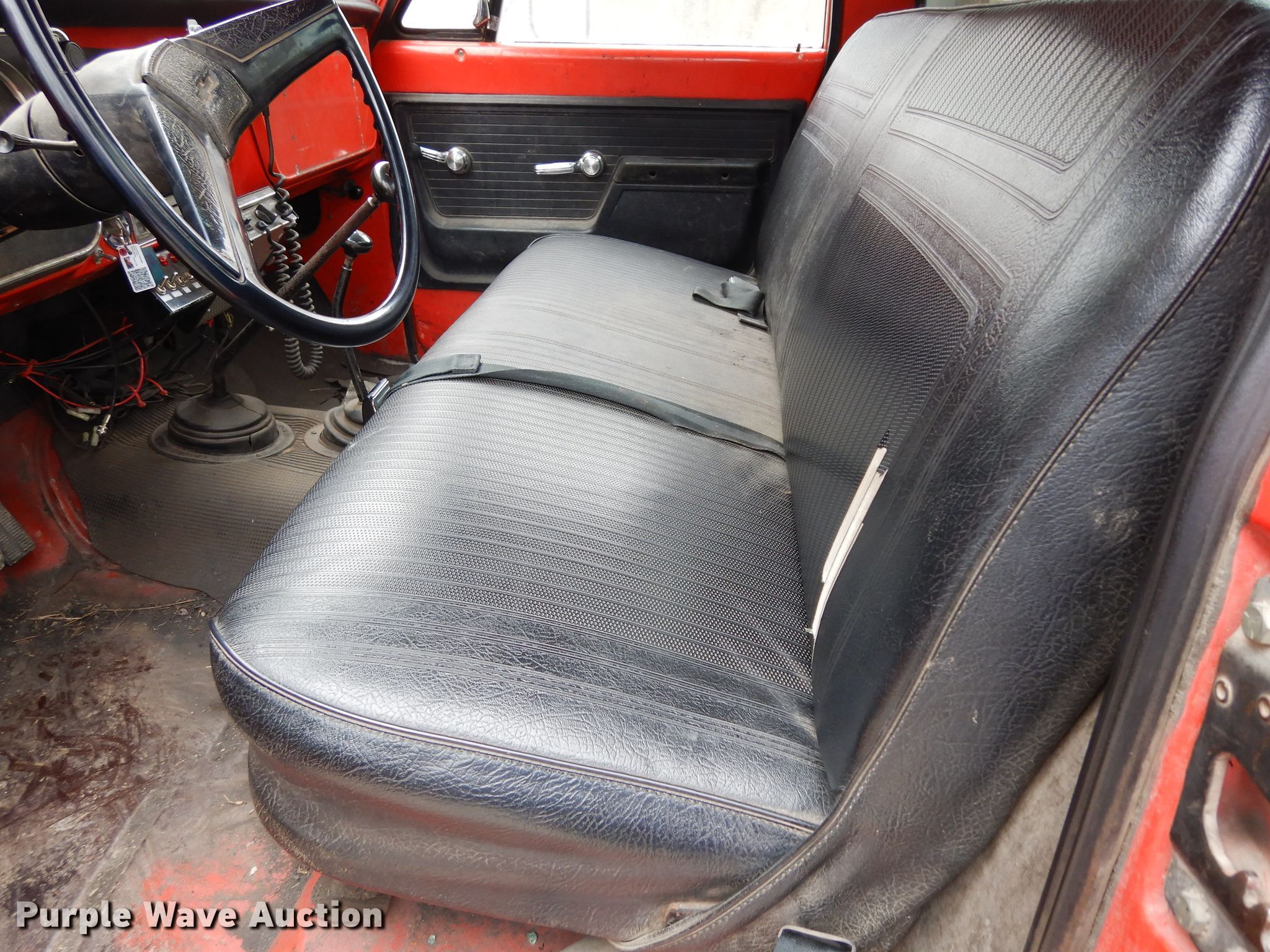 Purple Wave is selling a used Fire Truck or Emergency Vehicle in Kansas. This item is a 1972 Chevrolet Custom 20 brush fire truck with the following: 29,728 miles on odometer, Gas engine, Four speed manual transmission, Four wheel drive, Heat, 8'L x 7'W flatbed, 200 gallon water tank, Hannay hose reel, 100'L hose, Waterous pump, Briggs & Stratton 18 HP gas engine,, 235/85R16 tires