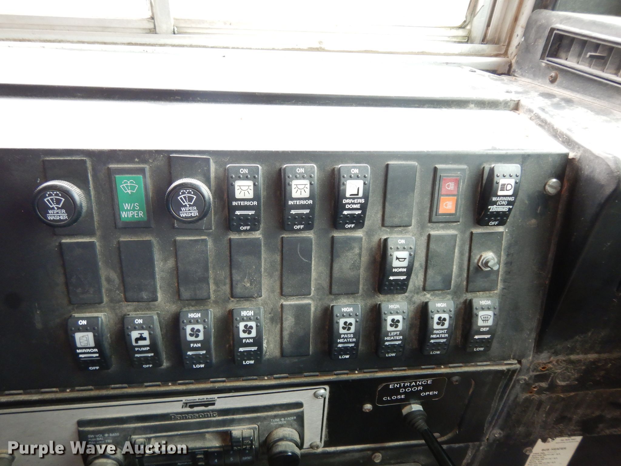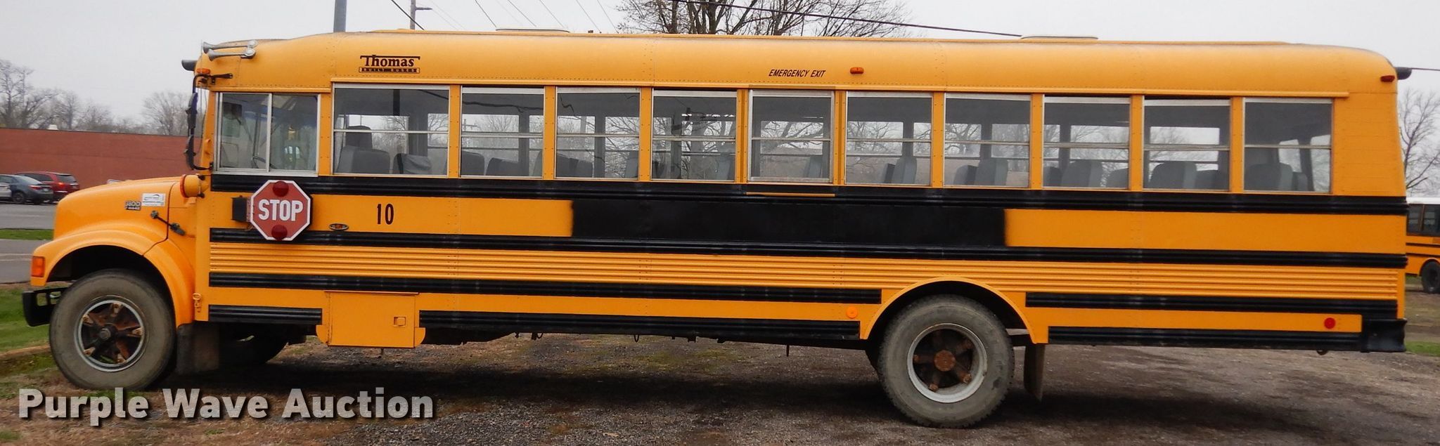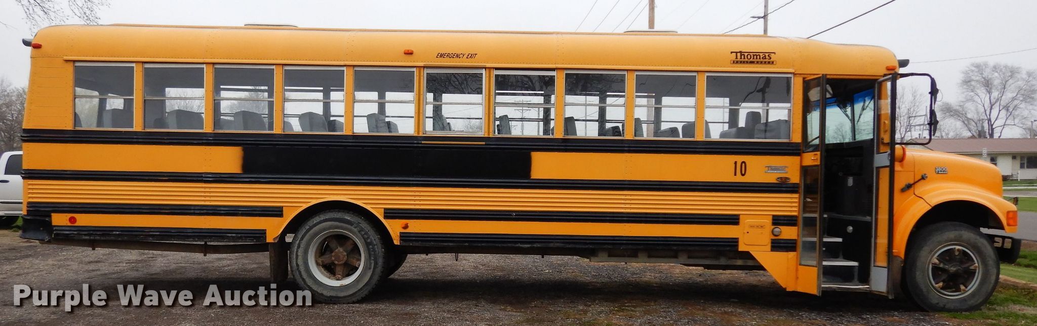 Purple Wave is selling a used Bus in Kansas. This item is a 1996 International 3800 school bus with the following: 96,759 miles on odometer, International T444E 7.3L V8 diesel engine, 190 HP, Automatic transmission, Single axle, Heat, Heated mirrors, Electric passenger sliding door, 65 passenger capacity, Spring suspension, Air brakes, 254" wheelbase, Firestone 10R22.5 tires, GVWR 27,500 lbs, Intermittent oil leak between engine and transmission, Unit# 10