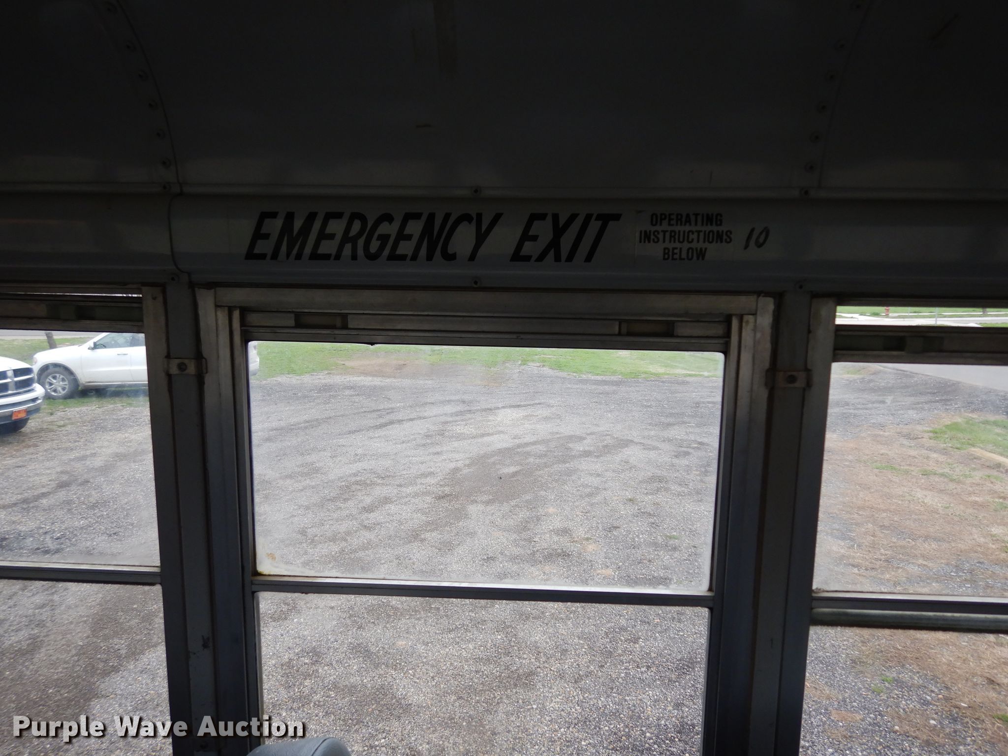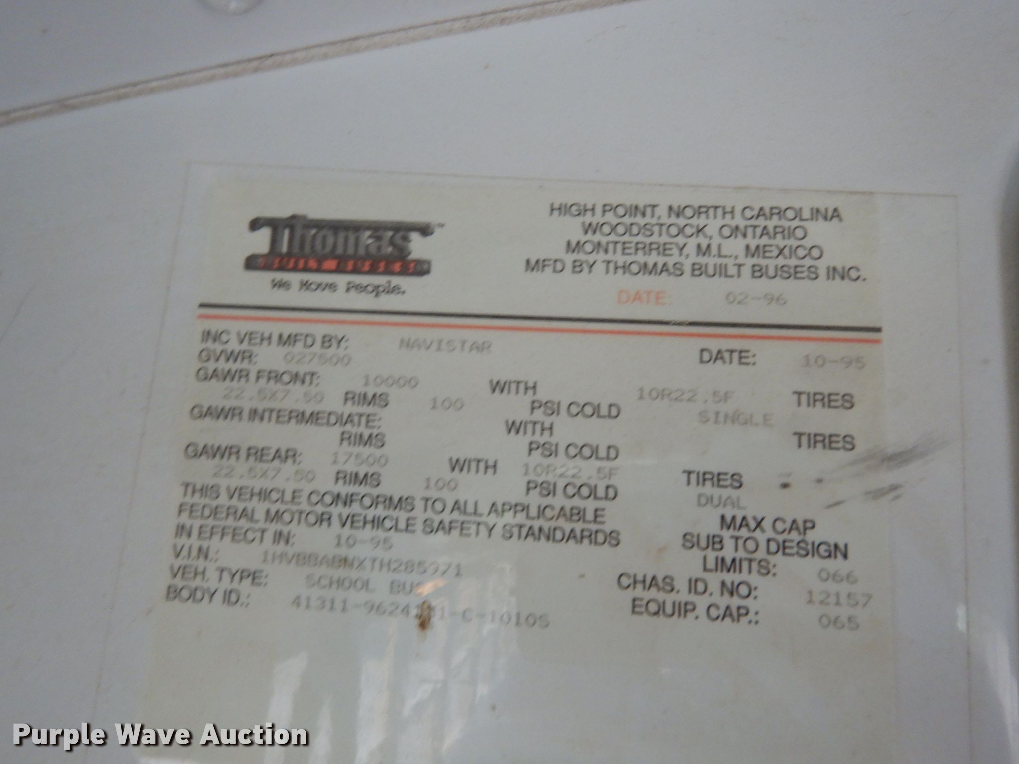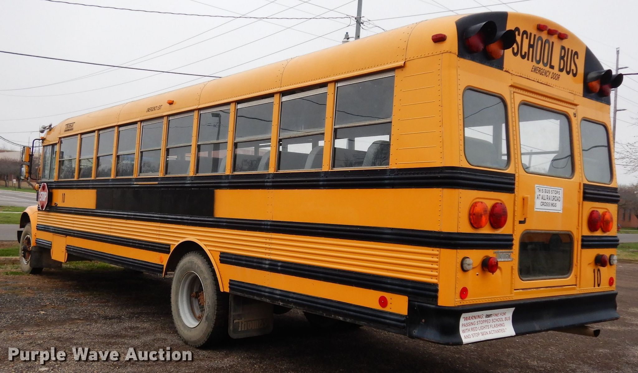Purple Wave is selling a used Bus in Kansas. This item is a 1996 International 3800 school bus with the following: 96,759 miles on odometer, International T444E 7.3L V8 diesel engine, 190 HP, Automatic transmission, Single axle, Heat, Heated mirrors, Electric passenger sliding door, 65 passenger capacity, Spring suspension, Air brakes, 254" wheelbase, Firestone 10R22.5 tires, GVWR 27,500 lbs, Intermittent oil leak between engine and transmission, Unit# 10