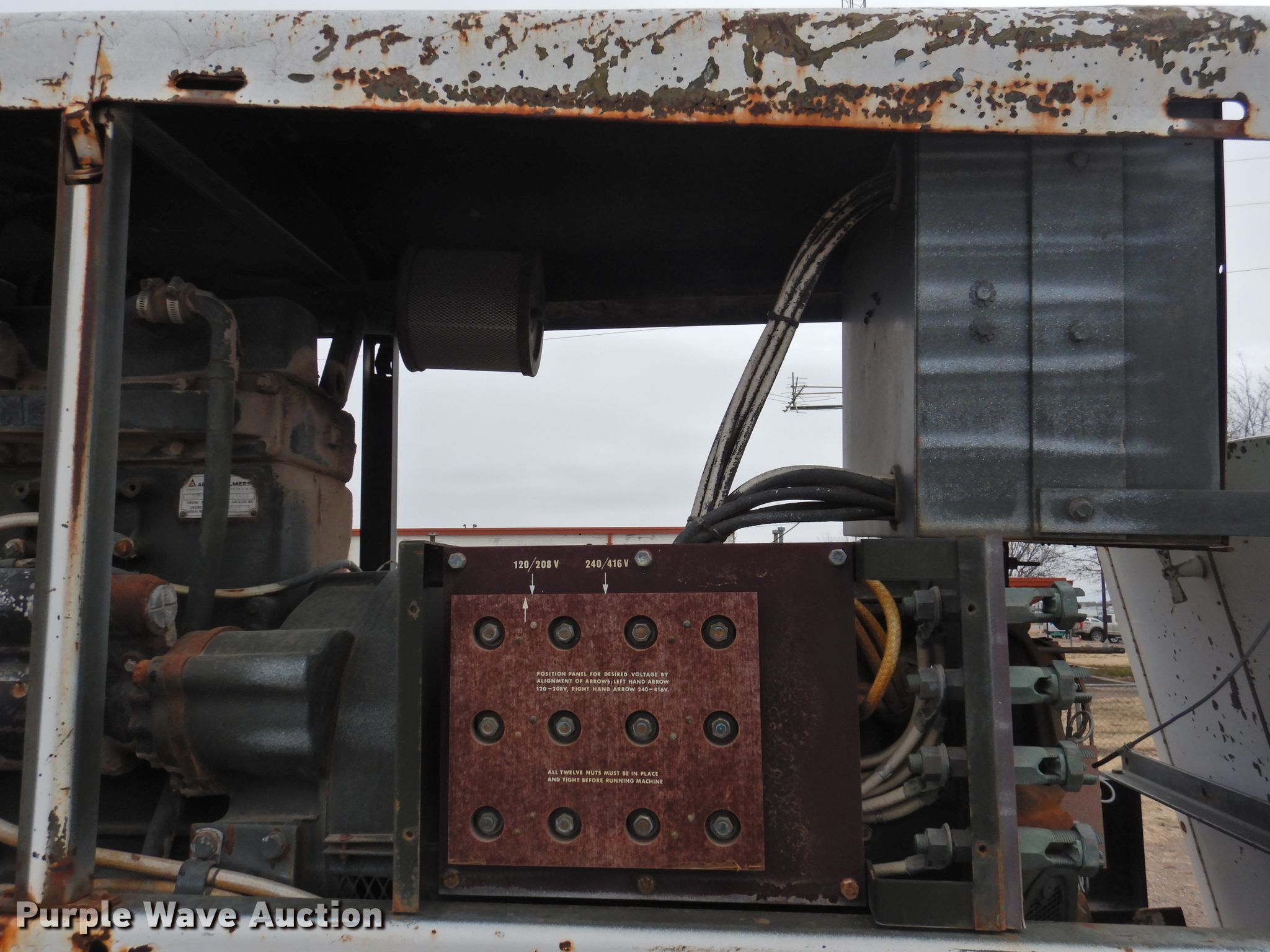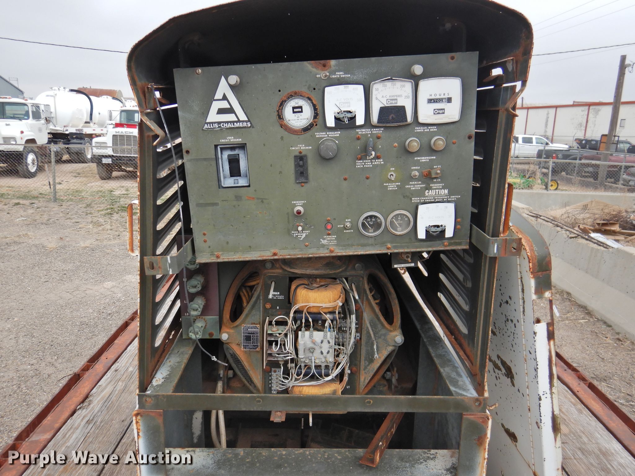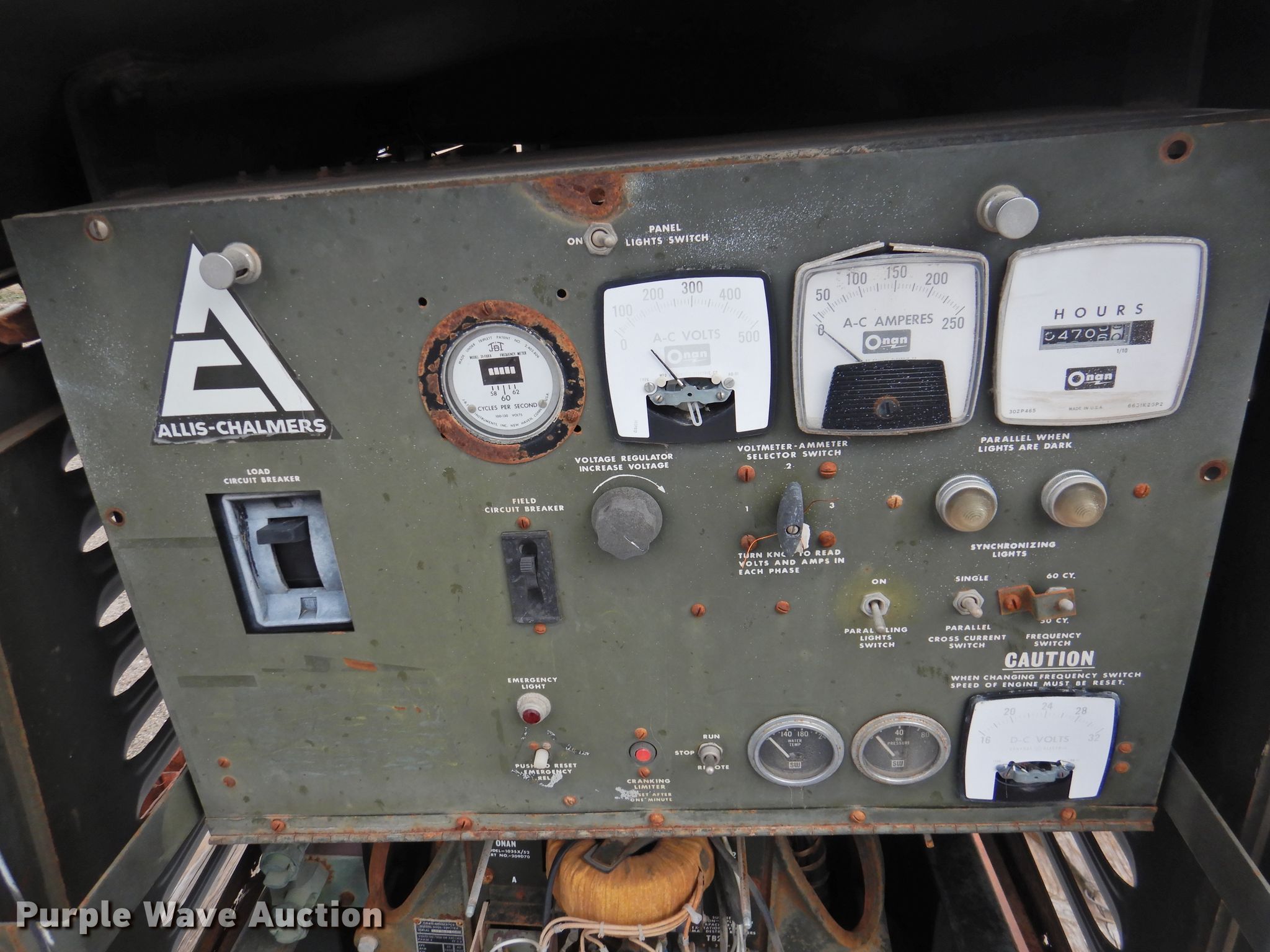 Purple Wave is selling a used Generator Set in Texas. This item is a Onan 103SX/52 generator with the following: 4,706 hours on meter, Allis Chalmers 3500 six cylinder diesel engine, Serial 3D-07997, 62.5/75 kVA, 60 kW, Three phase, Electric start, Fuel tank, Skid mounted, Serial 0768038201