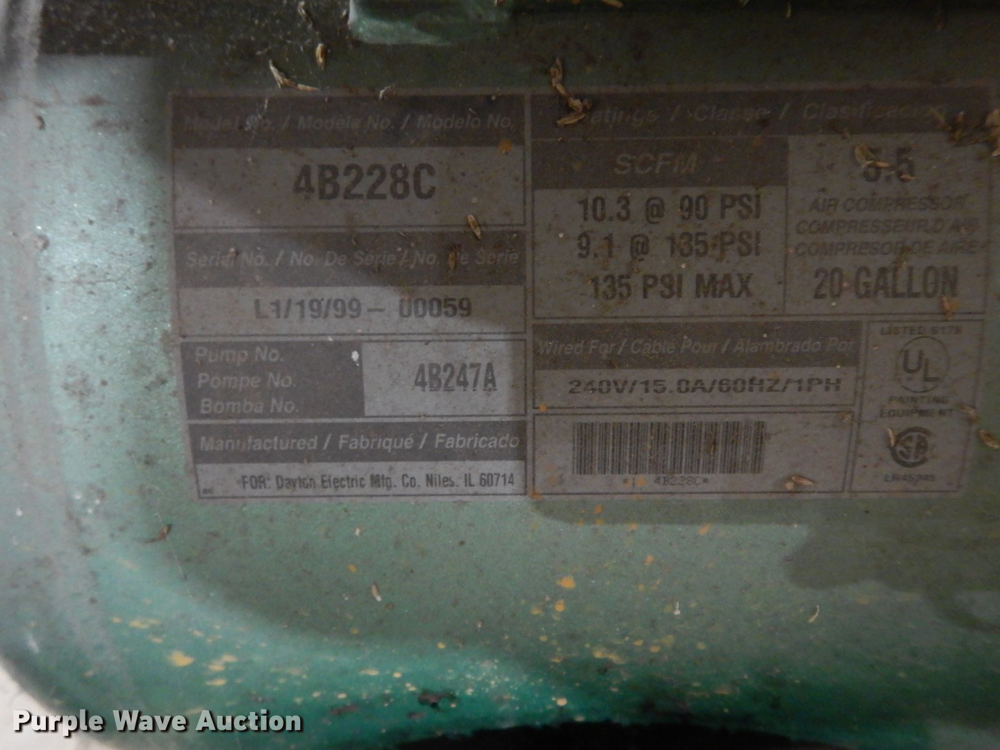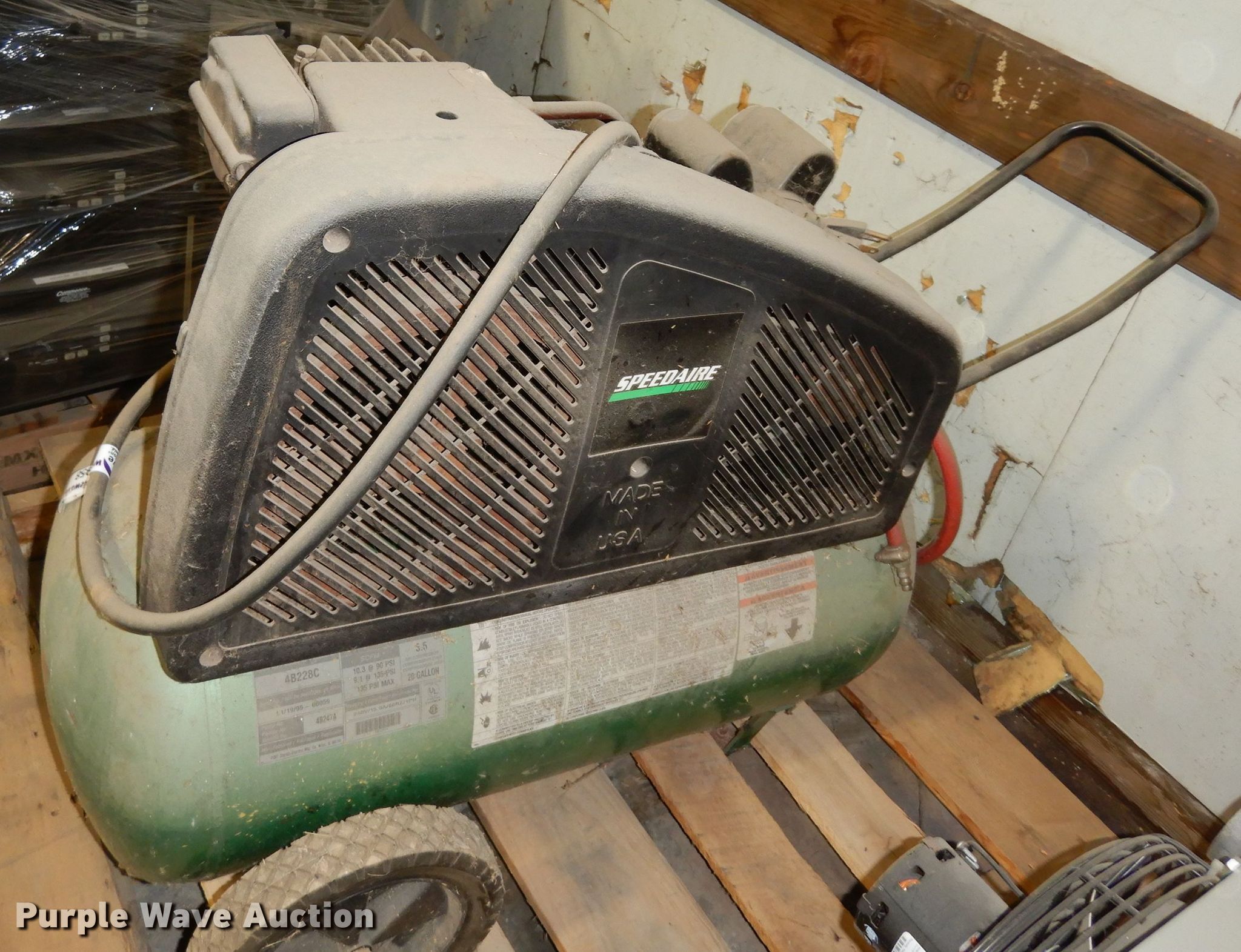 Purple Wave is selling a used Air Compressor in Kansas. This item is a Speedaire air compressor with the following: 5.5 HP electric motor, 20 gallon tank