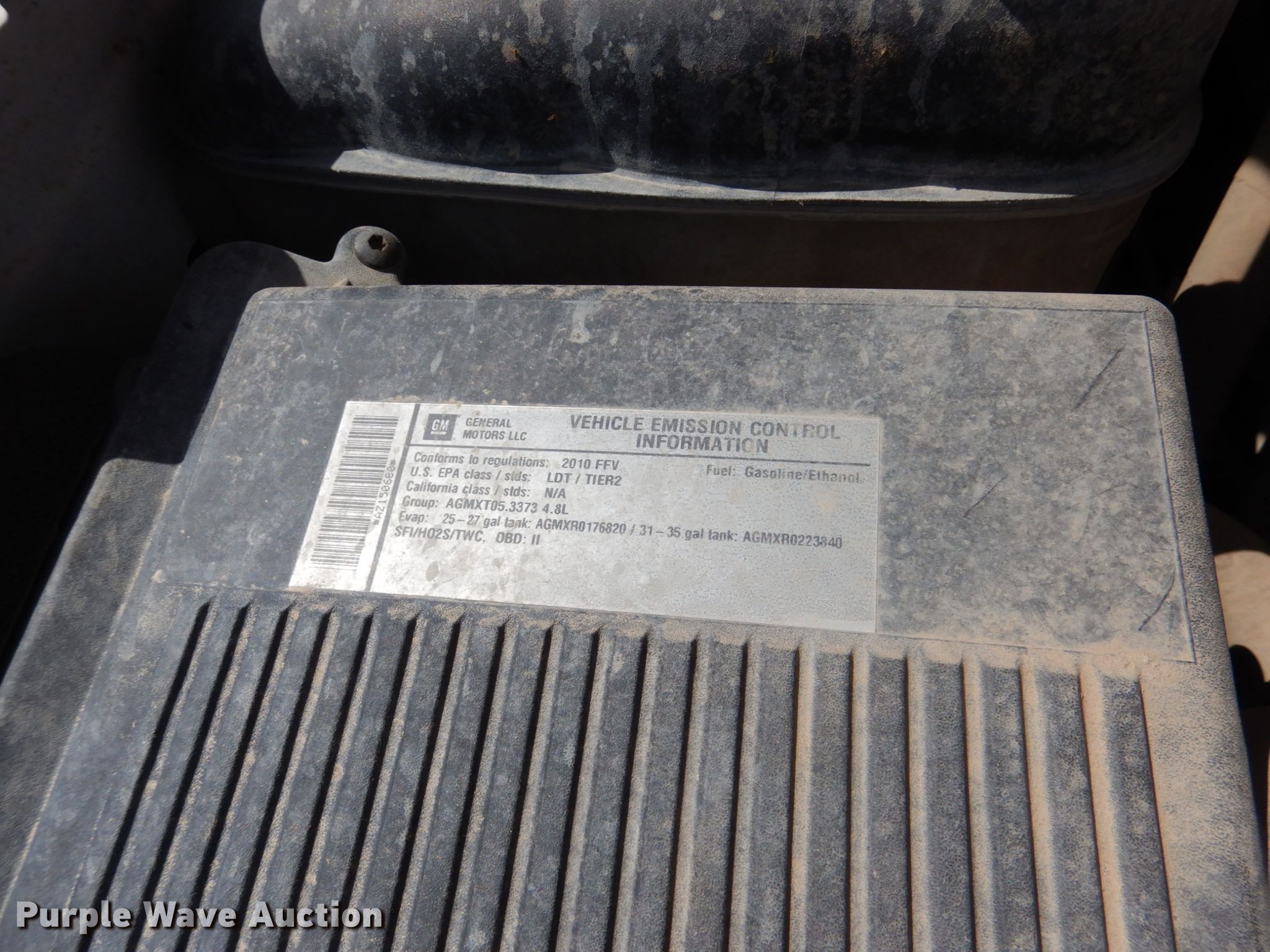 Purple Wave is selling a used 1/2 Ton Pickup or Van in Kansas. This item is a 2010 Chevrolet Silverado 1500 pickup truck with the following: 60,682 miles on odometer, 4.8L V6 OHV 16V gas engine, Automatic transmission, Four wheel drive, AC and heat, Cruise, Auxiliary fuel tank, GPI 12V pump, Hose and nozzle, Bed slide, 265/70R17 tires