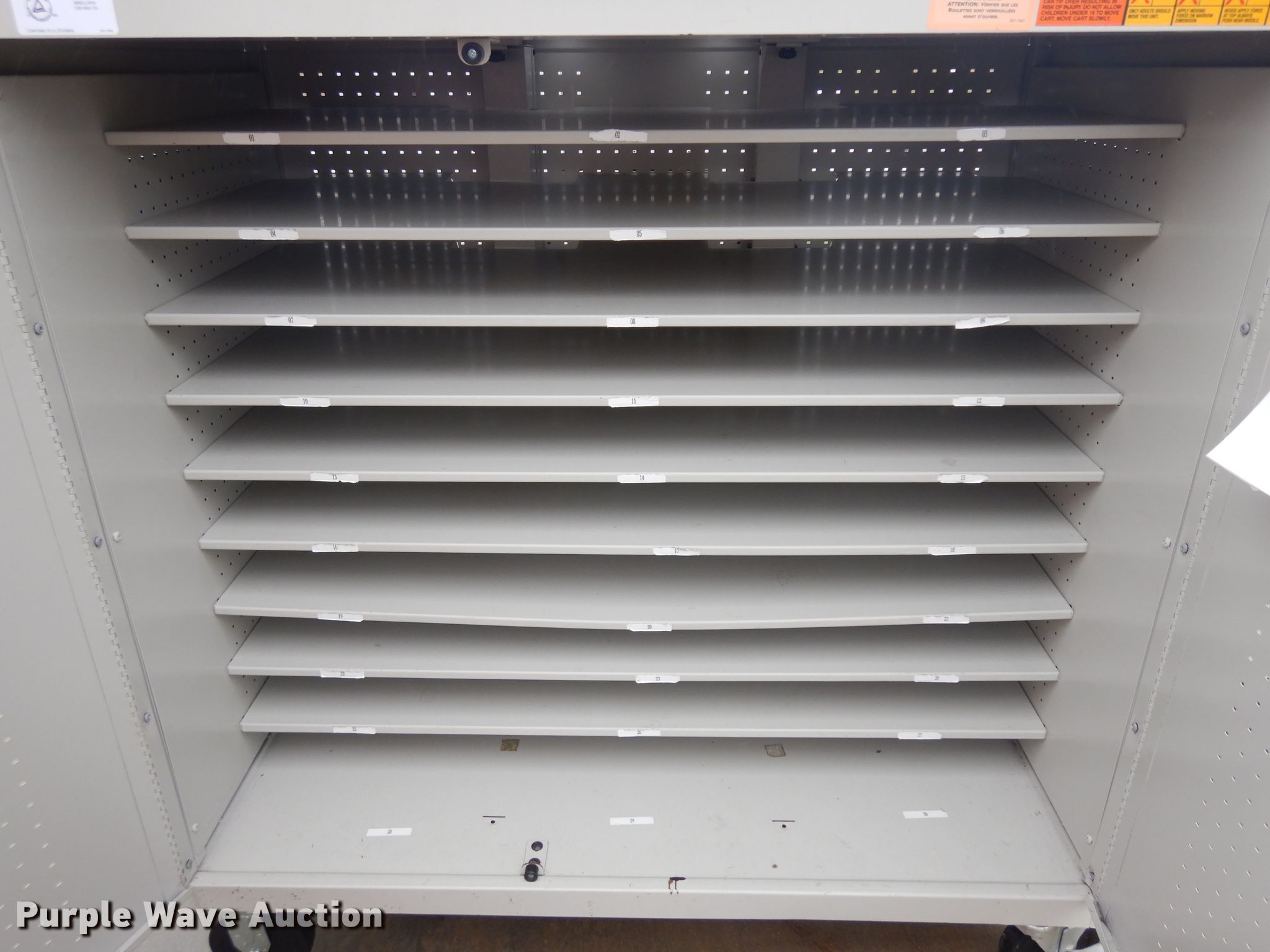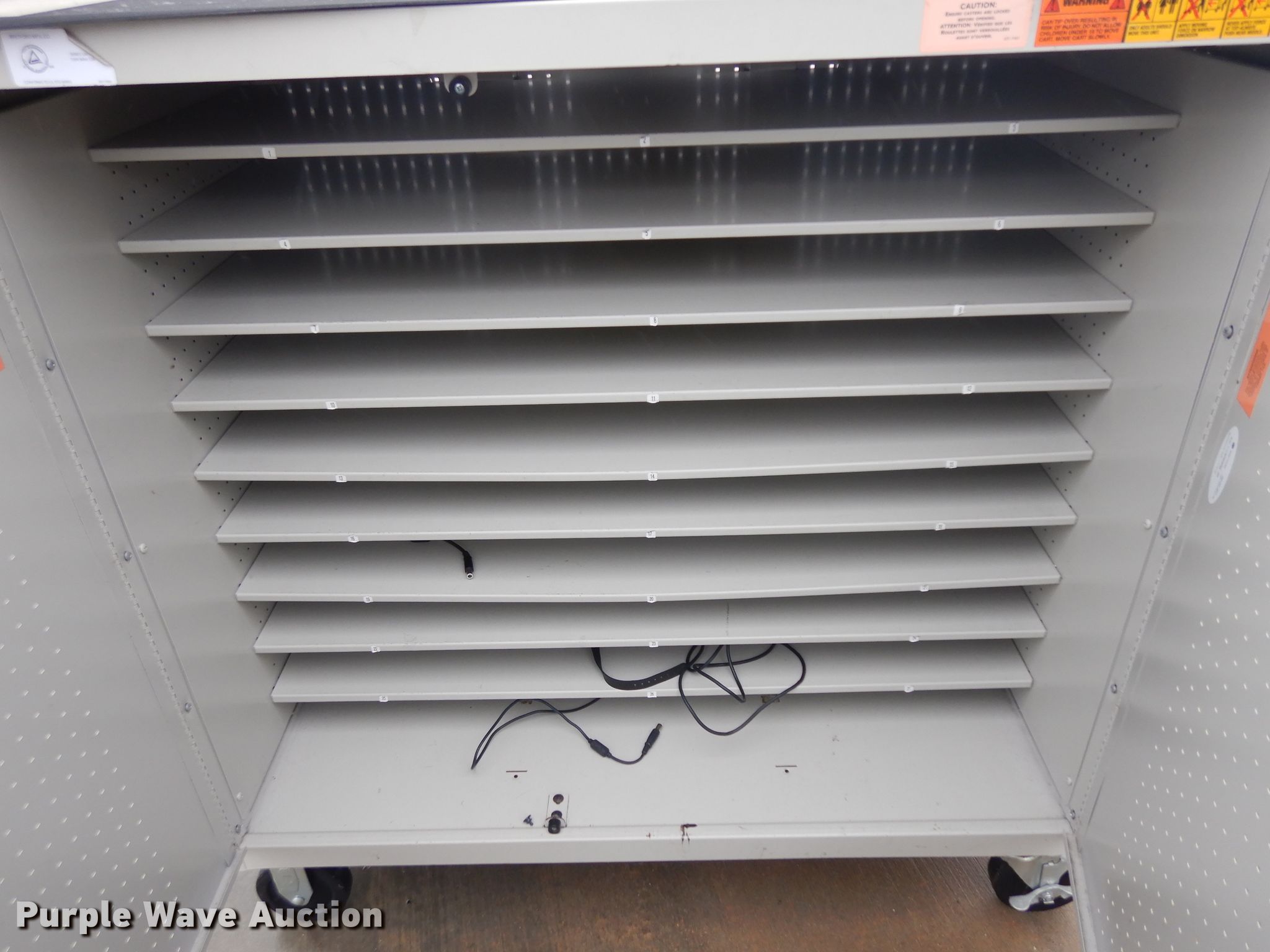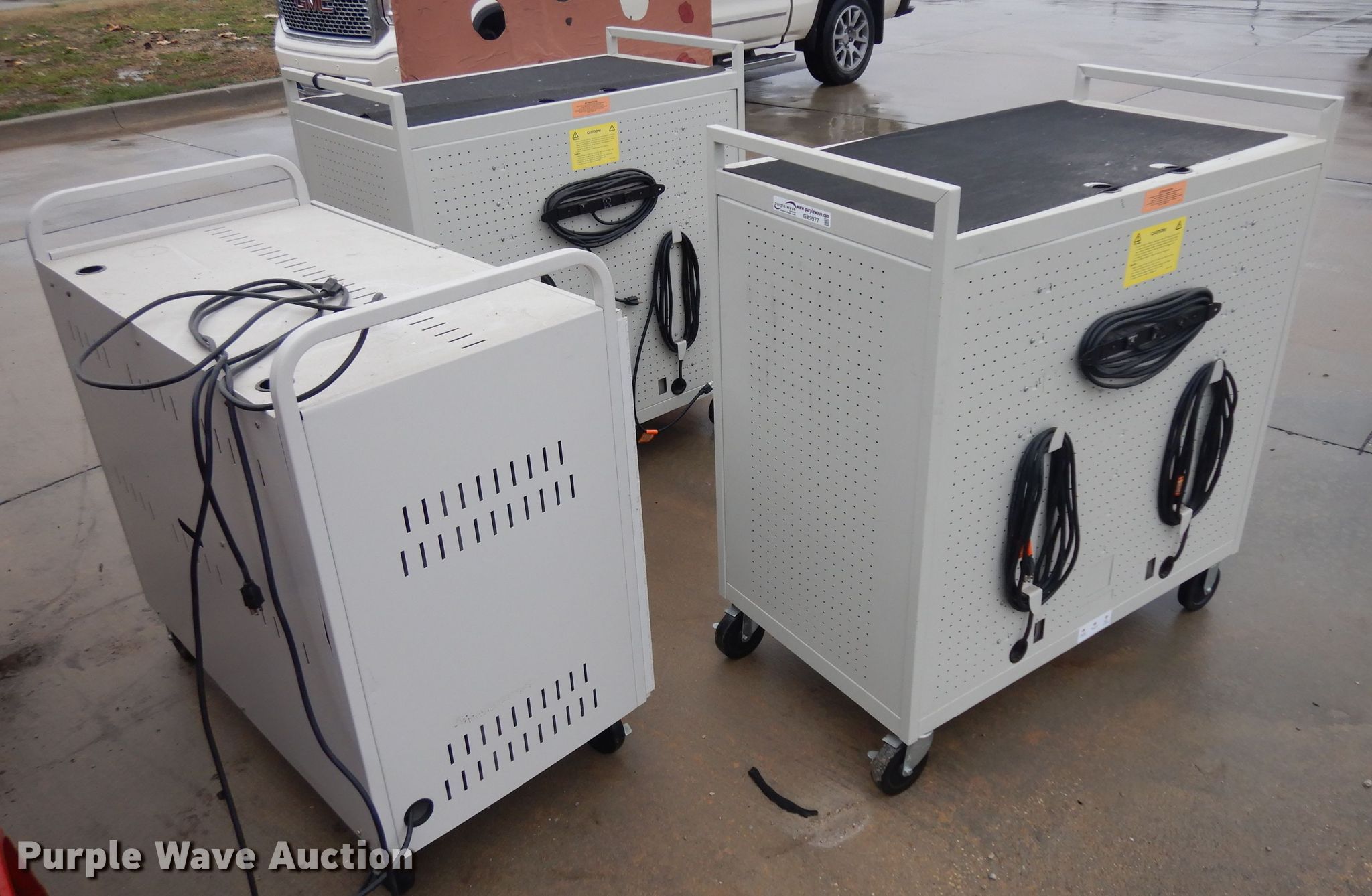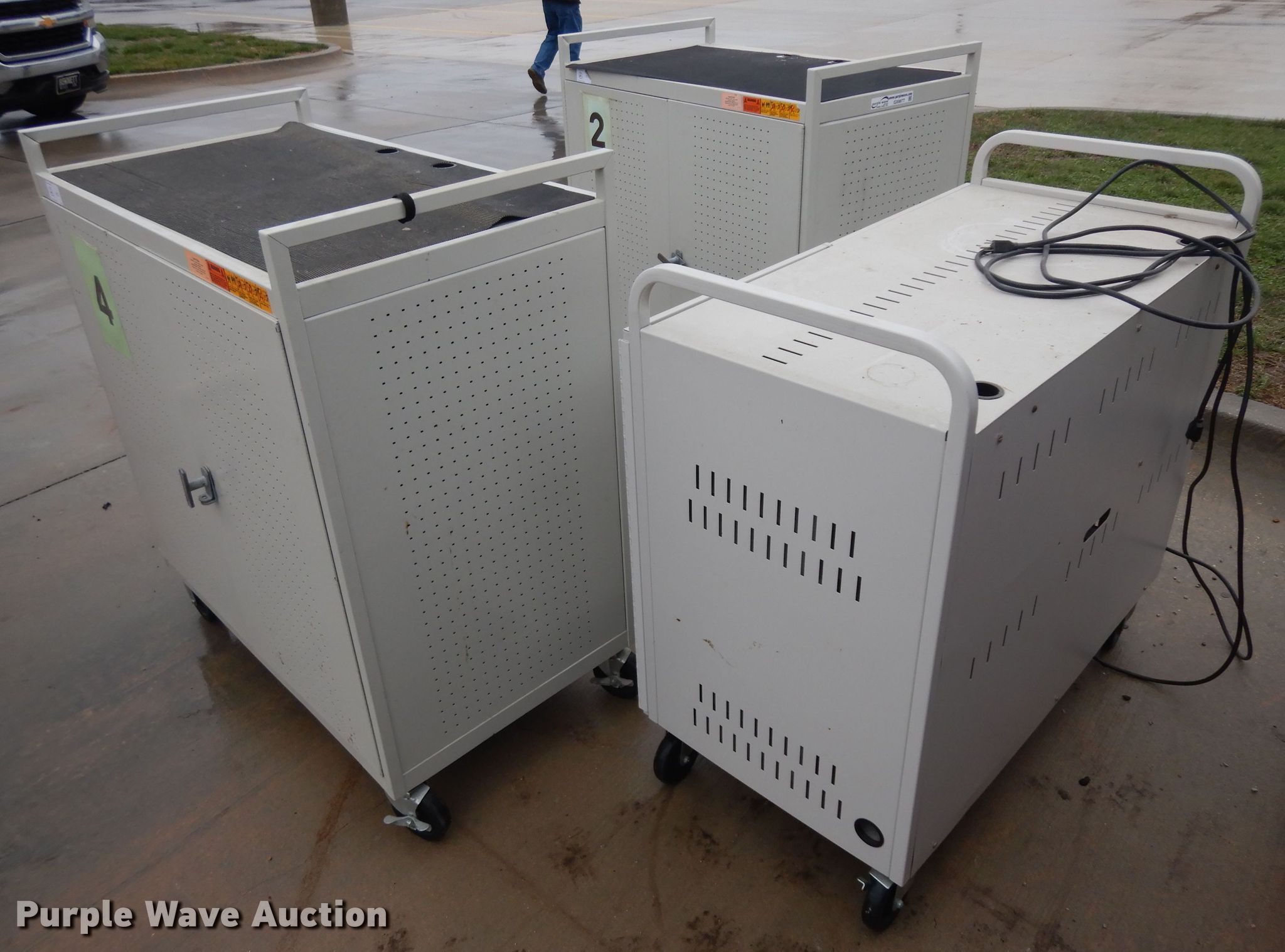 Purple Wave is selling a used Office Supplies and Equip. in Kansas. This item is a (2) laptop carts with the following: (2) 27 slot carts, 120V, 30 slot cart, 120V