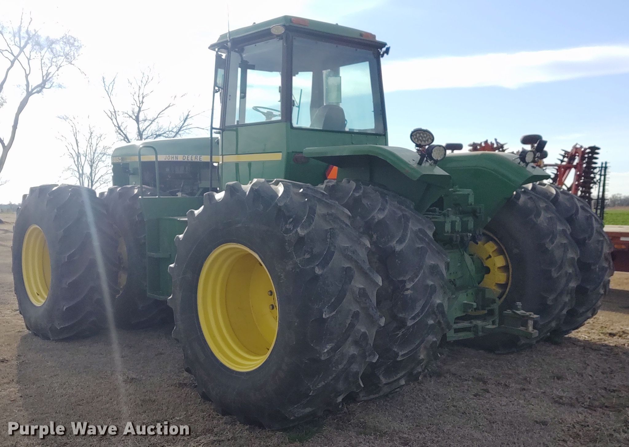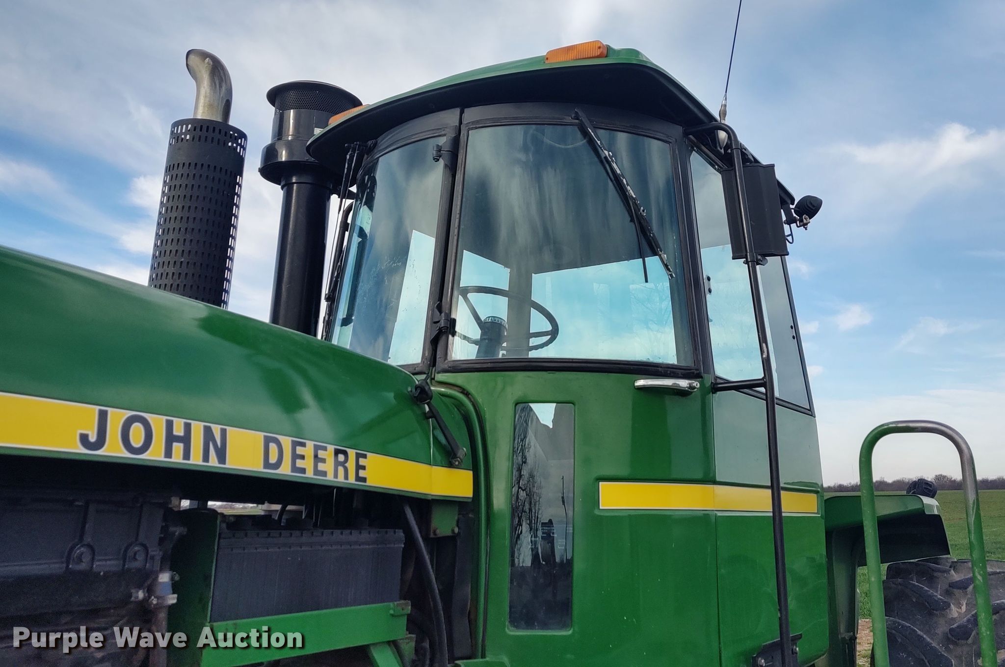 Purple Wave is selling a used Articulated 4-Wheel Drive Tractor in Oklahoma. This item is a 1984 John Deere 8850 4WD tractor with the following: Cummins six cylinder diesel engine, Quad-Range transmission, 16F-6R gears, AC And heat, (4) rear hydraulic remote sets, 650/75R32 dual tires, Serial RW8850H005345