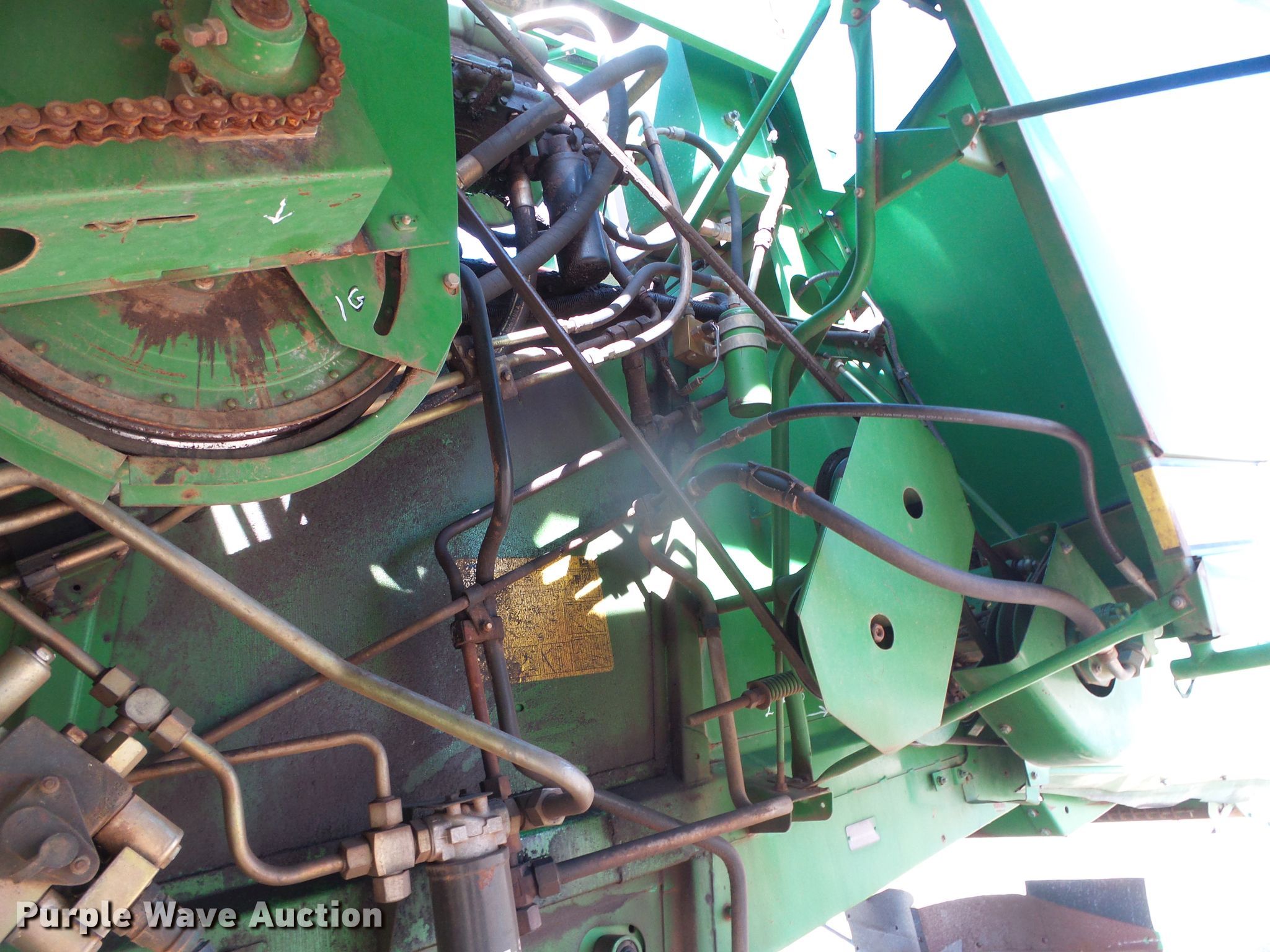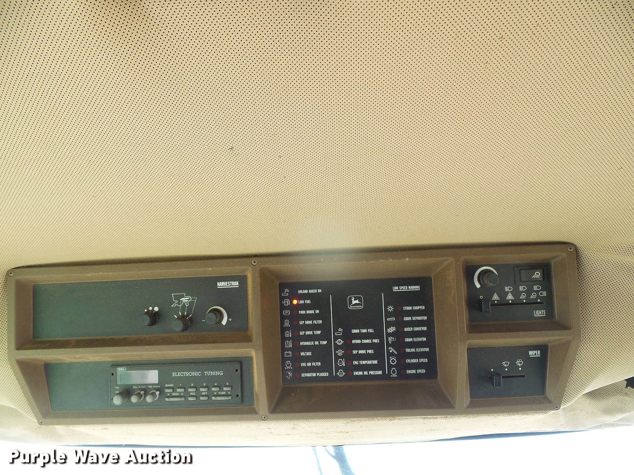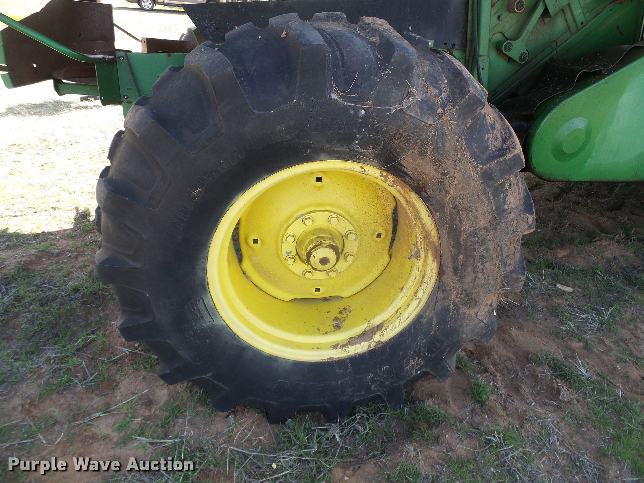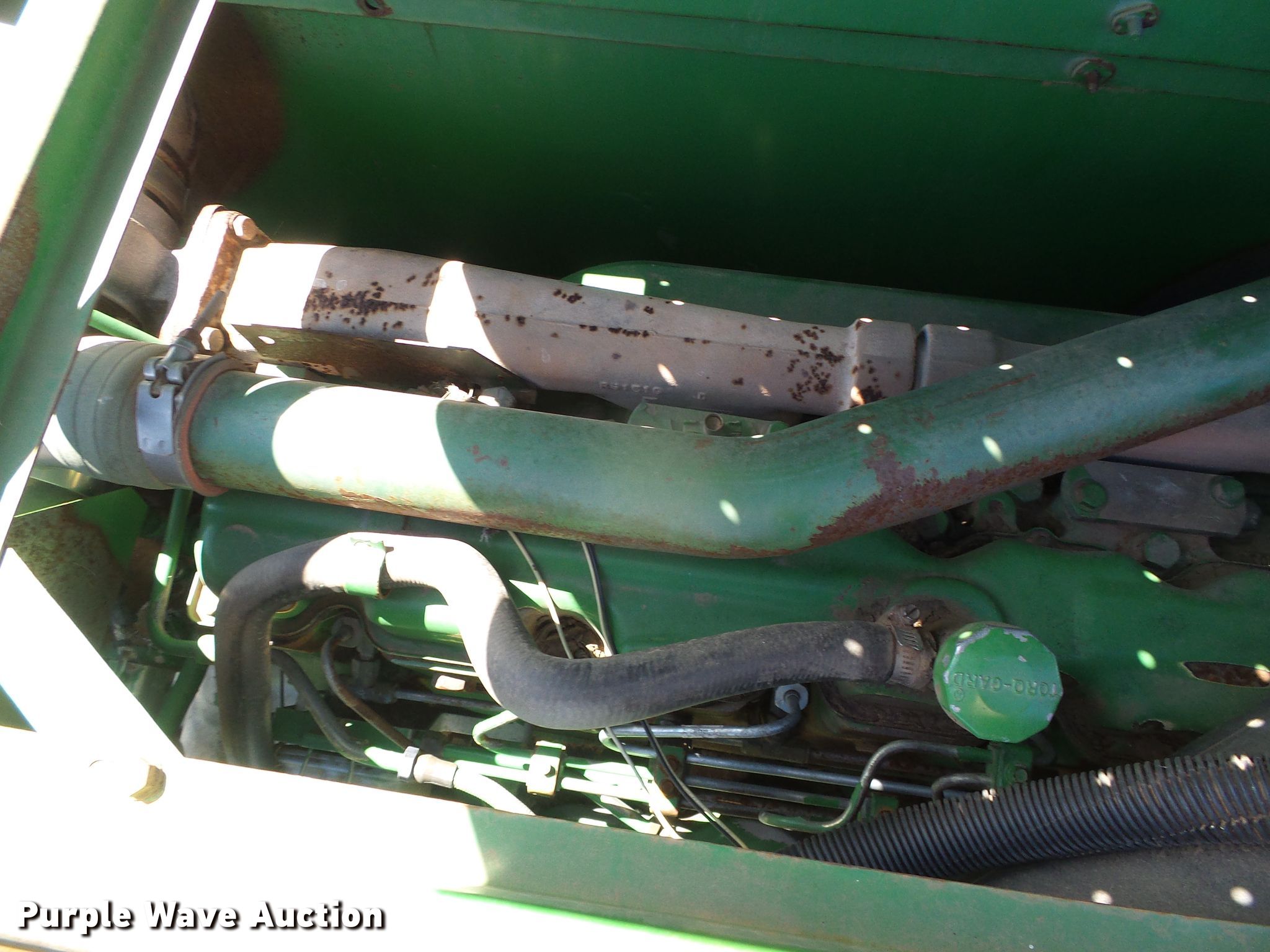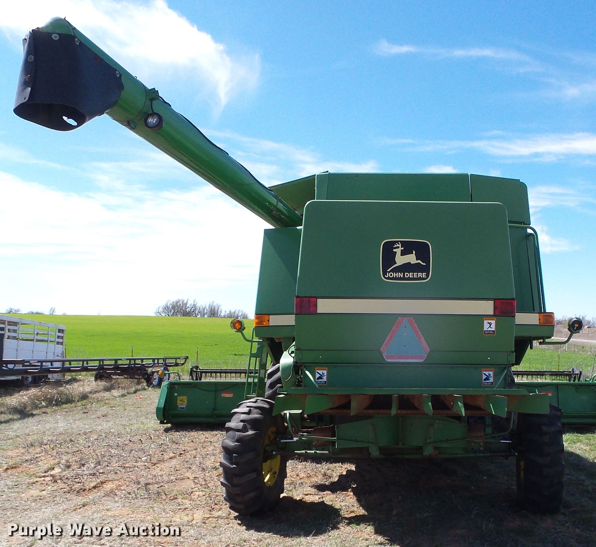 Purple Wave is selling a used Combine in Oklahoma. This item is a 1995 John Deere 9600 combine with the following: 5,195 engine hours on meter, 3,642 separator hours on meter, John Deere 6076 six cylinder diesel engine, Serial RG6076H549611, Hydrostatic transmission, 3F-3R gears, Feederhouse, Variable speed, Reverser, AC and heat, Straw chopper, Bin extensions, 30.5L-32 front tires, 16.9-24 rear tires, Operator manual, Serial H09600X661881