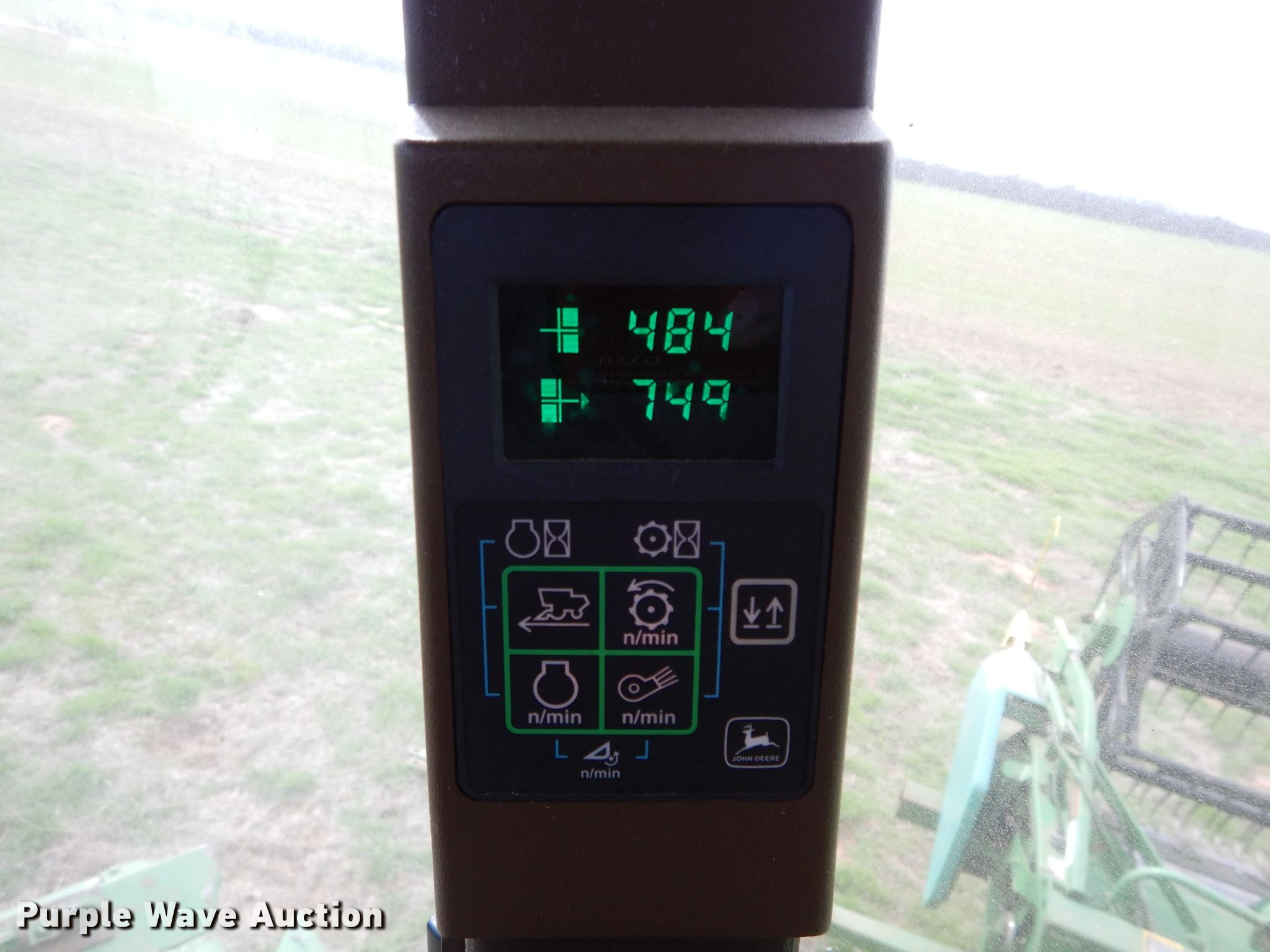Purple Wave is selling a used Combine in Oklahoma. This item is a John Deere 9600 combine with the following: 749 engine hours on meter, 484 separator hours on meter, Six cylinder diesel engine, Hydrostatic transmission, Feederhouse, Variable speed, Reverser, AC and heat, Round concaves, Bin extensions, 30.5L-32 front tires, 14.9-24 rear tires
