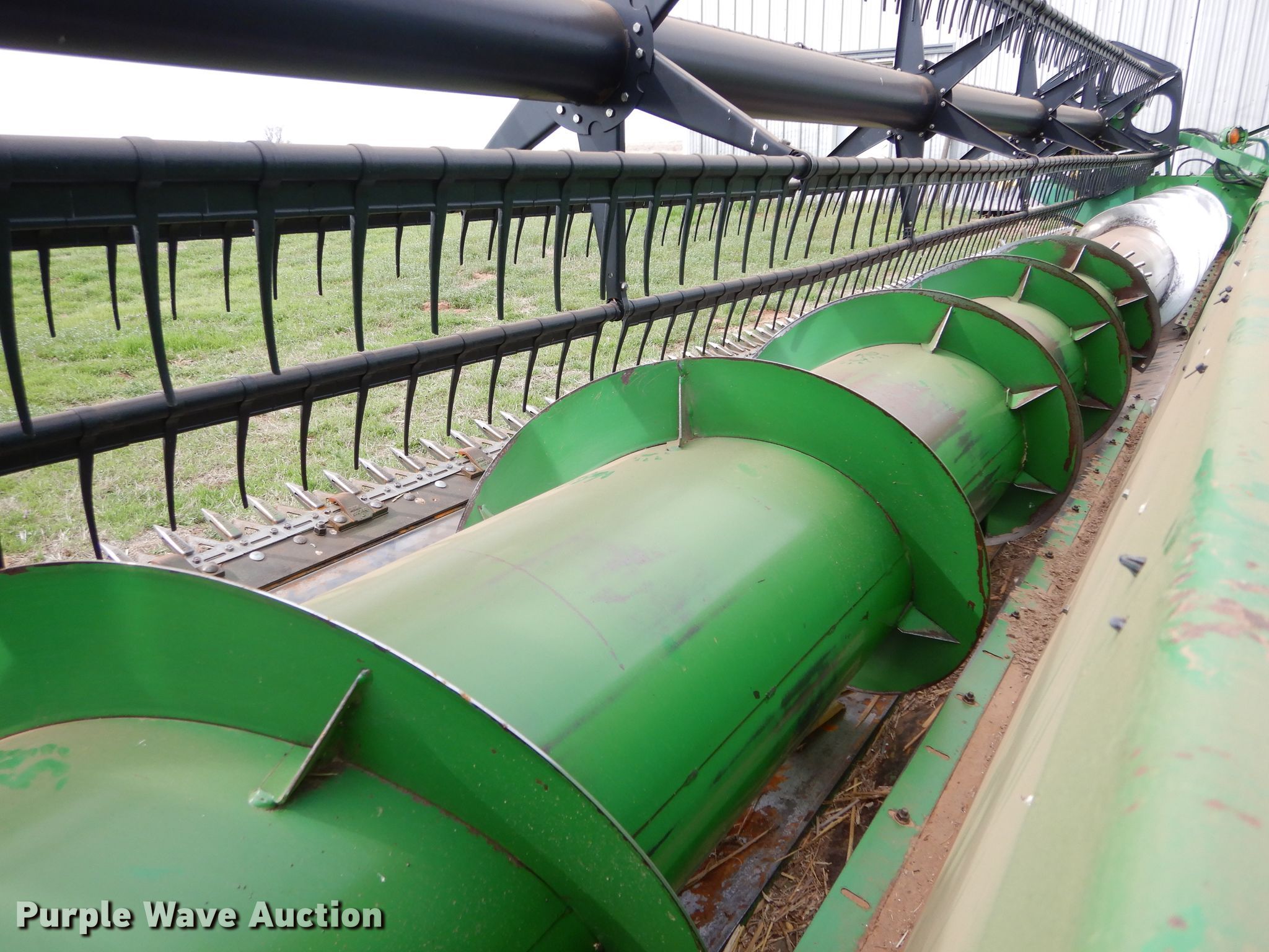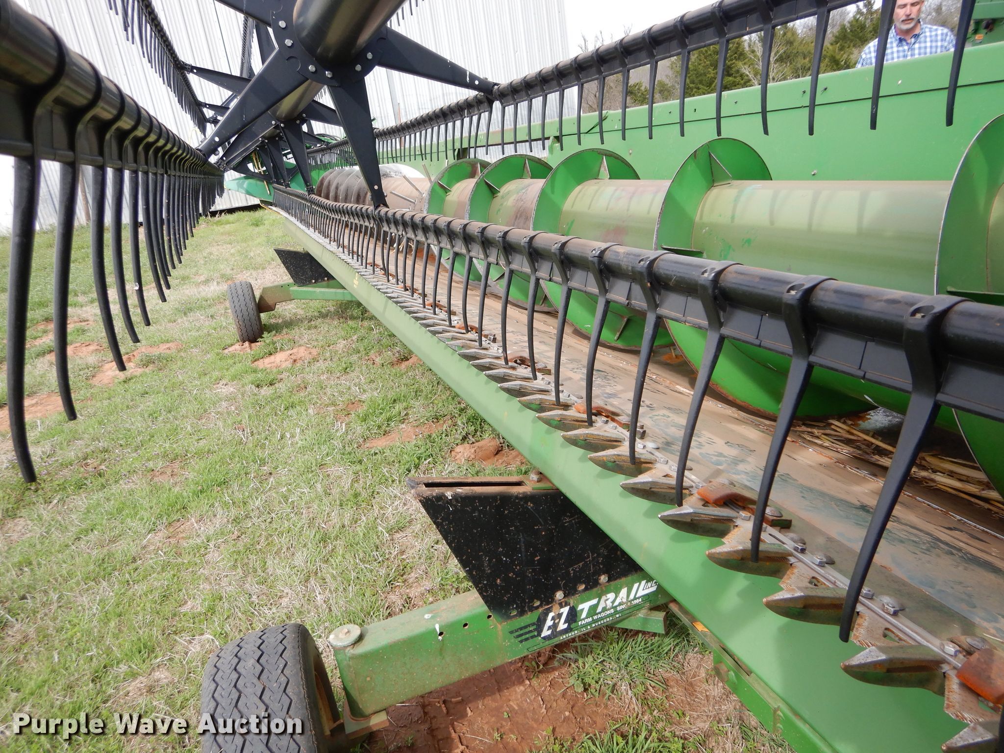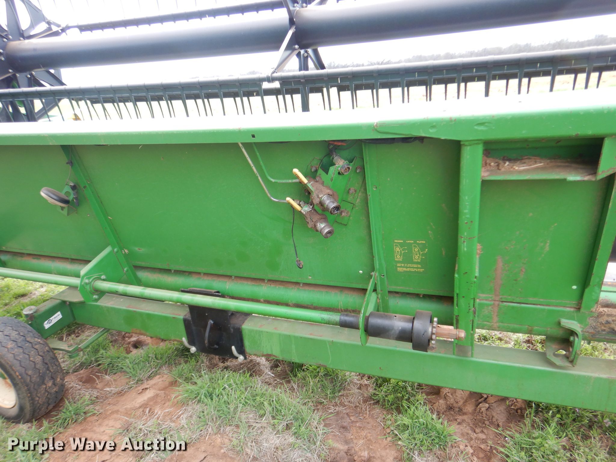Purple Wave is selling a used Platform or Stripper Head in Oklahoma. This item is a 1996 John Deere 930 flex head with the following: 30'W, Finger reel, Poly skid plates, Dual drivelines, Transport package, 20.5-80-10 tires, Serial H00930E666230