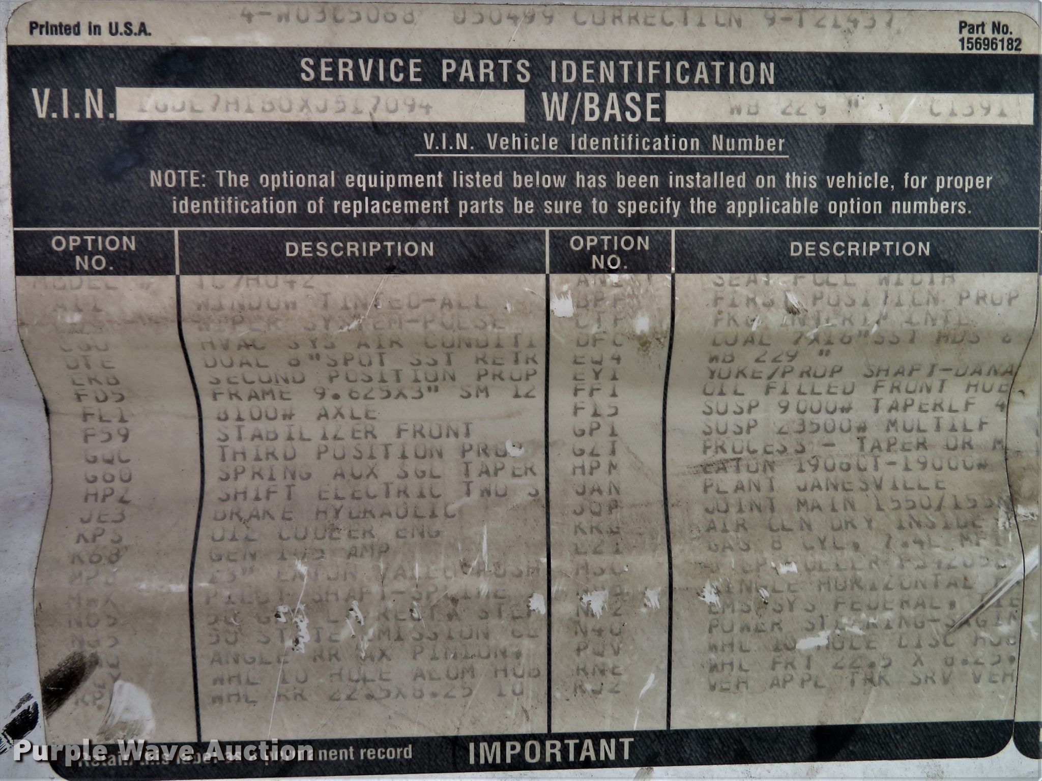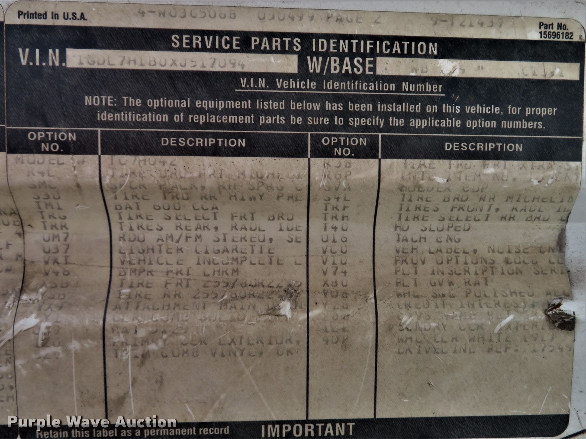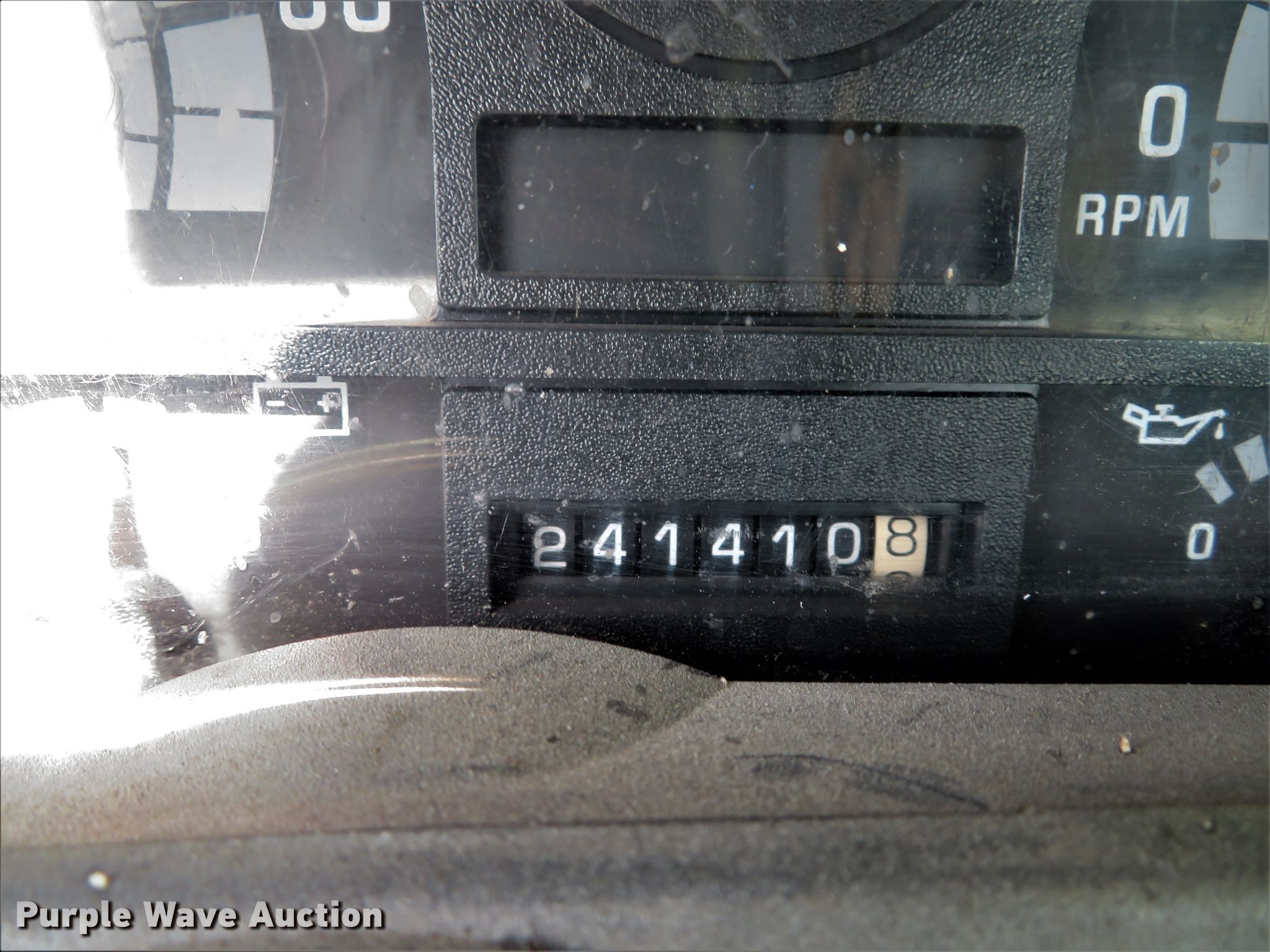 Purple Wave is selling a used Truck Chassis in Missouri. This item is a 1999 GMC C7500 truck cab and chassis with the following: 241,410 miles on odometer, 7.4L V8 OHV 16V gas engine, Five speed manual transmission, Two speed rear end, Single axle, AC and heat, 158" from rear of cab to center of rear axle, Spring suspension, Hydraulic brakes, 229" wheelbase, 265/75R22.5 tires, GVWR 27,100 lbs, Clutch pedal is stiff, ABS brake light on, Brake light on, AC does not blow cold, may need freon