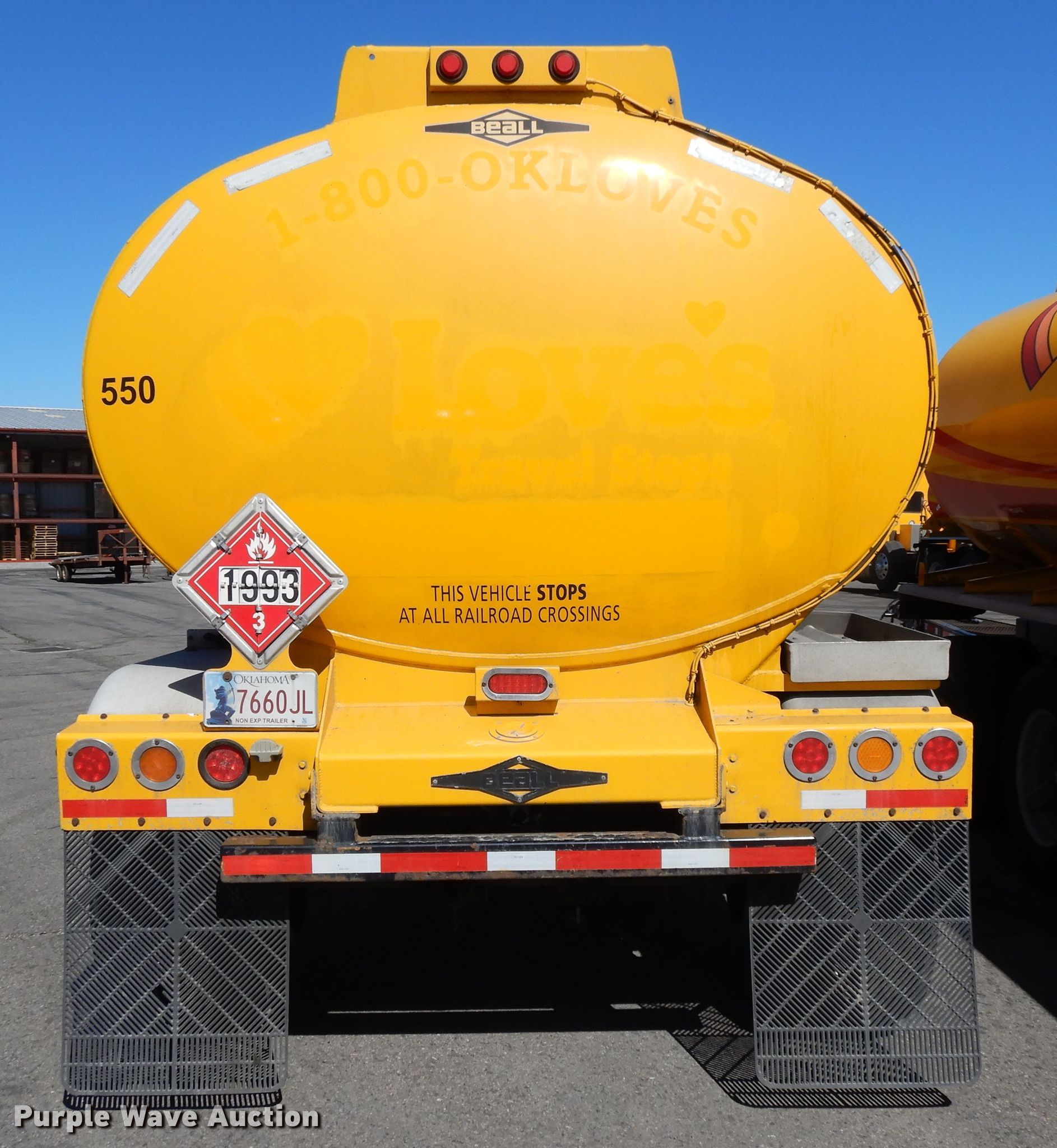 Purple Wave is selling a used Tank Trailer in Utah. This item is a 2006 Beall BATT-40-1-SB tank trailer with the following: 32.5'L x 98"W overall, 17'L tank, 4,000 gallon capacity, Single compartment, (2) baffles, 5" diameter outlet valve, 18"W manway, Full length walkway, Single leg landing gear, Triple axle, Spring suspension, Air brakes, Aluminum wheels, 445/50R22.5 tires, GVWR 58,000 lbs, Annual vehicle inspection valid until October 3 2020, VR, V, and K test valid until October 3 2024, Unit# 550