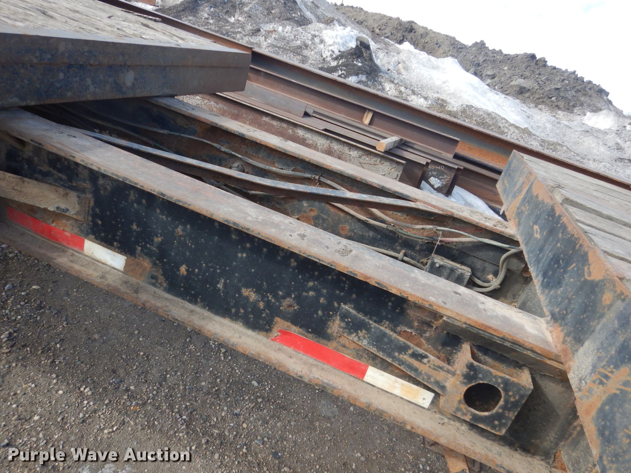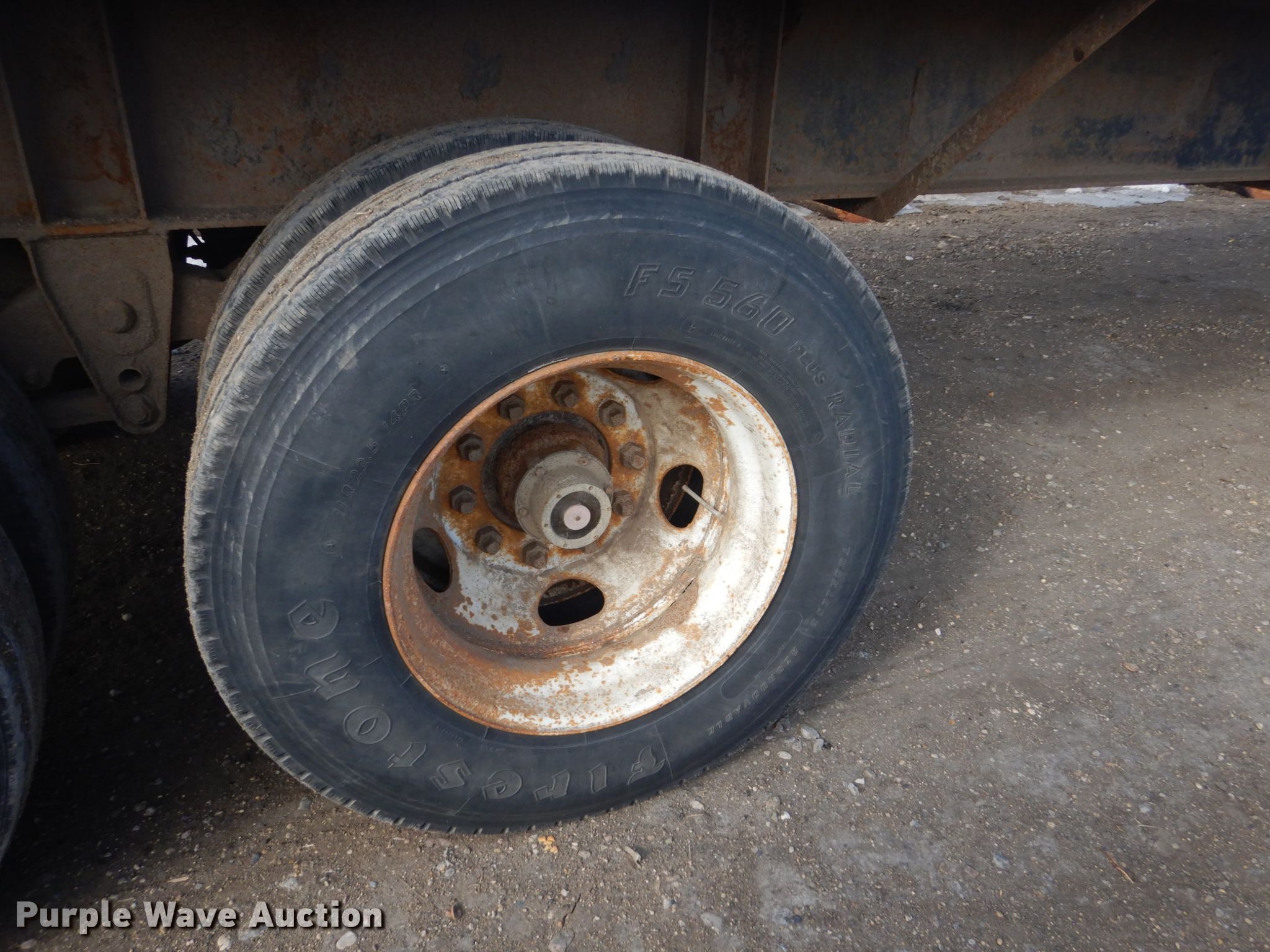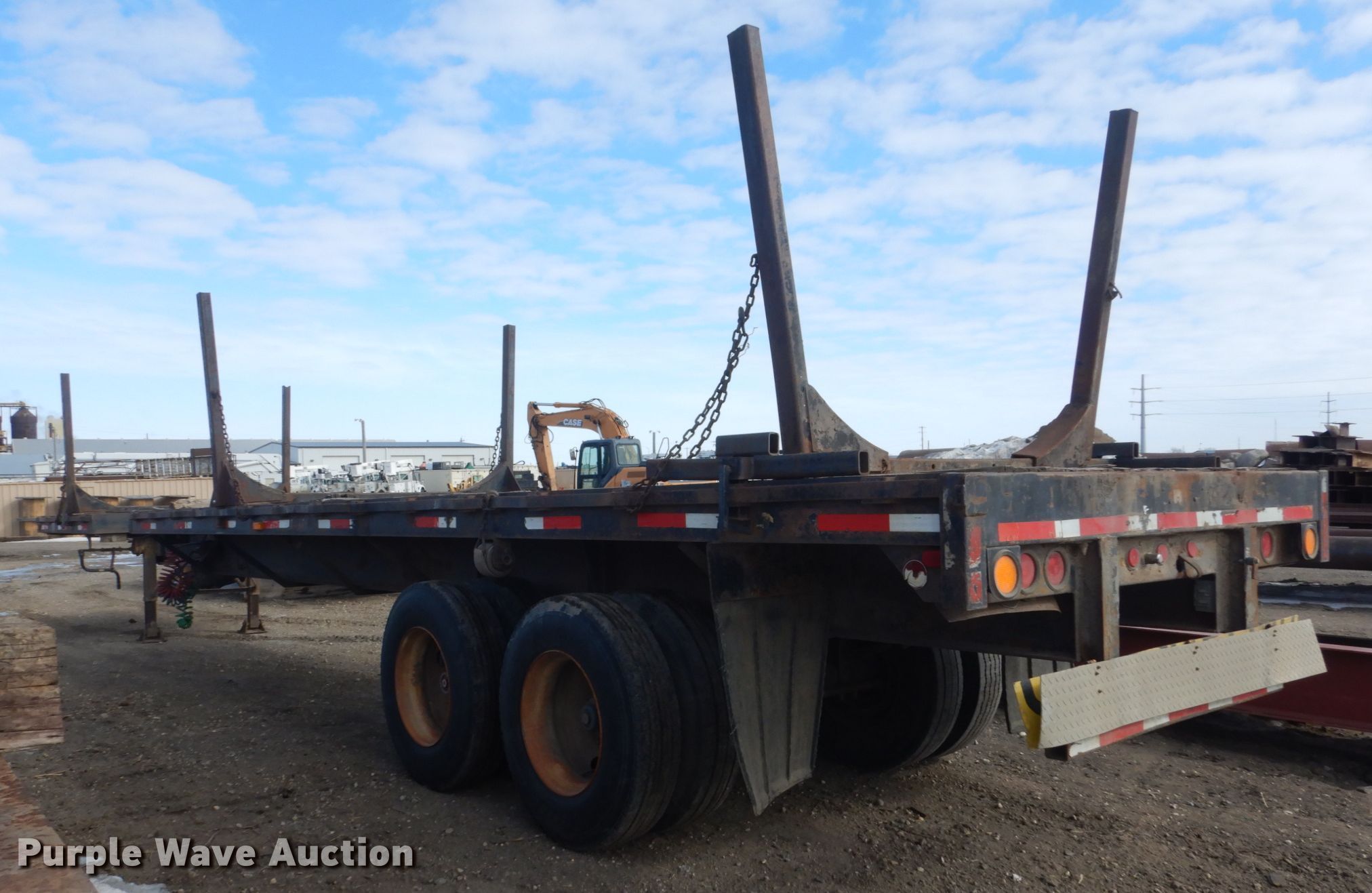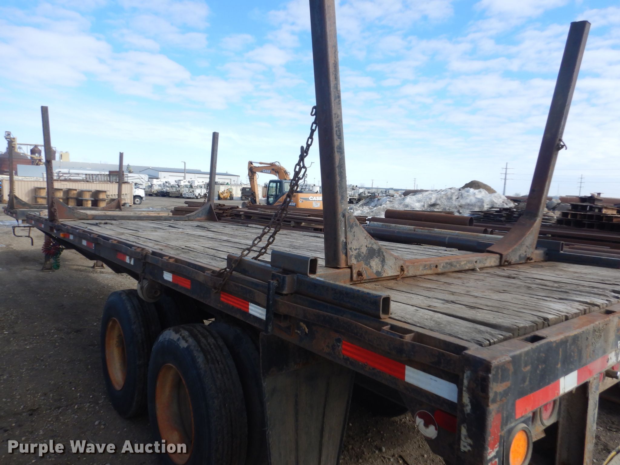 Purple Wave is selling a used Flat or Drop Deck Trailer in North Dakota. This item is a 1972 Fontenelle expandable pole trailer with the following: 40'L x 95"W overall, Expands to 75'L, Air lock pins, (3) bunks, Dual leg landing gear, Spring suspension, Electric brakes, Tandem axle, 11R22.5 tires