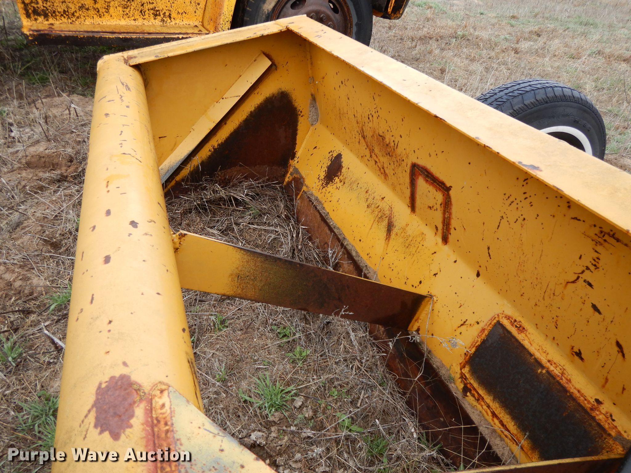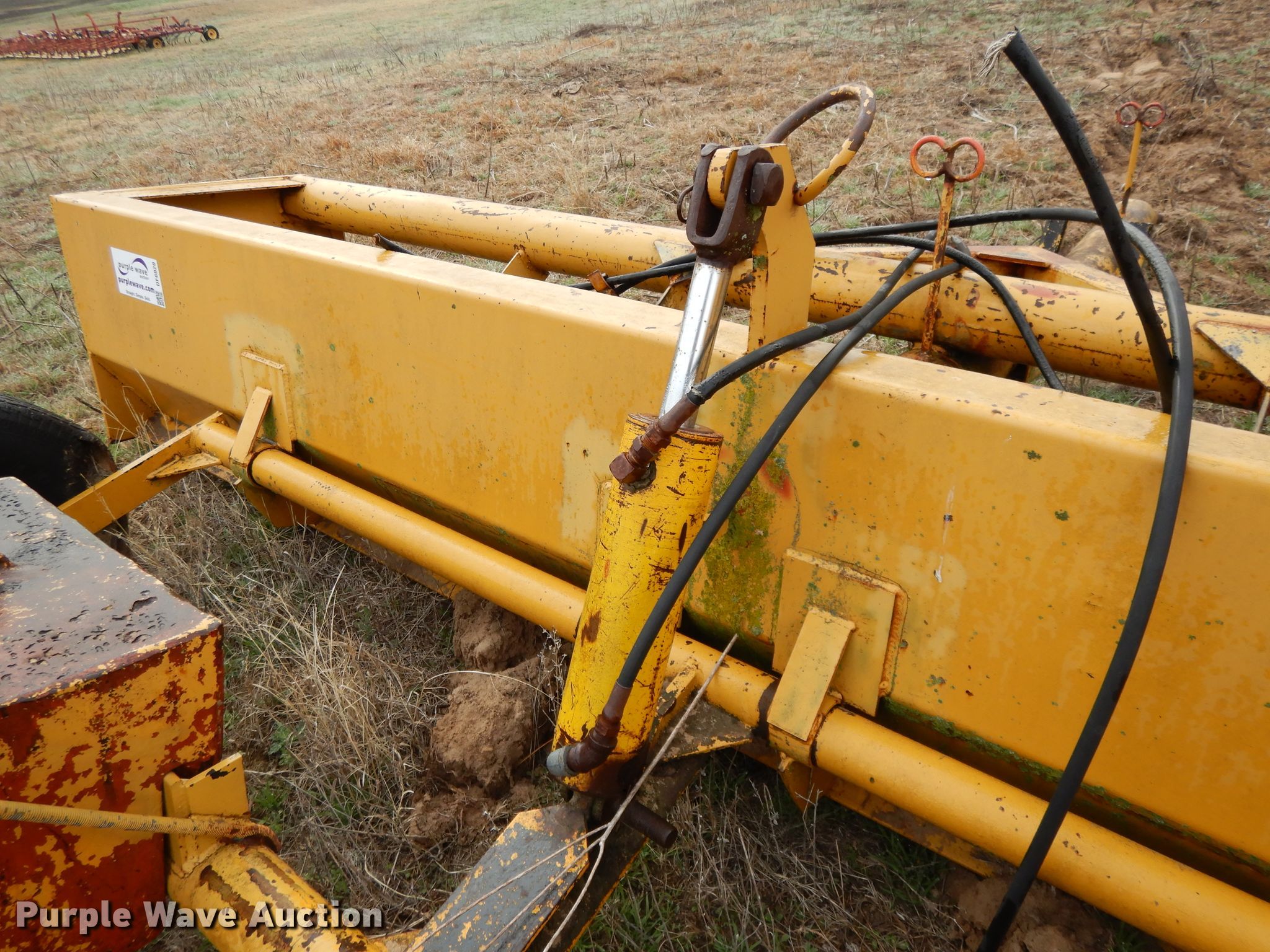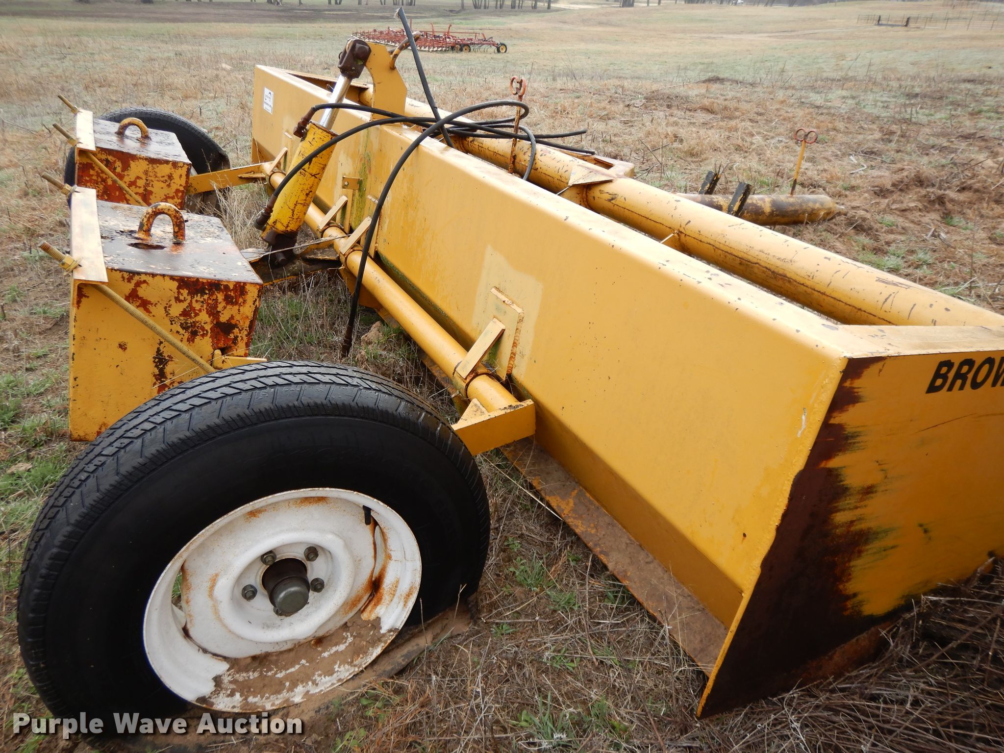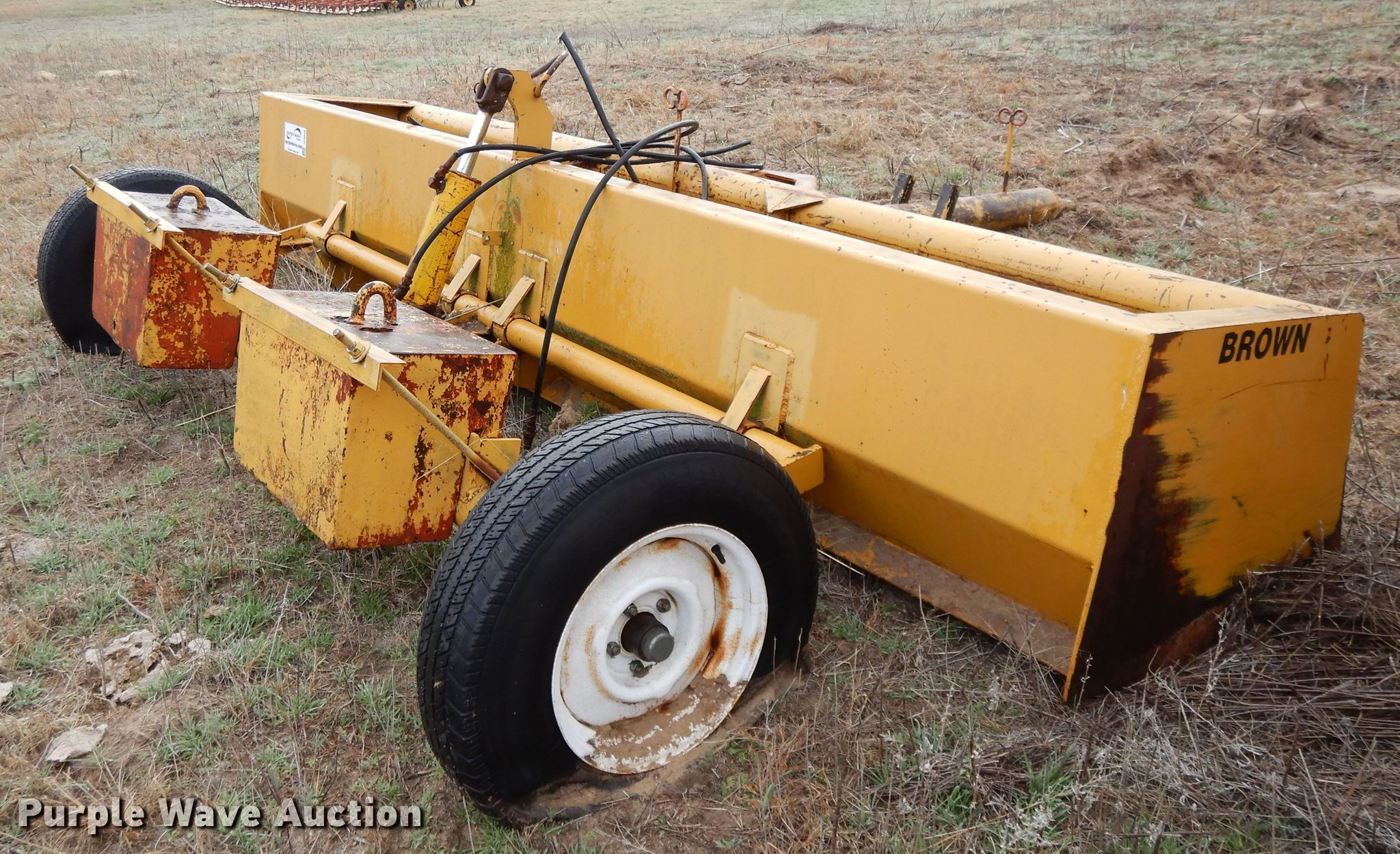 Purple Wave is selling a used Pull Type Scraper in Kansas. This item is a Brown box scraper with the following: 12'W, Hydraulic lift, 235/70R15 tires