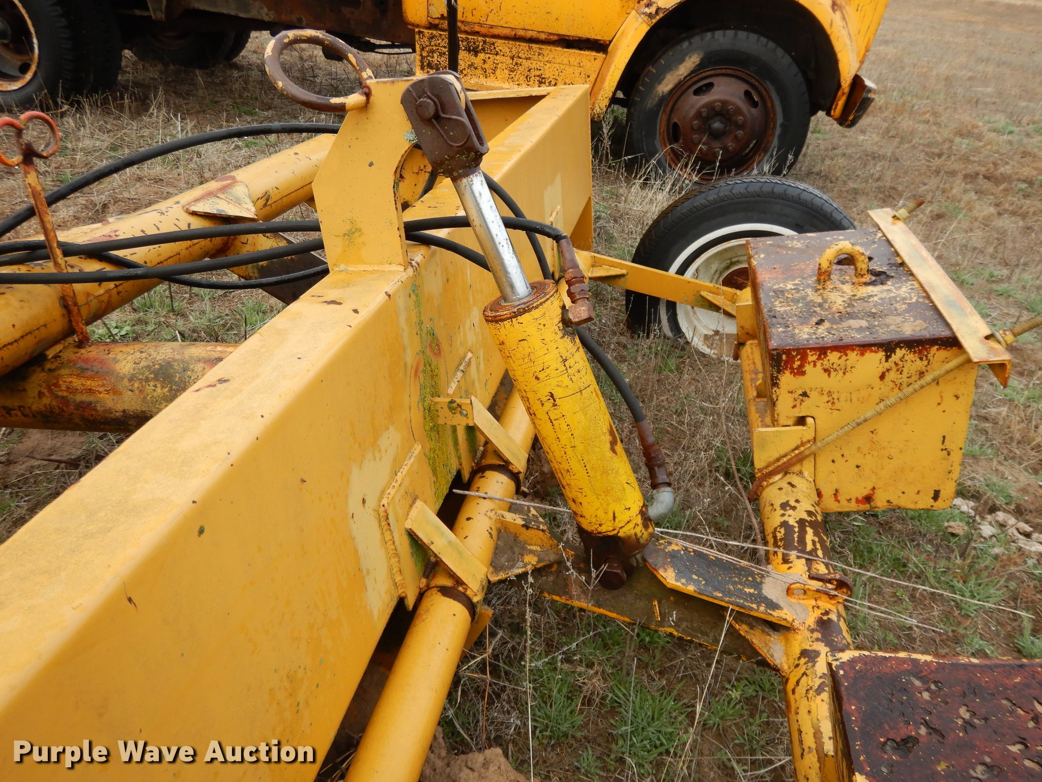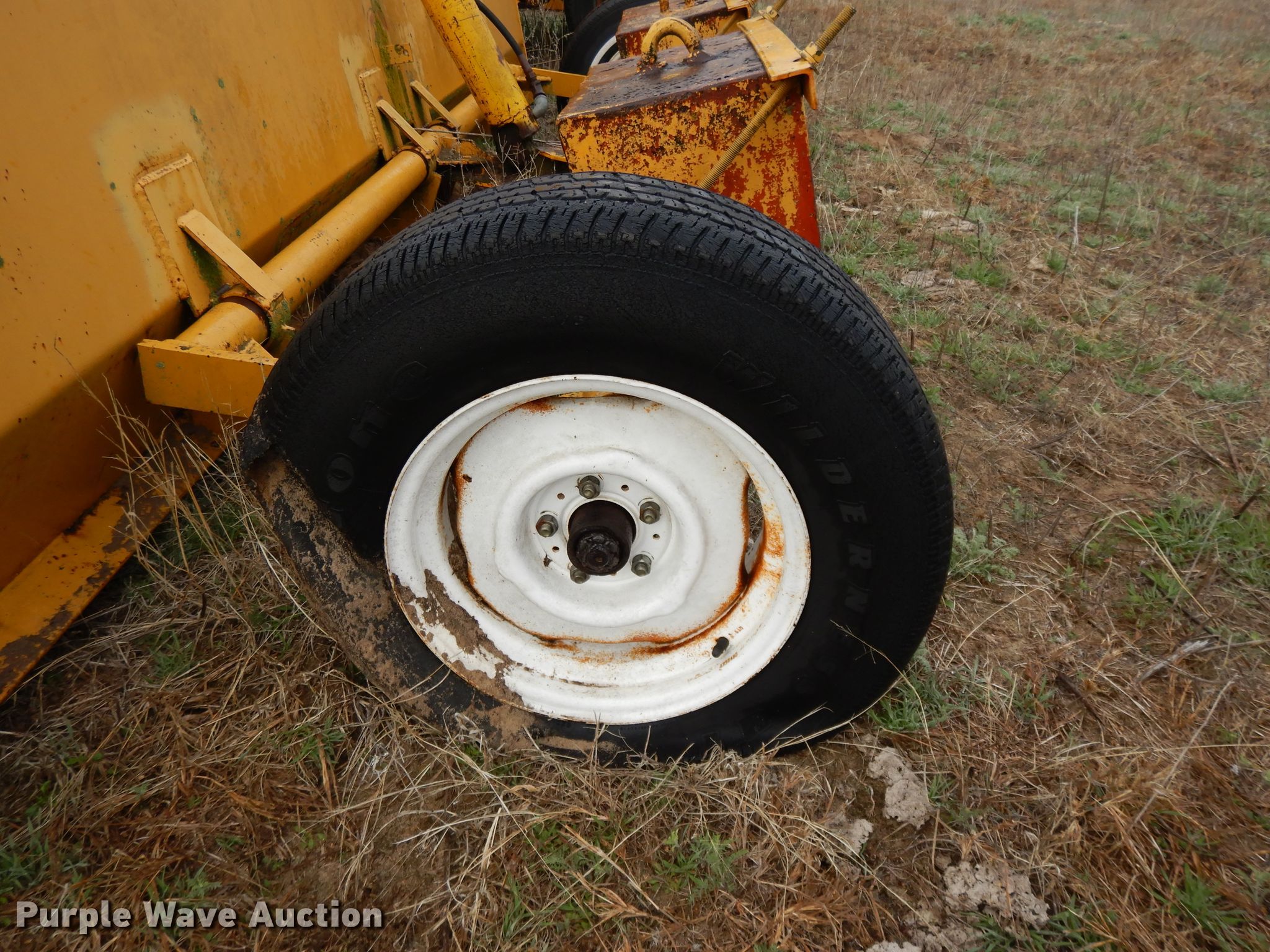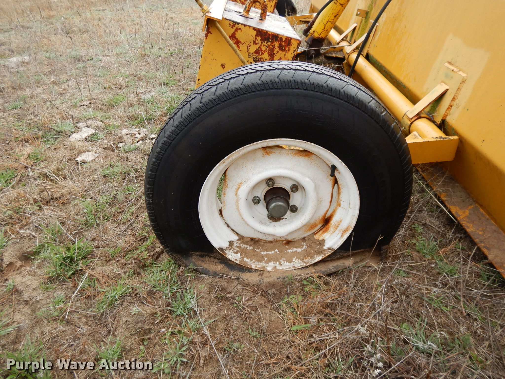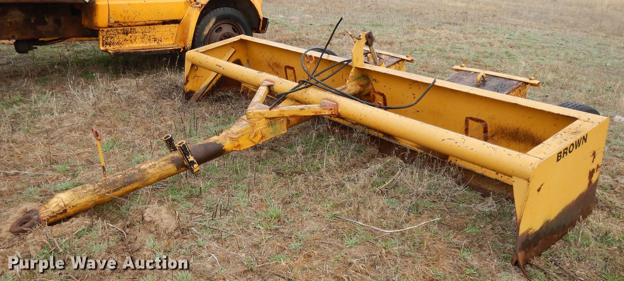 Purple Wave is selling a used Pull Type Scraper in Kansas. This item is a Brown box scraper with the following: 12'W, Hydraulic lift, 235/70R15 tires