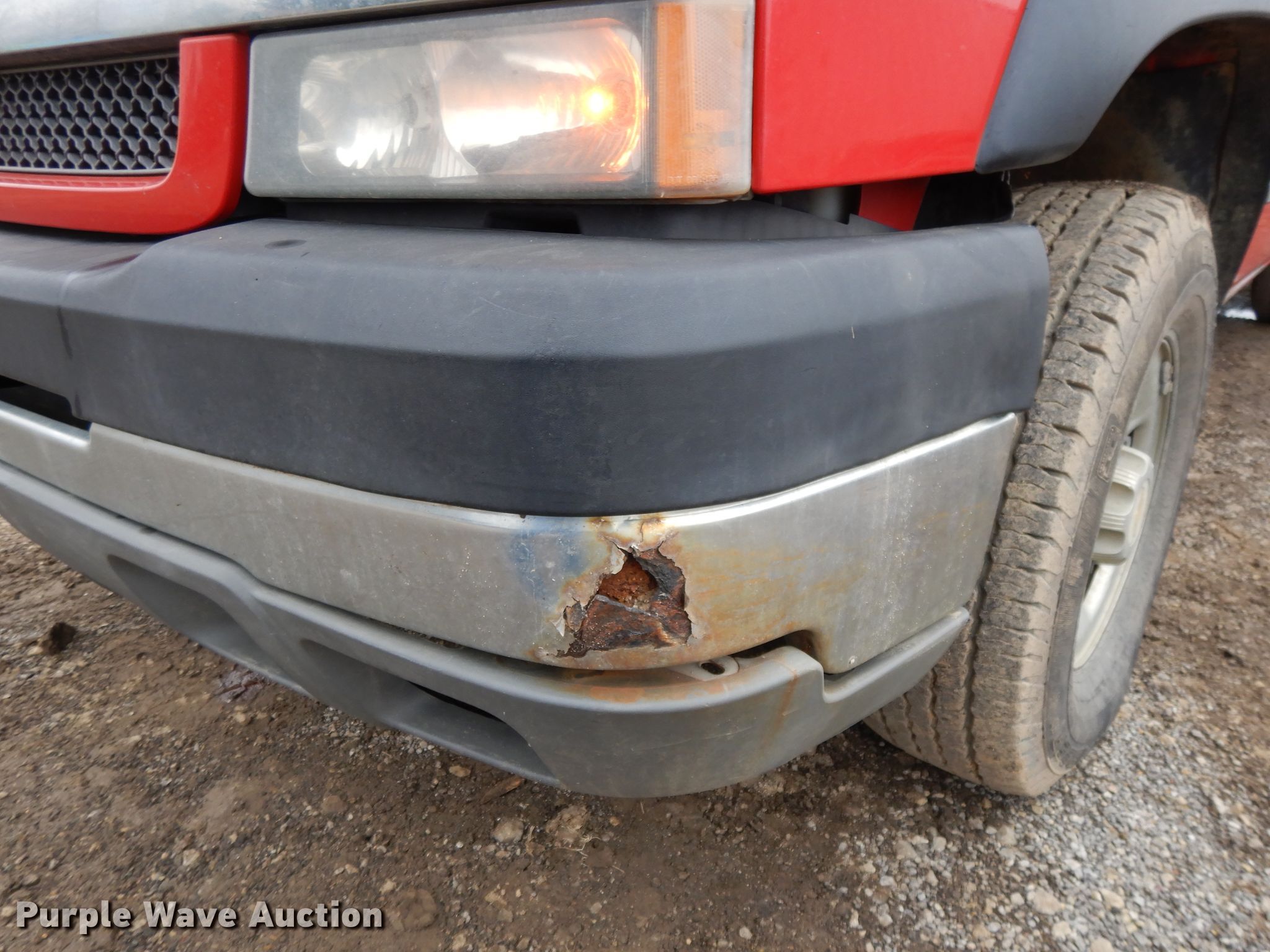2004 Chevrolet Silverado 2500HD 3/4 or 1 ton pickup or van. 287,887 miles on odometer. Engine Displacement: 6.6L V8 OHV 32V, Cylinders: 8, Fuel type: Diesel. Transmission Automatic, Four wheel drive. Interior AC, Heat, Cruise control. Tires Size: 265/75/R16. Notes Auxiliary fuel tank, Windshield cracked , Air Bag light on. Kansas title. 1GCHK24294E365368. Linaweaver Construction. 719 Gilman Road. Lansing, KS 66043