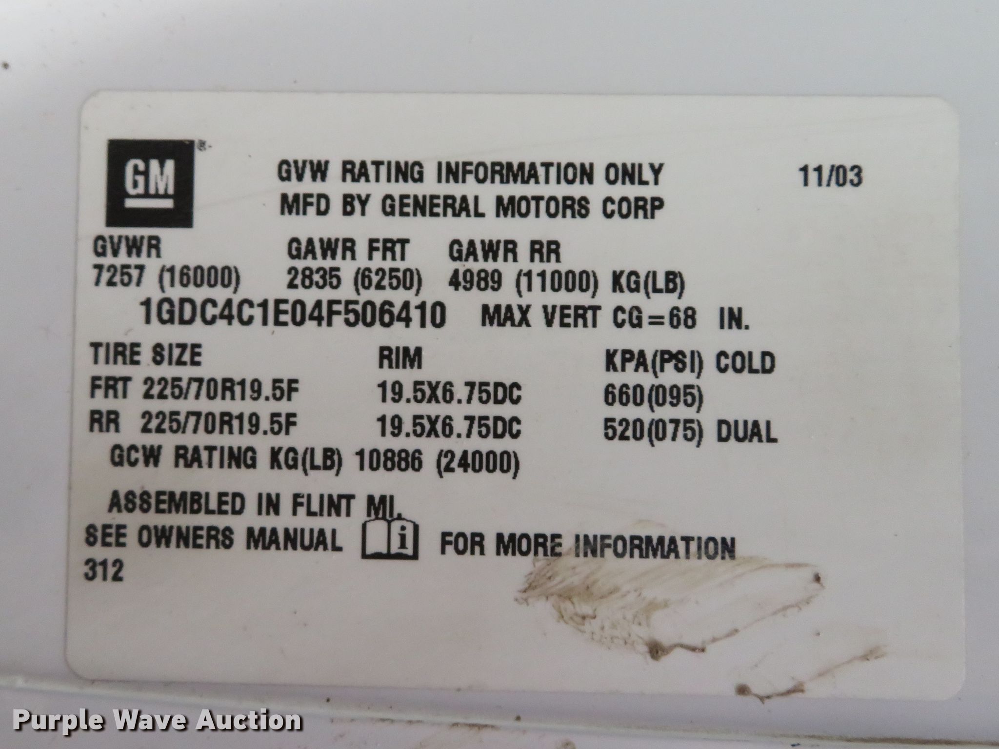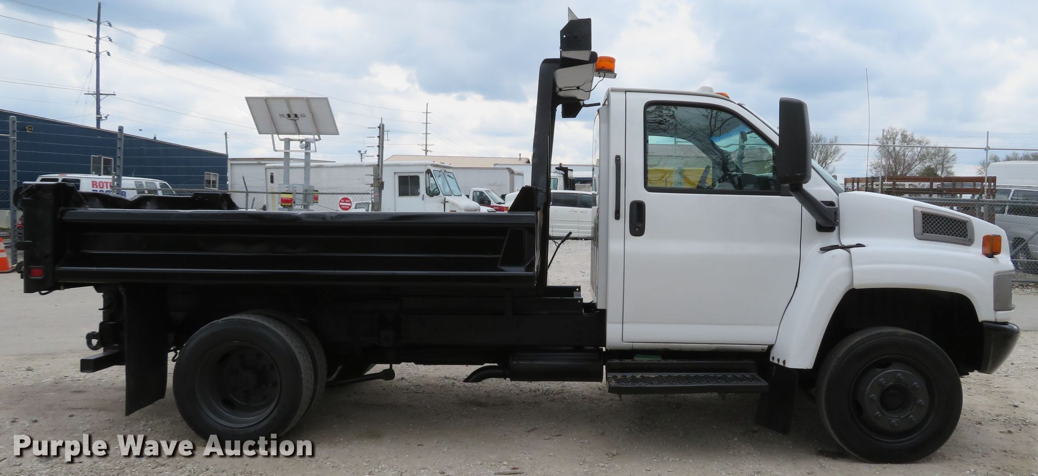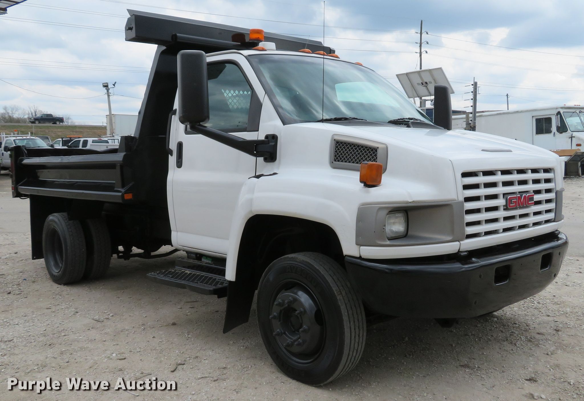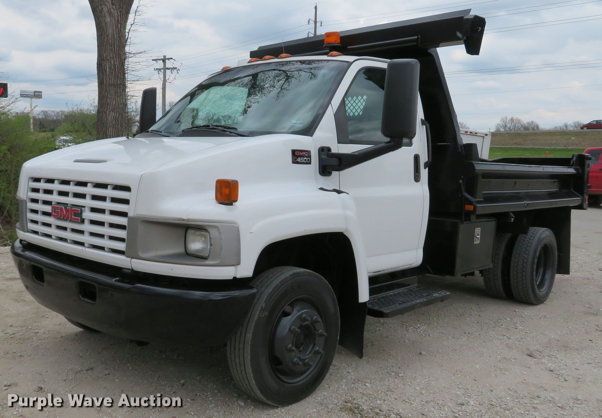 Purple Wave is selling a used Construction Dump Truck in Missouri. This item is a 2004 GMC C4500 dump truck with the following: 54,368 miles on odometer, 8.1L V8 OHV 16V gas engine, Automatic transmission, Single axle, AC and heat, PTO, 10'L x 95"W dump bed, 13" side height, Roll tarp, Single ram hoist, Manual end gate, Spring suspension, Hydraulic brakes, 152" wheelbase, 225/70R19.5 tires, GVWR 16,000 lbs, FAWR 6,250 lbs, RAWR 11,000 lbs, Check airbag light on