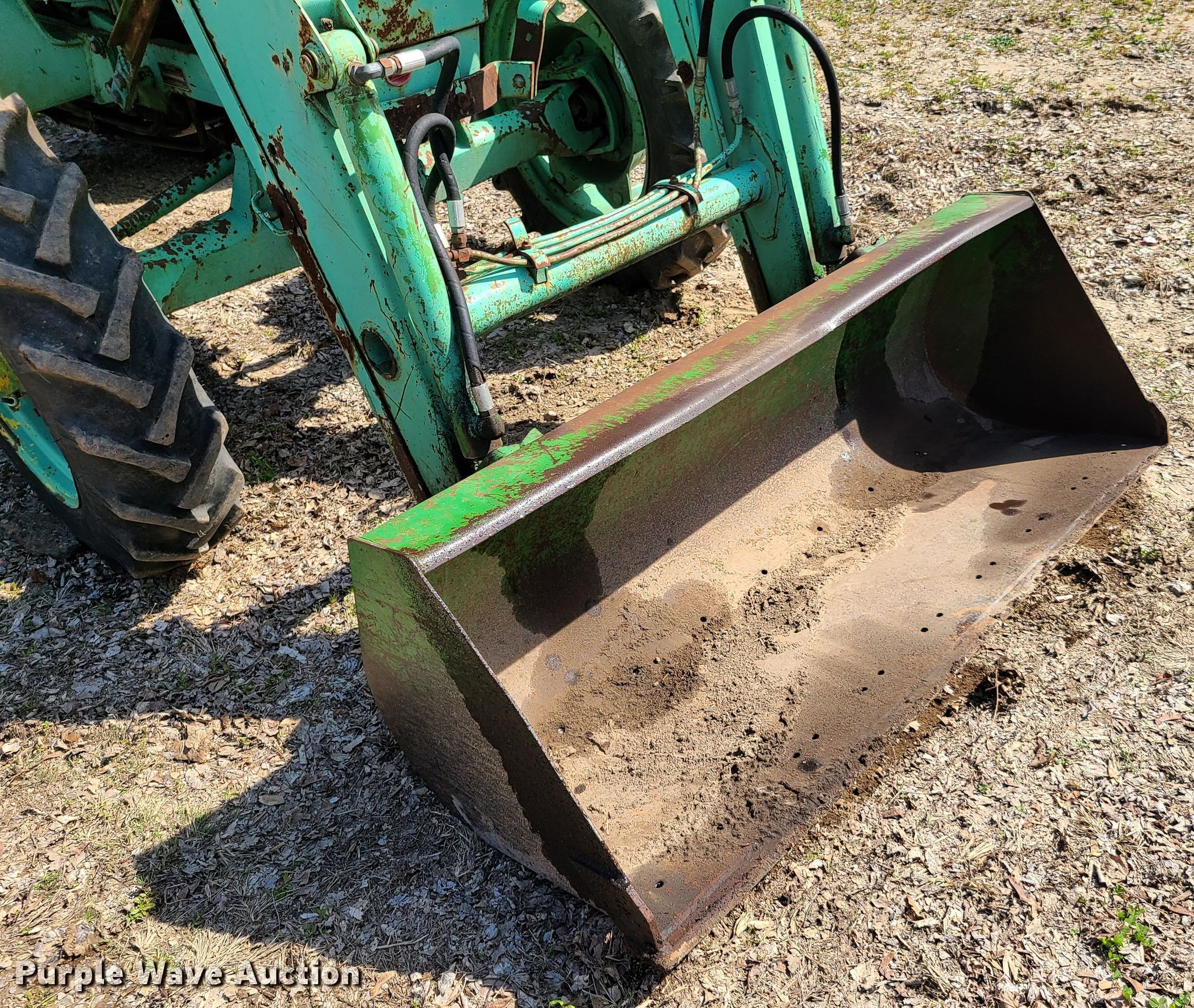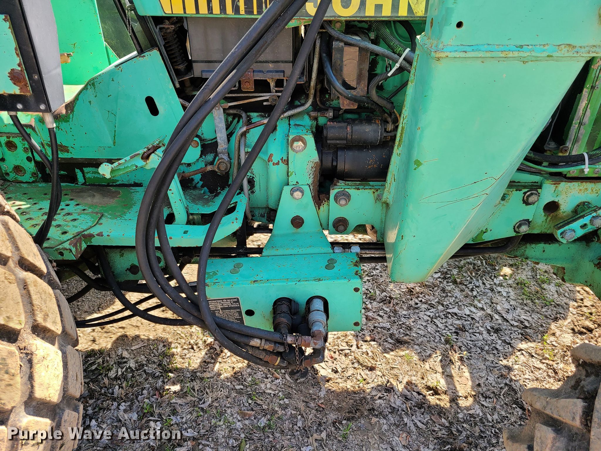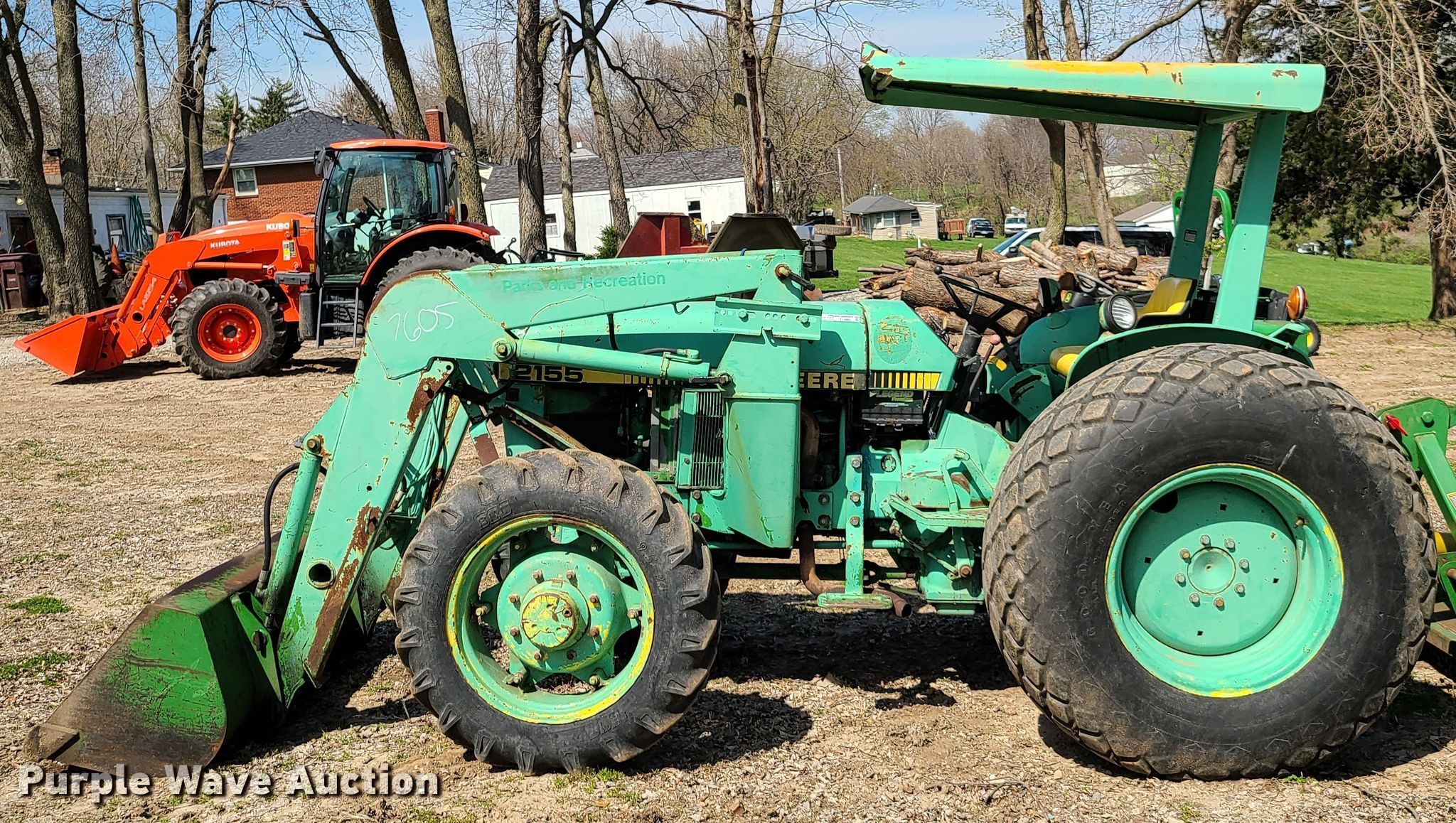 Purple Wave is selling a used Tractor in Missouri. This item is a John Deere 2155 tractor with the following: 3,501 hours on meter, John Deere three cylinder diesel engine, Manual transmission, 8F-4R gears, Loader, 62"W bucket, Joystick controls, Three point, Top link, 540 PTO, Rear hydraulic remote set, 9.5-24 front tires, 18.4-26 rear tires, Rotary mower not included, Serial L02155F626723