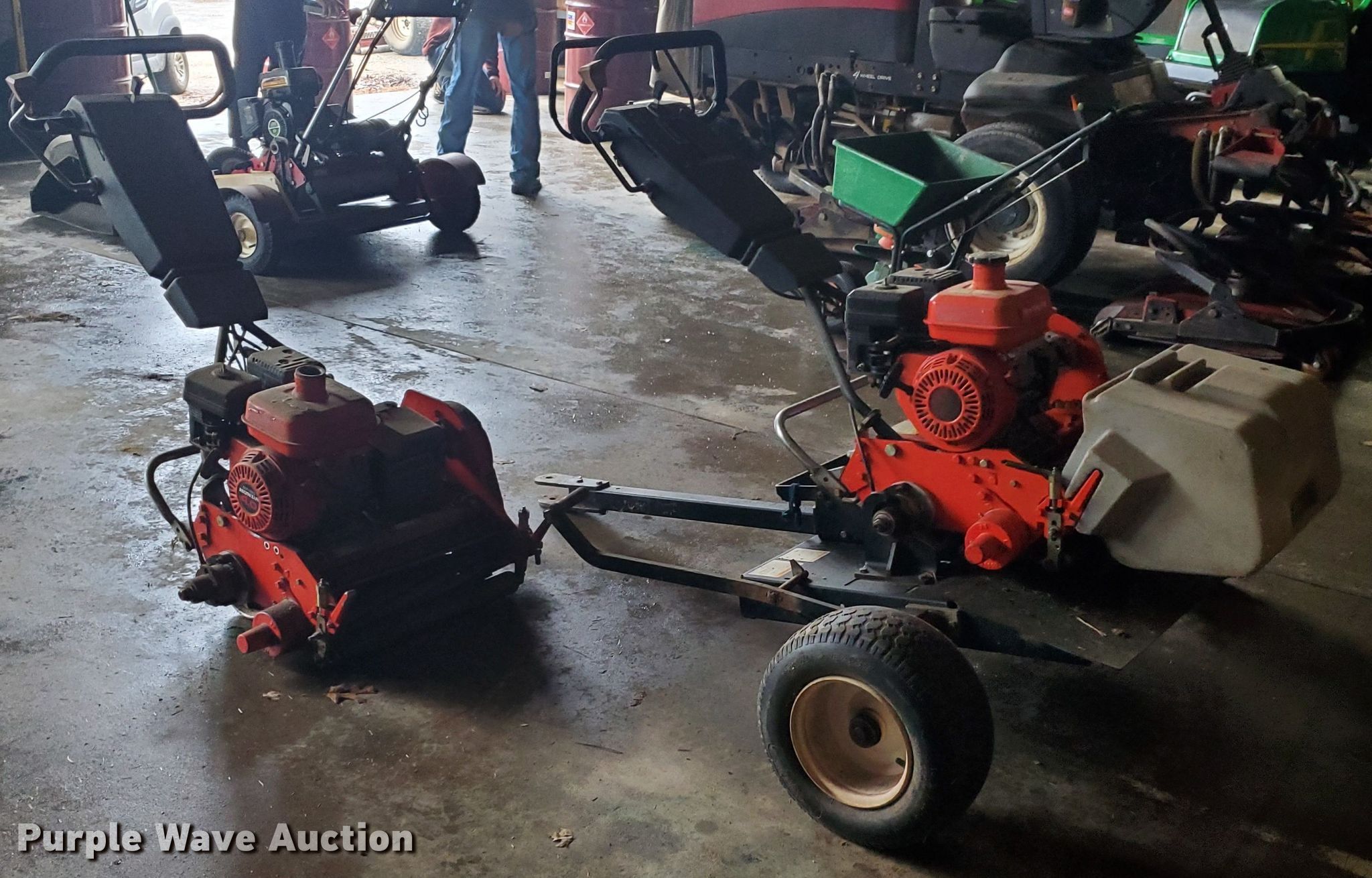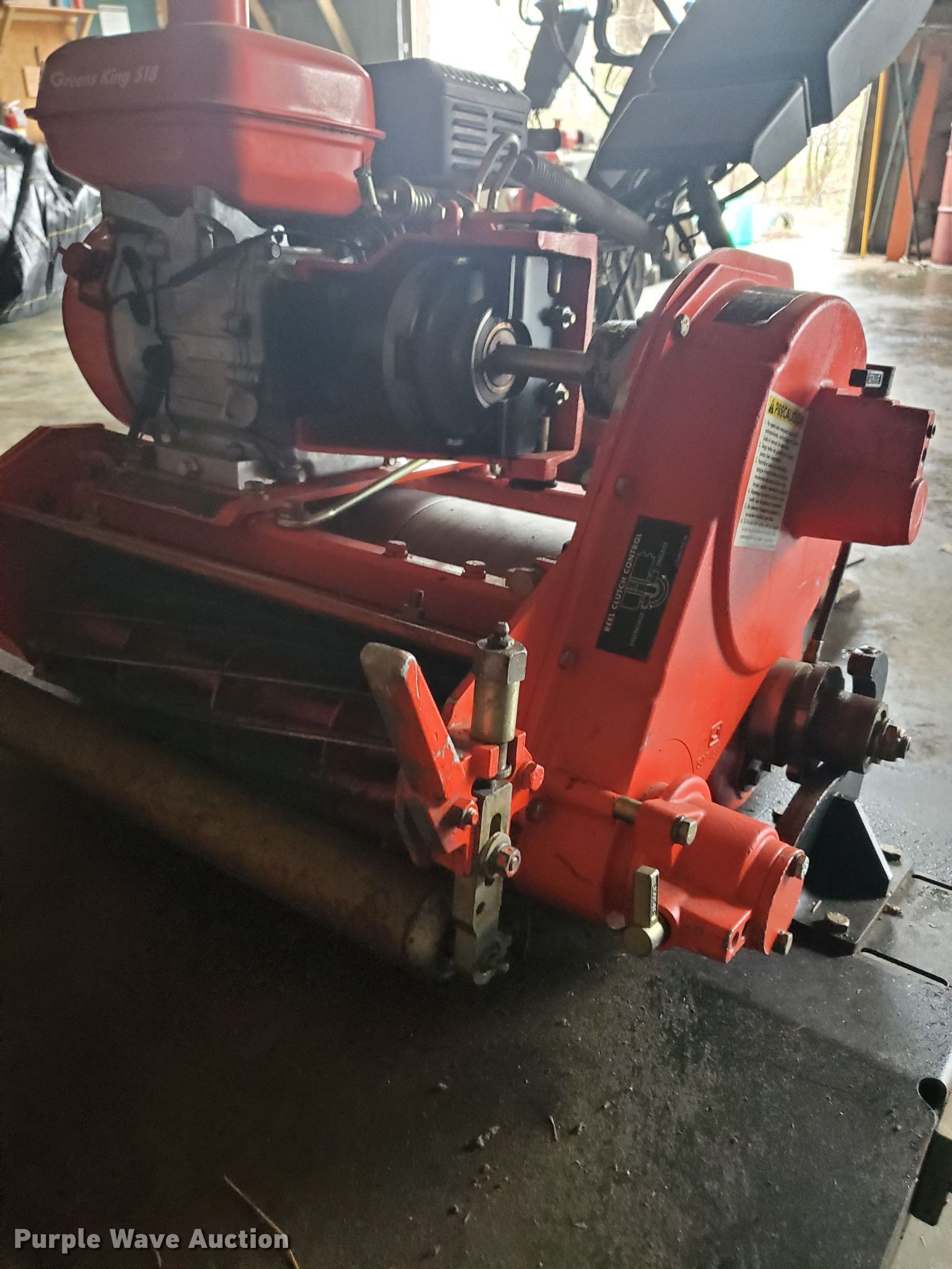 Purple Wave is selling a used Lawn and Garden in Kentucky. This item is a 2005 Jacobsen Green King 518 greensmower with the following: 18" cut, Honda GX120 single cylinder gas engine, 11x4.00-5 tires, Jacobsen greensmower, Parts only, Serial 62262 2049, Jacobsen mower caddy, 16x6.50-8 tires, Serial 6864802679, Serial 62262 2046