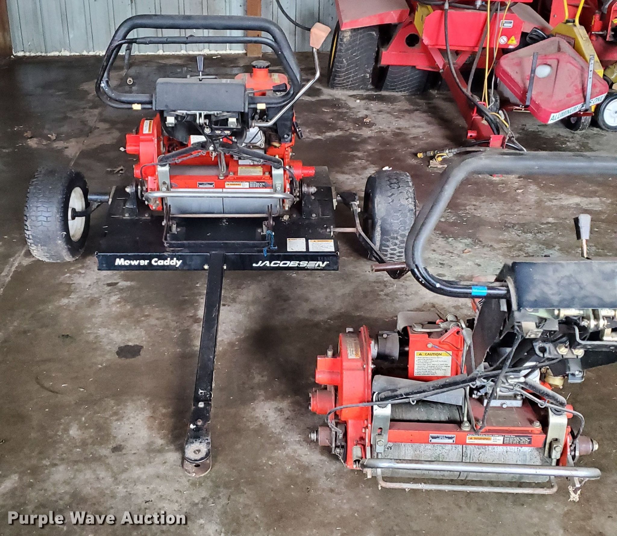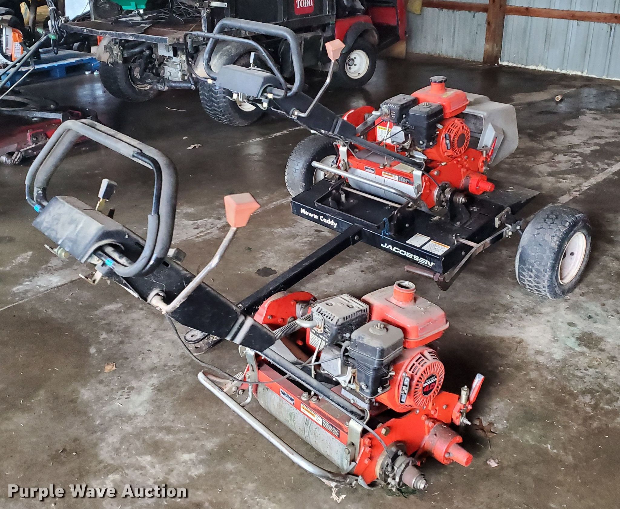2005 Jacobsen Green King 518 greensmower. 18" cut, Honda GX120 single cylinder gas engine, 11x4.00-5 tires, Jacobsen greensmower Parts only, Serial 62262 2049, Jacobsen mower caddy 16x6.50-8 tires, Serial 6864802679, Serial 62262 2046. Murray Country Club. 2200 College Farm Rd. Murray, KY 42071