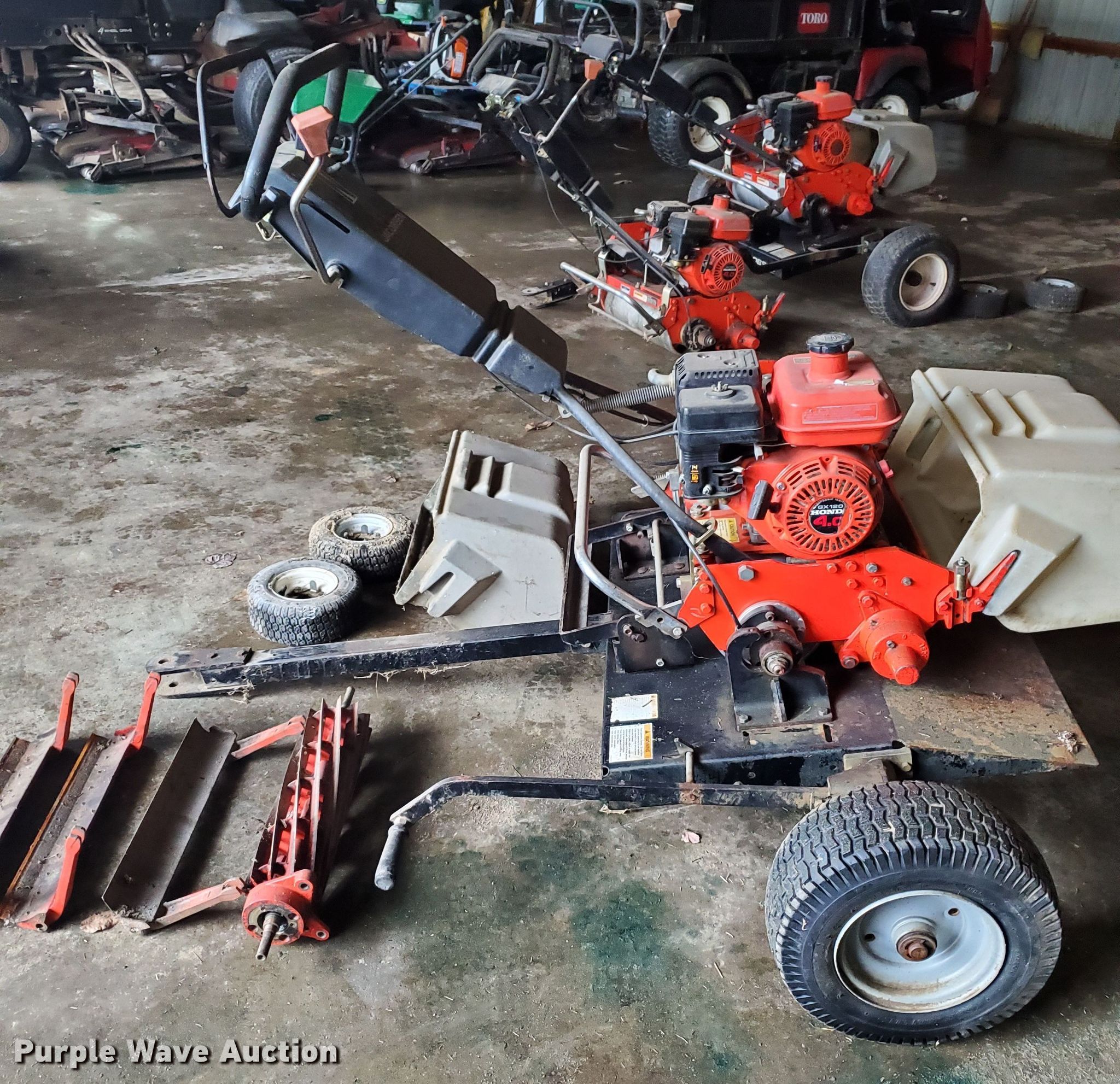 Purple Wave is selling a used Lawn and Garden in Kentucky. This item is a 2005 Jacobsen Green King 518 greensmower with the following: 18" cut, Honda GX120 single cylinder gas engine, 11x4.00-5 tires, Additional reel, Jacobsen mower caddy, 16x6.5-8 tires, Serial 6864802684, Serial 62262 1885
