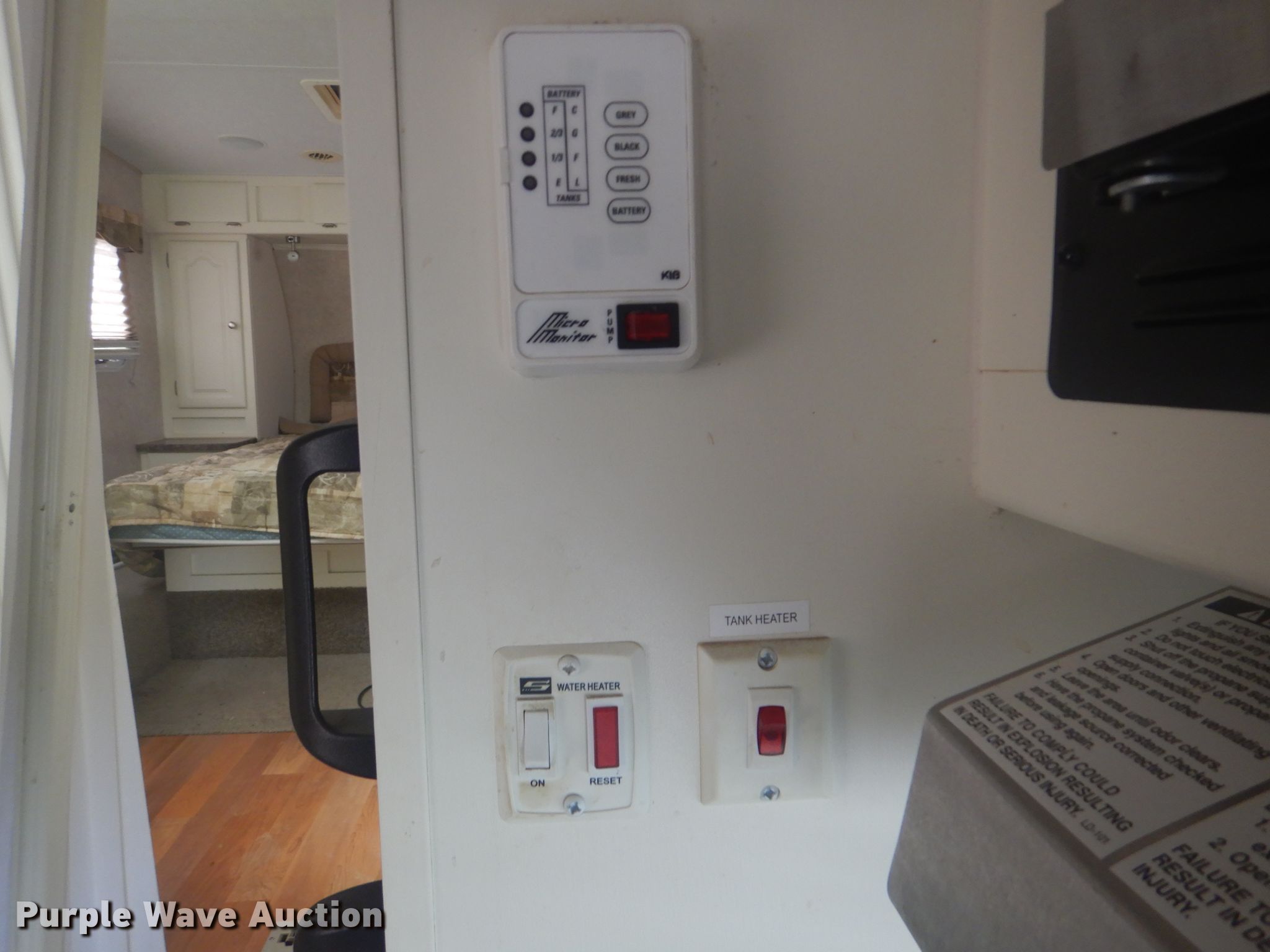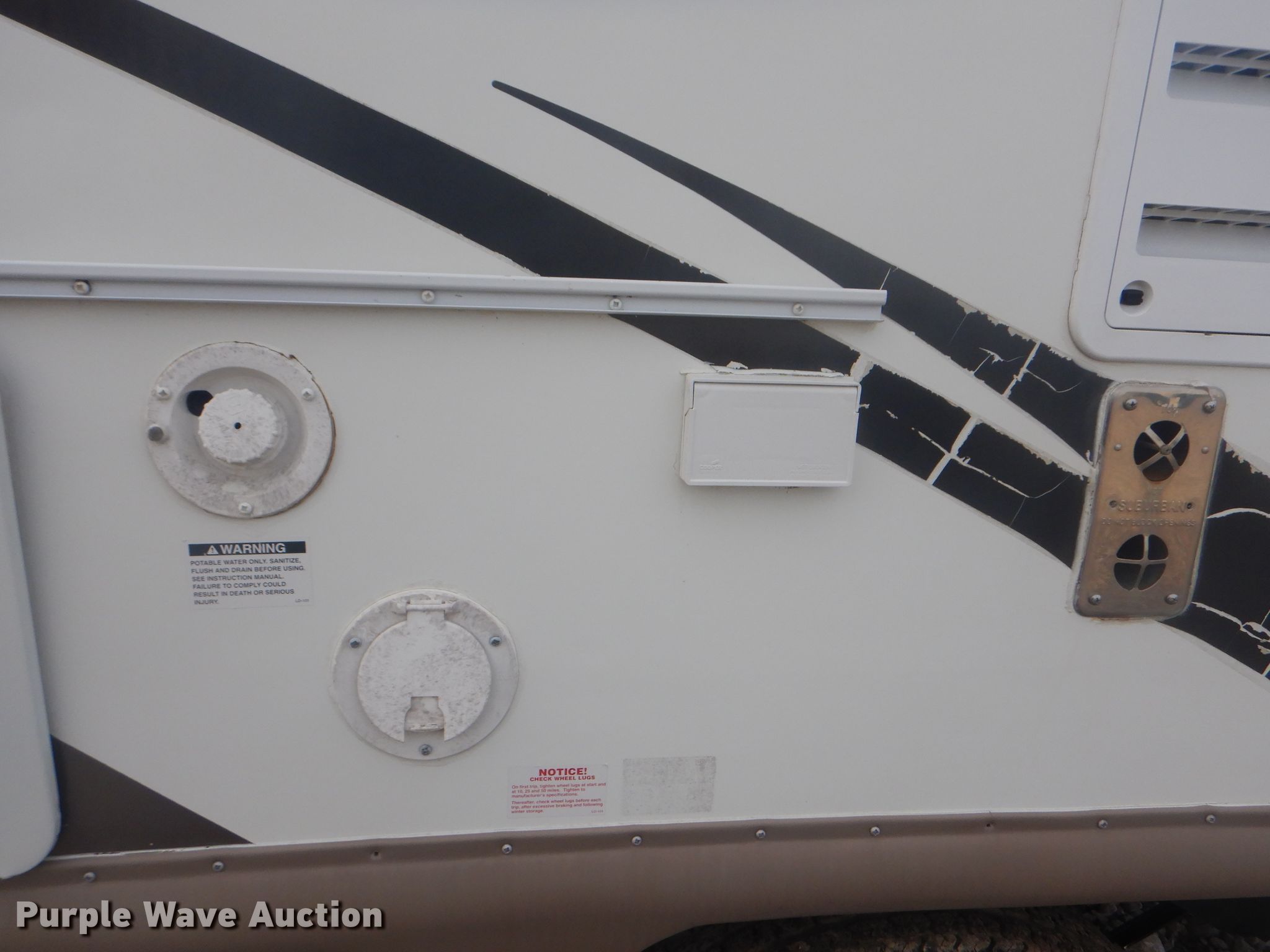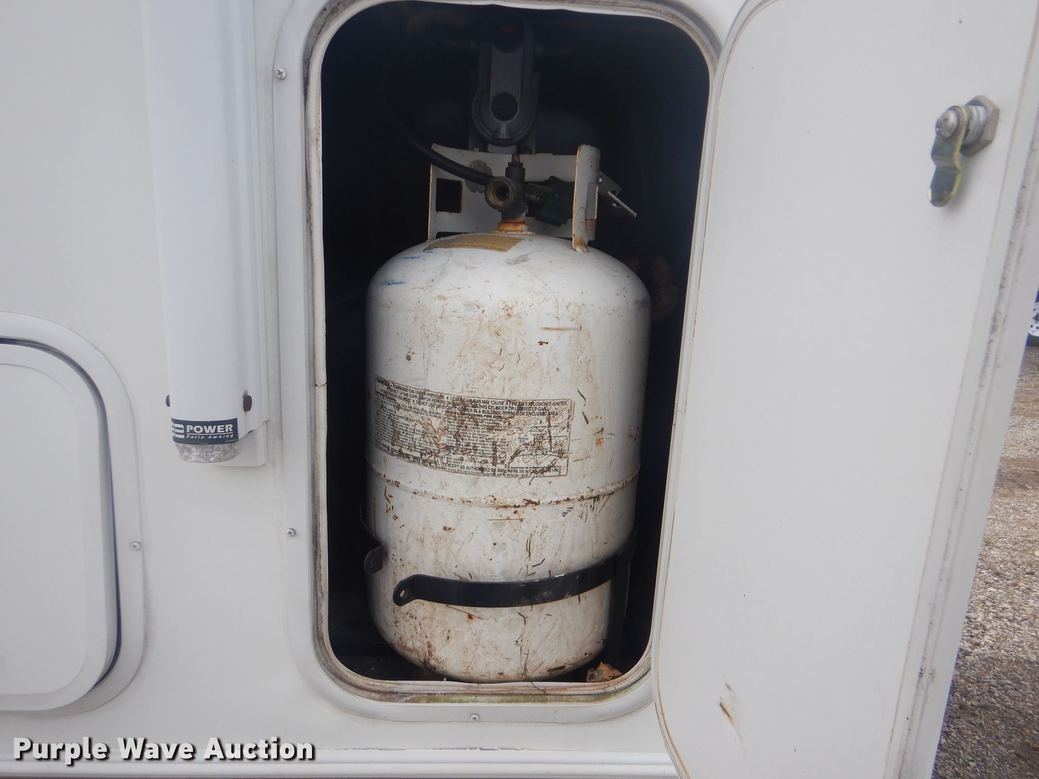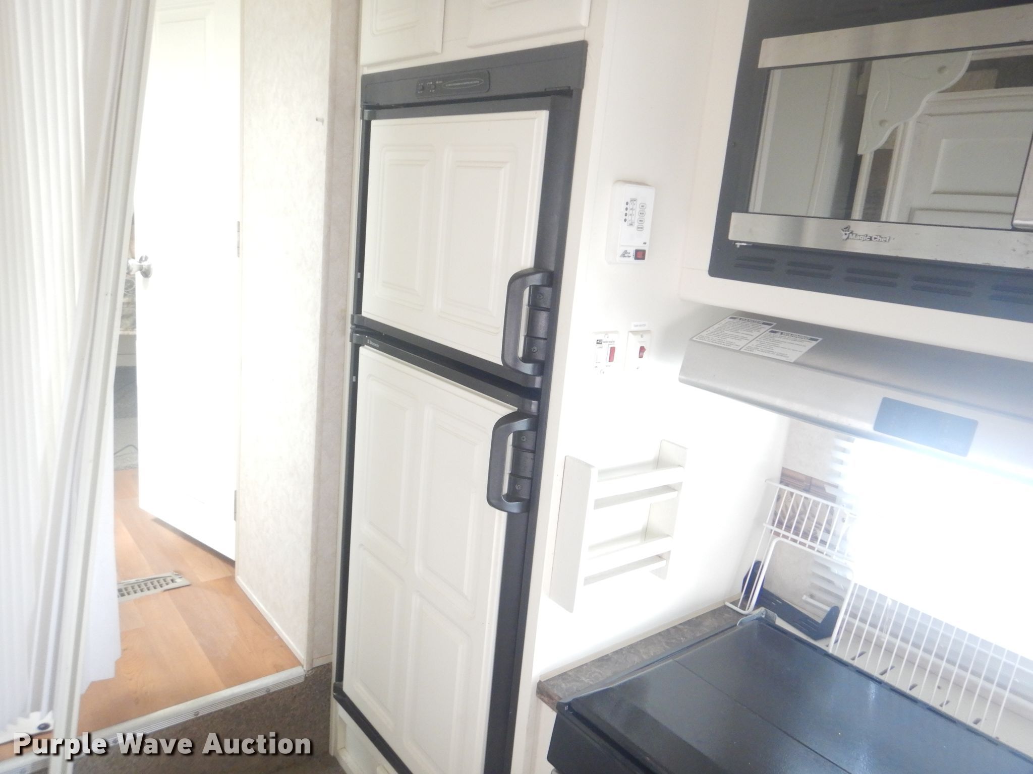Purple Wave is selling a used RV in Oklahoma. This item is a 2008 Rockwood Signature Ultra Lite camper with the following: 26'L, Slide-out, Electric awning, Kitchen, Dishwasher, Refrigerator/freezer, Microwave, Oven, Propane stove, Living room, Table, Couch, Bathroom, Single double bed, AC and heat, Spring suspension, Electric brakes, Tandem axle, Carlisle ST205/75R15 tires