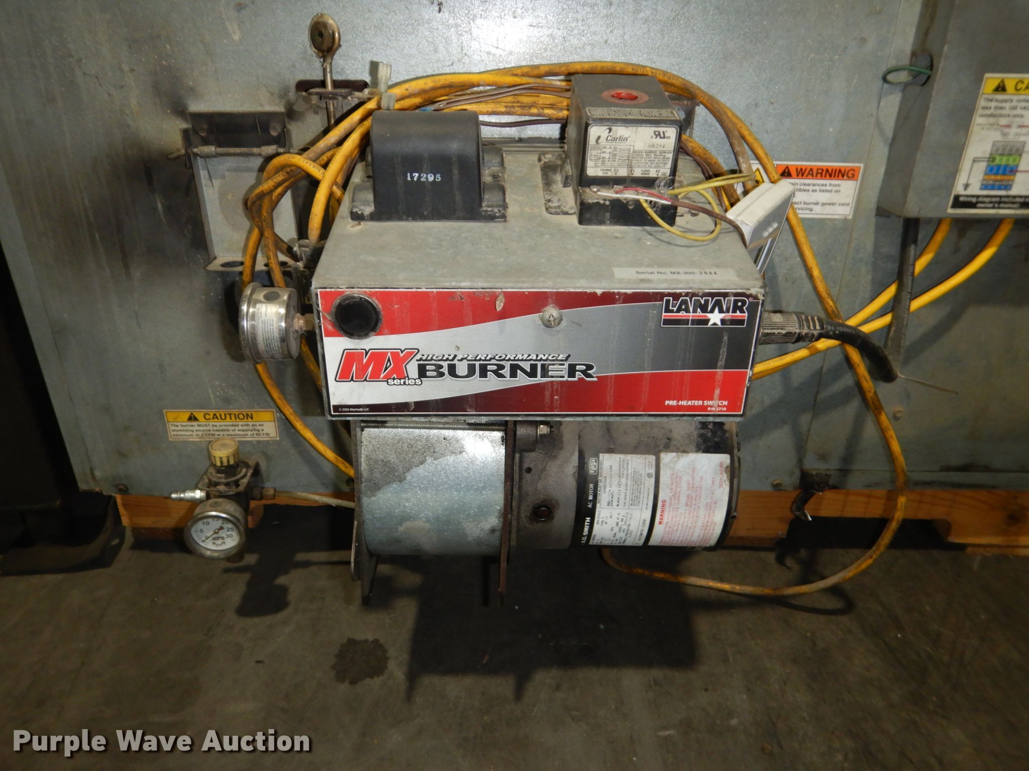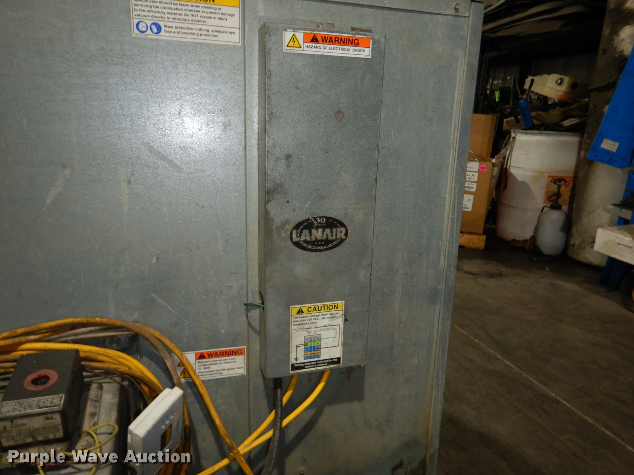 Purple Wave is selling a used Appliances in Kansas. This item is a Lanair MX-300 waste oil stove with the following: 115V, Approx. 200 gallon tank, Oil pump