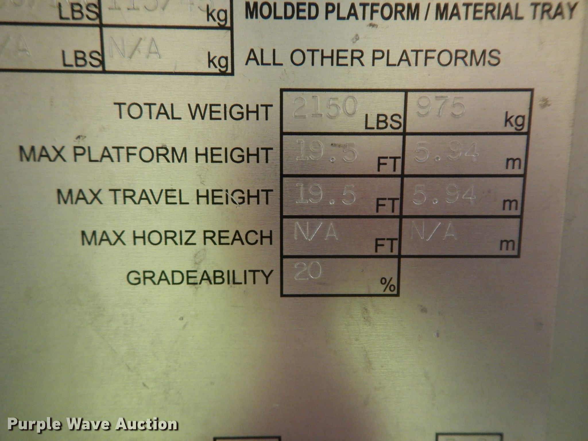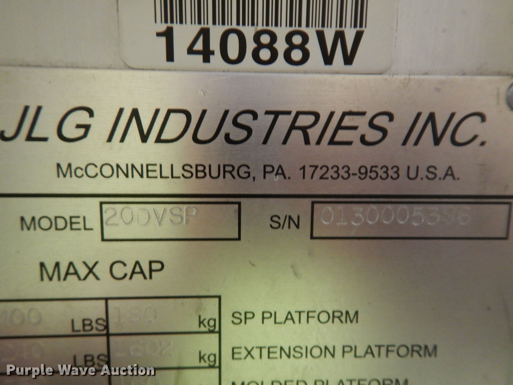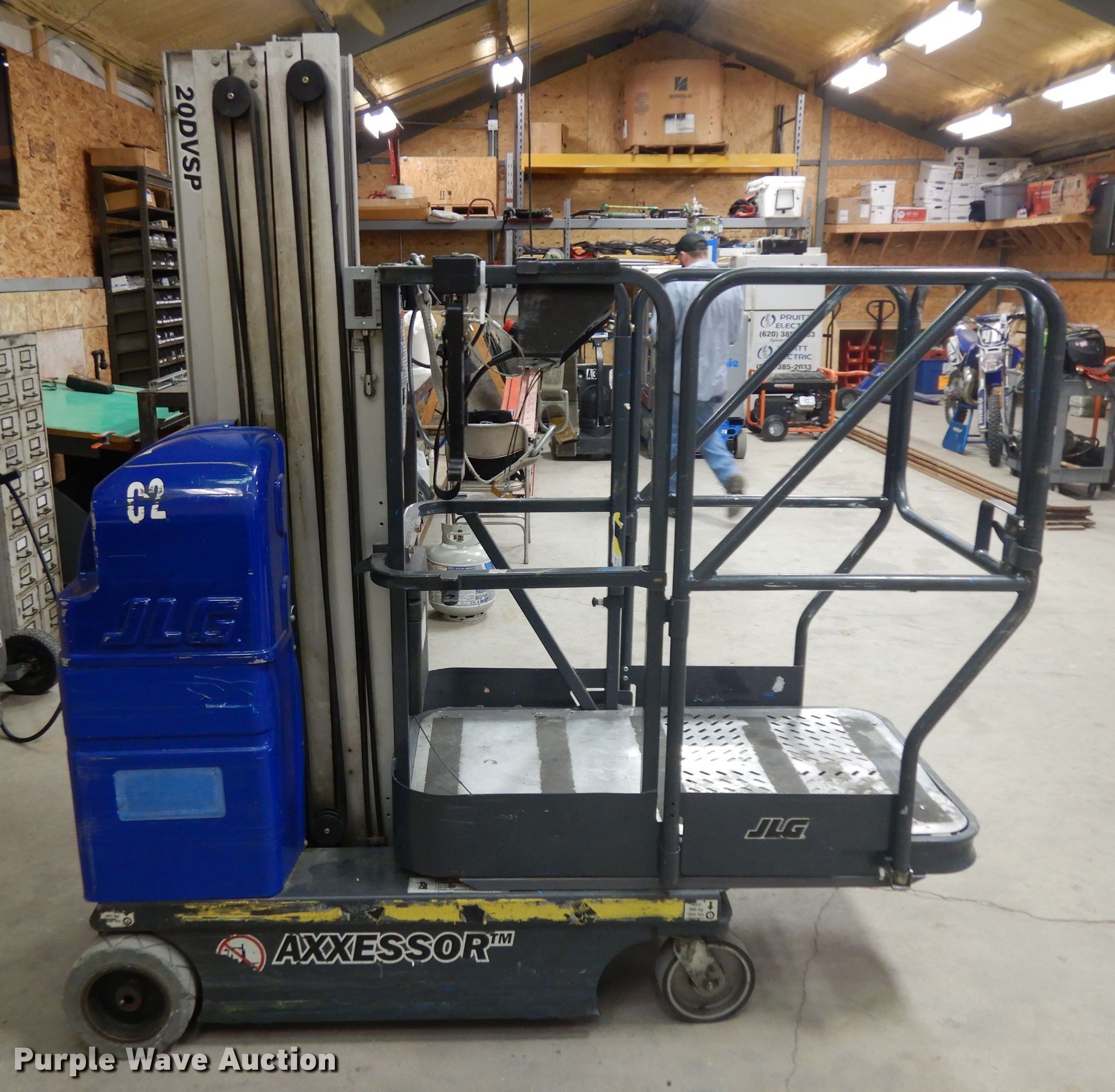 Purple Wave is selling a used Scissor or Vertical Lift in Kansas. This item is a 2003 JLG Axxessor 200VSP vertical lift with the following: 1,220 hours on meter, Serial: 0130005396