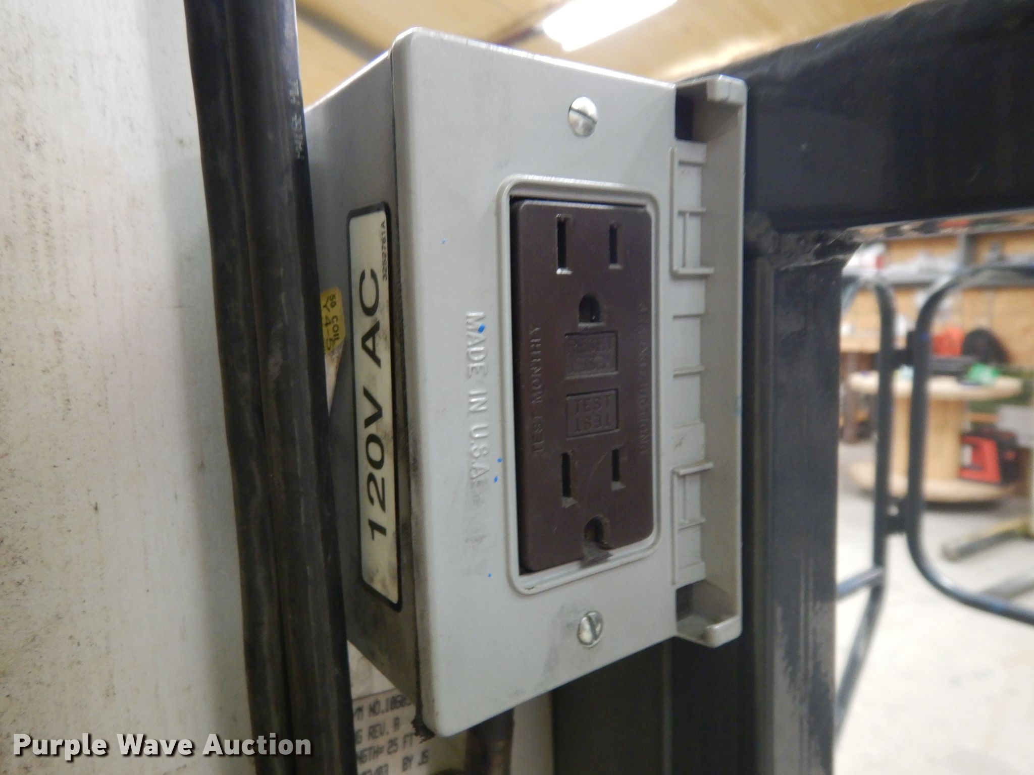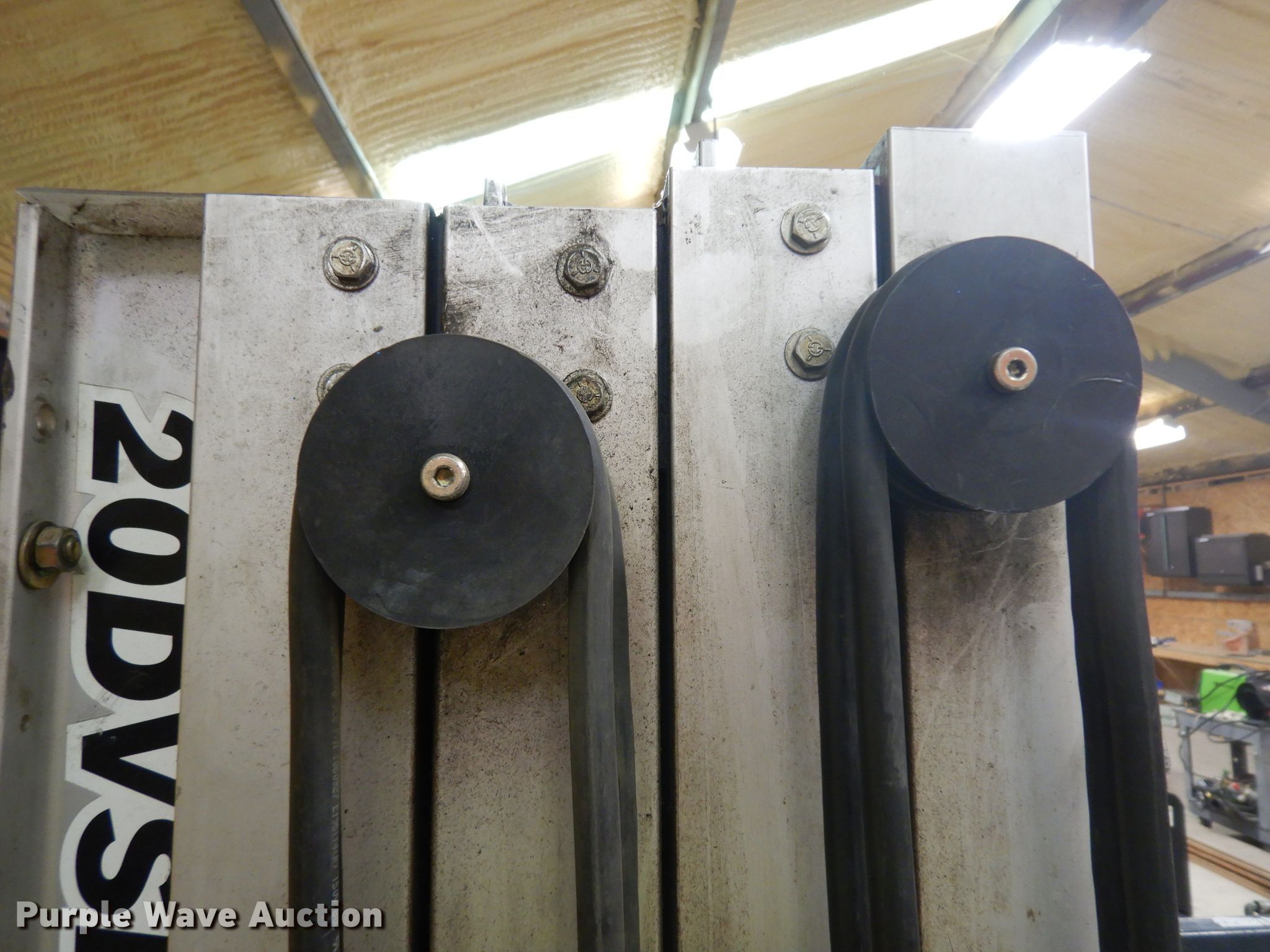 2003 JLG Axxessor 200VSP vertical lift. 1,220 hours on meter, Serial: 0130005396. Electric motor. Operational Maximum lift capacity: 400 lbs, Maximum lift height: 19.5', Platform: 48" L x 28" W, AC power outlet, Controls: Platform, Ground. Tires Solid. Notes Broken tension cable. Warrior Equipment & Sales. 415 N Main St. Spearville, KS 67876