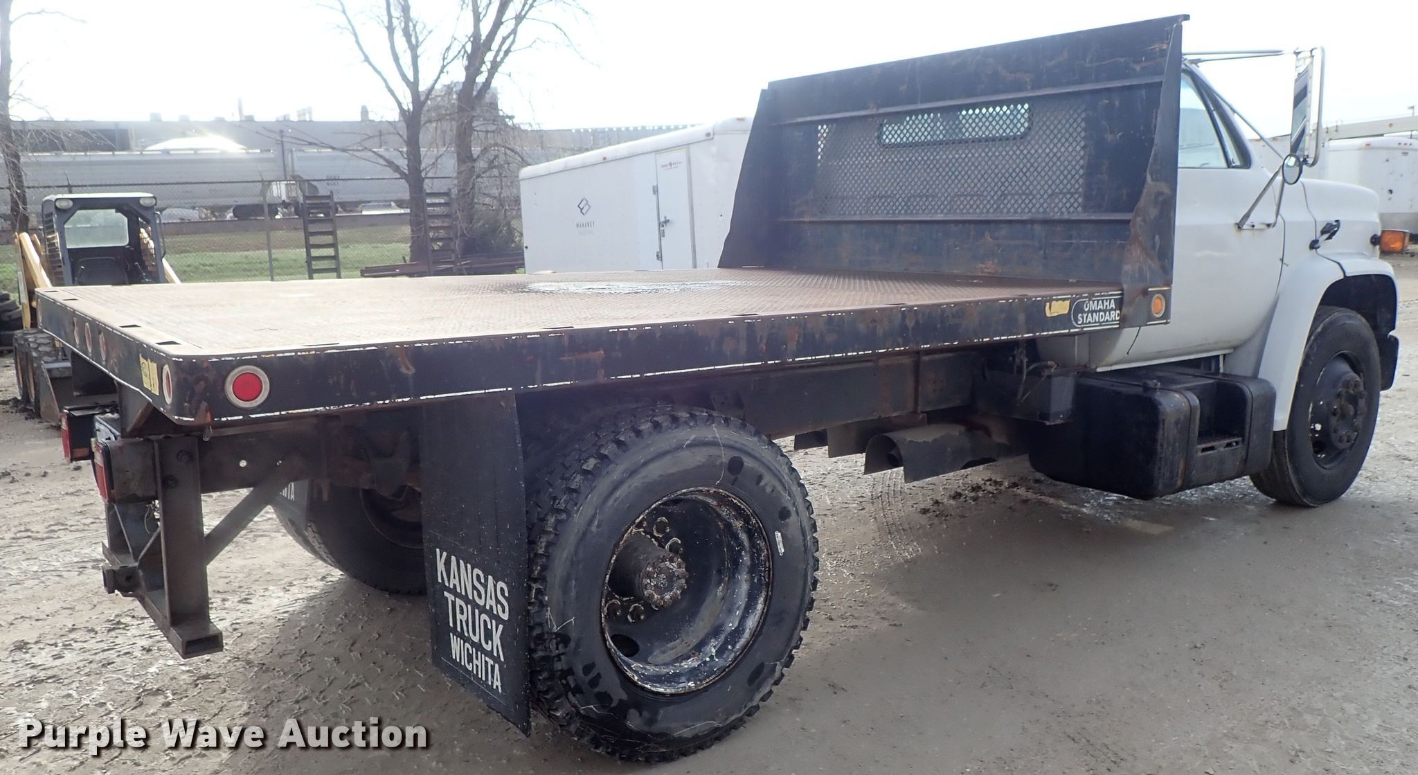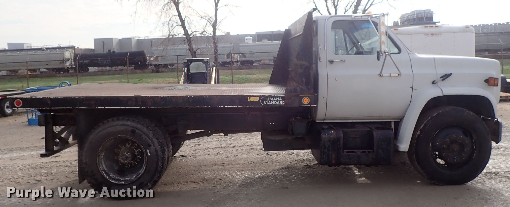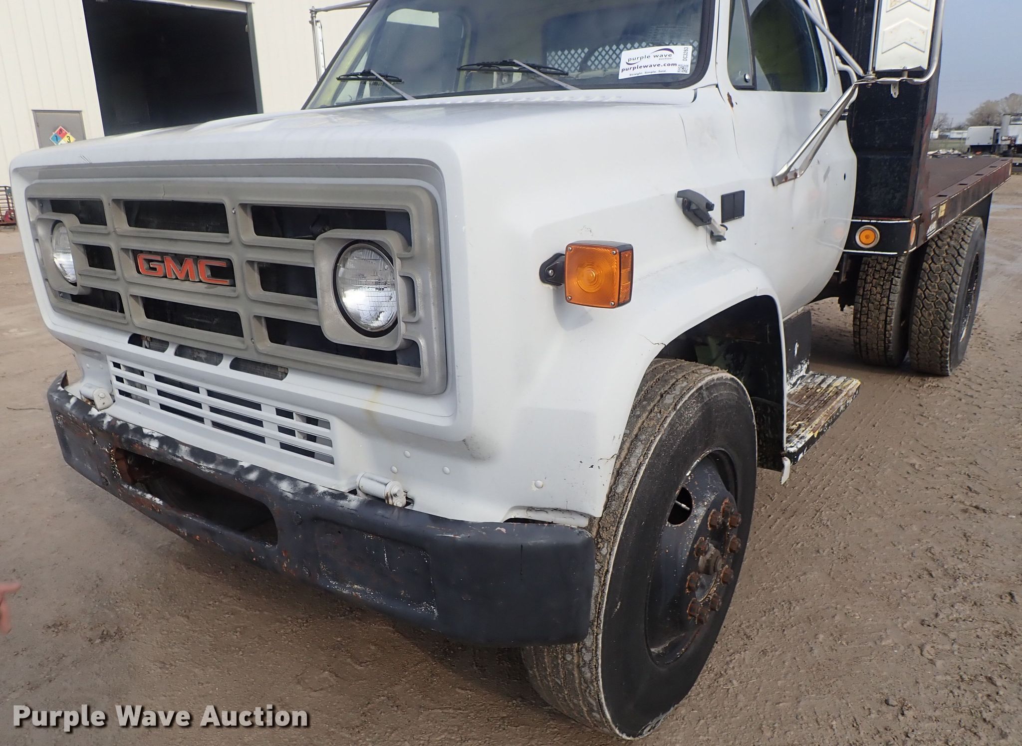 Purple Wave is selling a used Flat Bed Truck in Kansas. This item is a 1988 GMC C6000 flatbed truck with the following: 160,380 miles on odometer, 6.0L V8 gas engine, Five speed manual transmission, Single axle, AC and heat, Omaha Standard flatbed, 12'L x 96"W, Spring suspension, Hydraulic brakes, 295/75R22.5 tires, GVWR 24,640 lbs