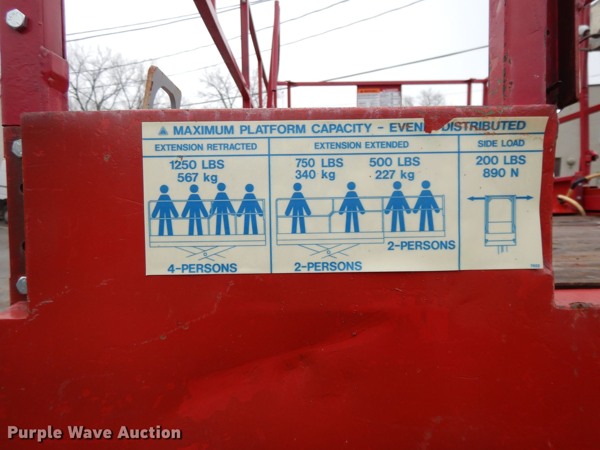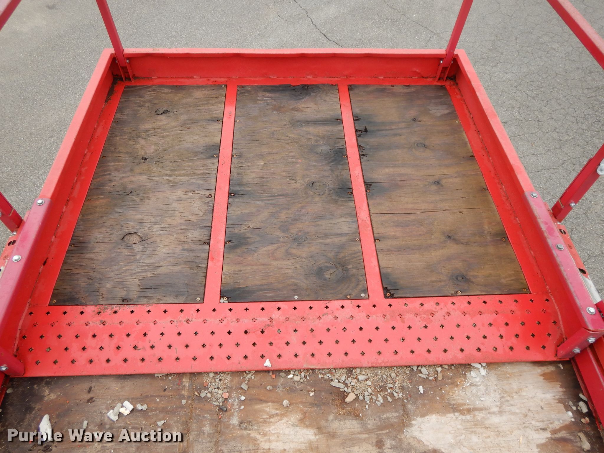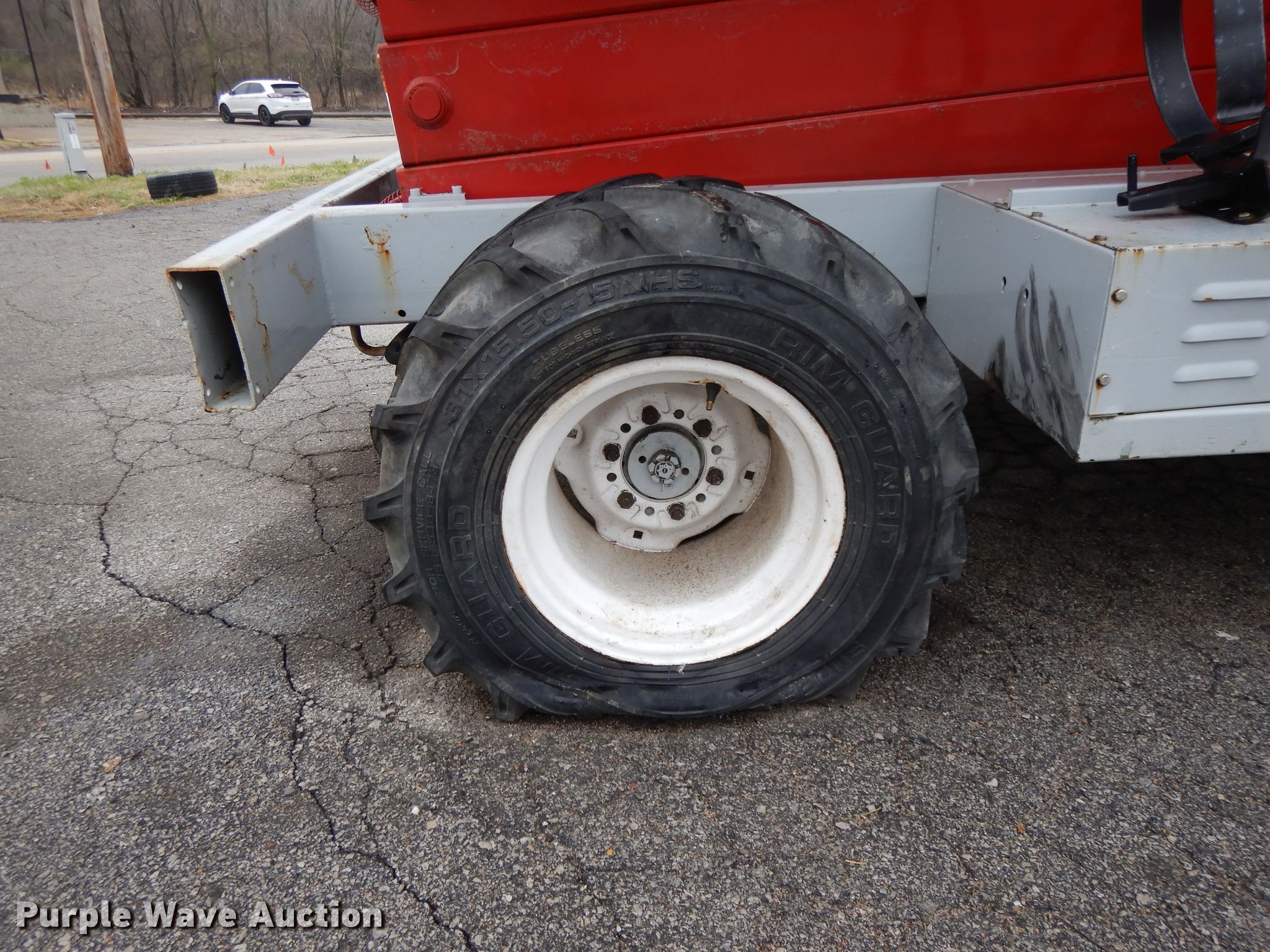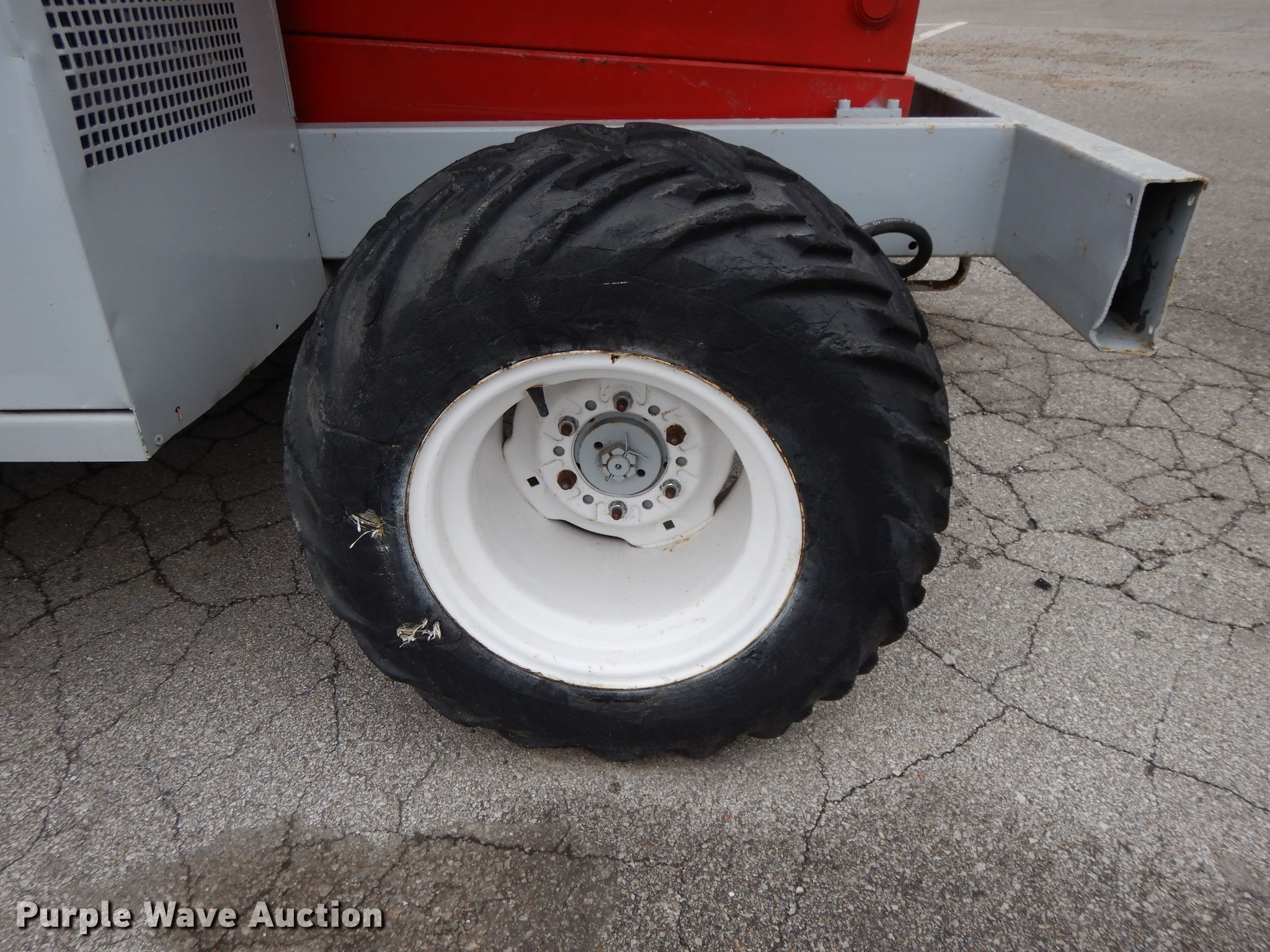 1996 Mec 33RT scissor lift. 1,713 hours on meter, Serial: 10800340. Engine Kubota WG750, Cylinders: 3, Fuel type: Dual fuel. Operational Maximum lift capacity: 1,250 lbs, Maximum lift height: 33', Platform: 132" L x 74" W, AC power outlet, Controls: Platform, Ground, Platform extensions: Manual, Safety alarm. Tires Tire size: 31x15.5-15. Notes One brake drags intermittently. GKW Restoration Group. 1100 Guinotte Ave. Kansas City, MO 64120