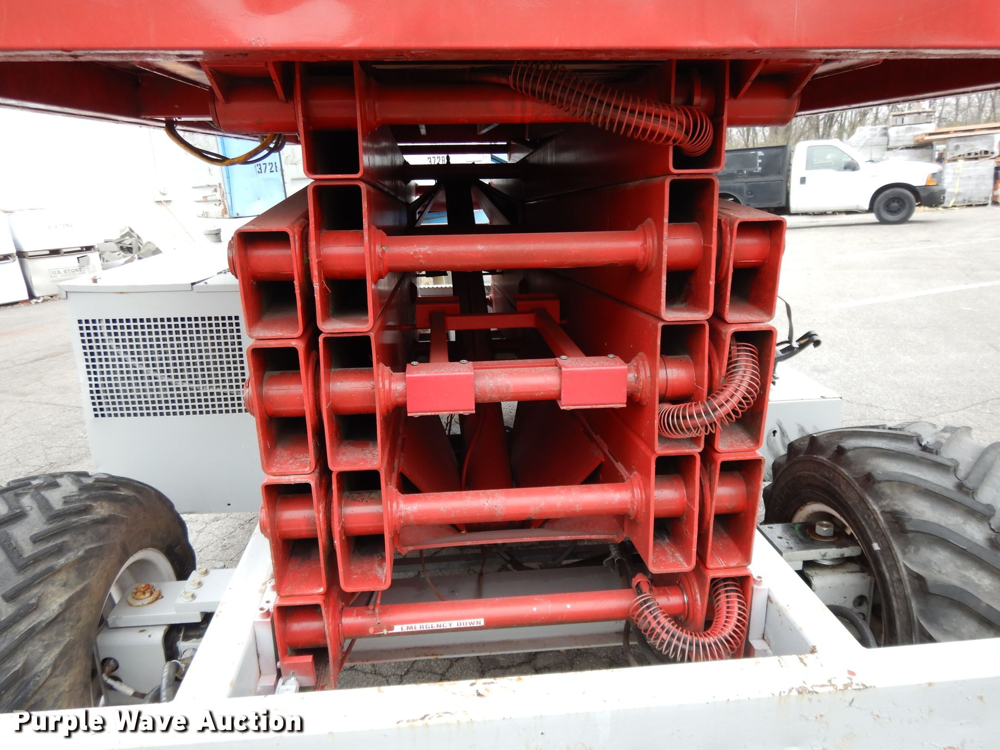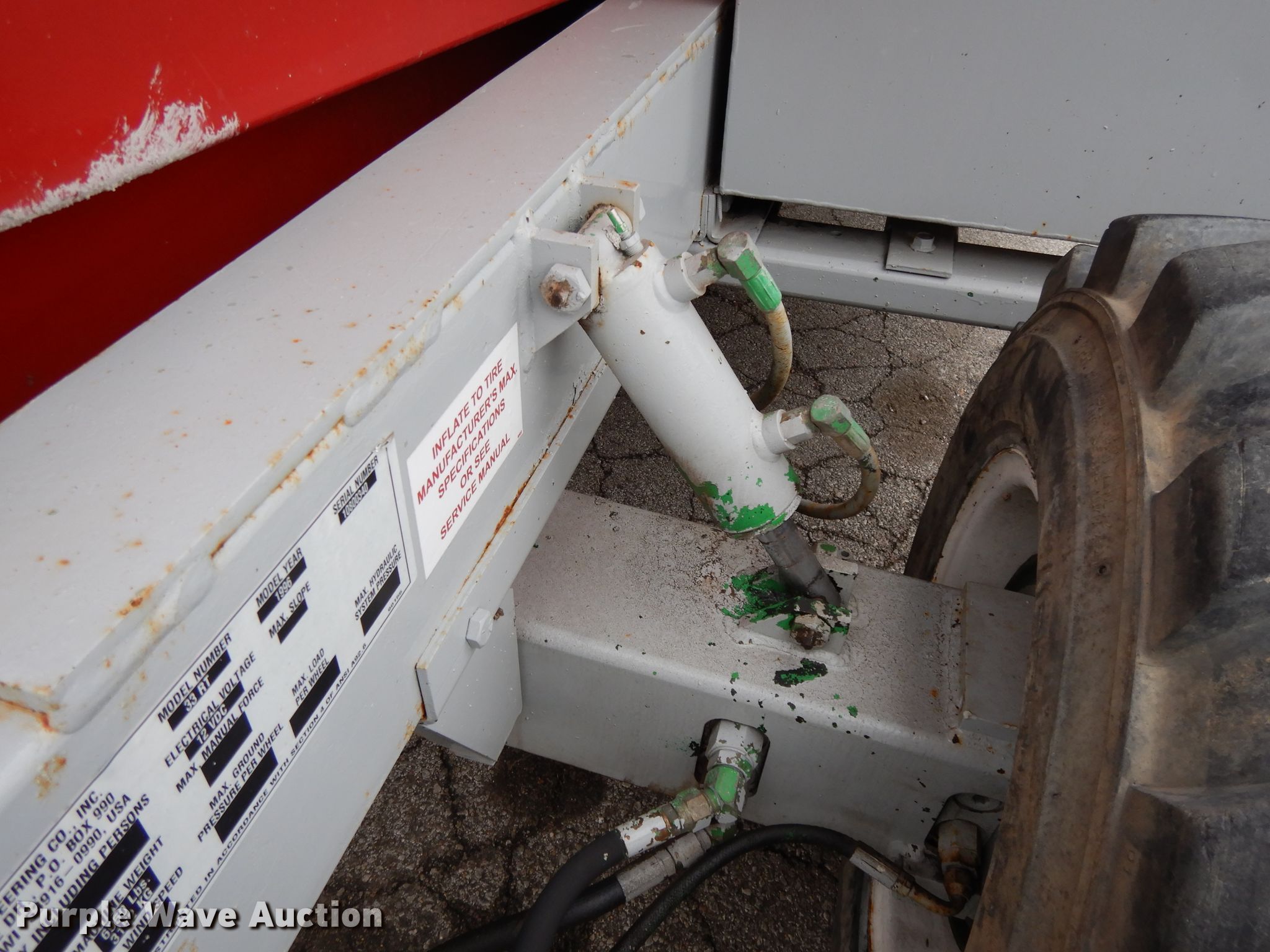 Purple Wave is selling a used Scissor or Vertical Lift in Missouri. This item is a 1996 Mec 33RT scissor lift with the following: 1,713 hours on meter, Serial: 10800340
