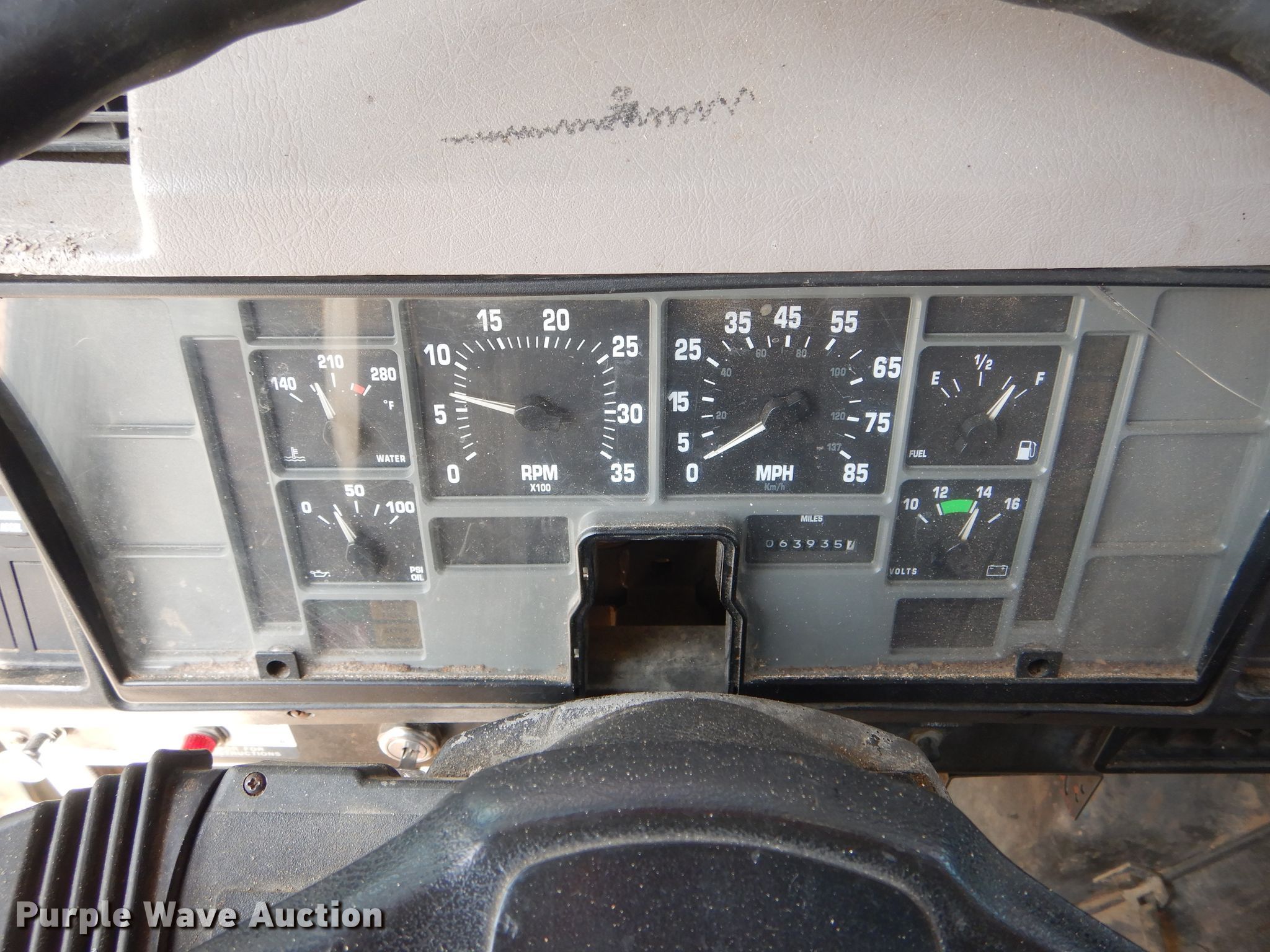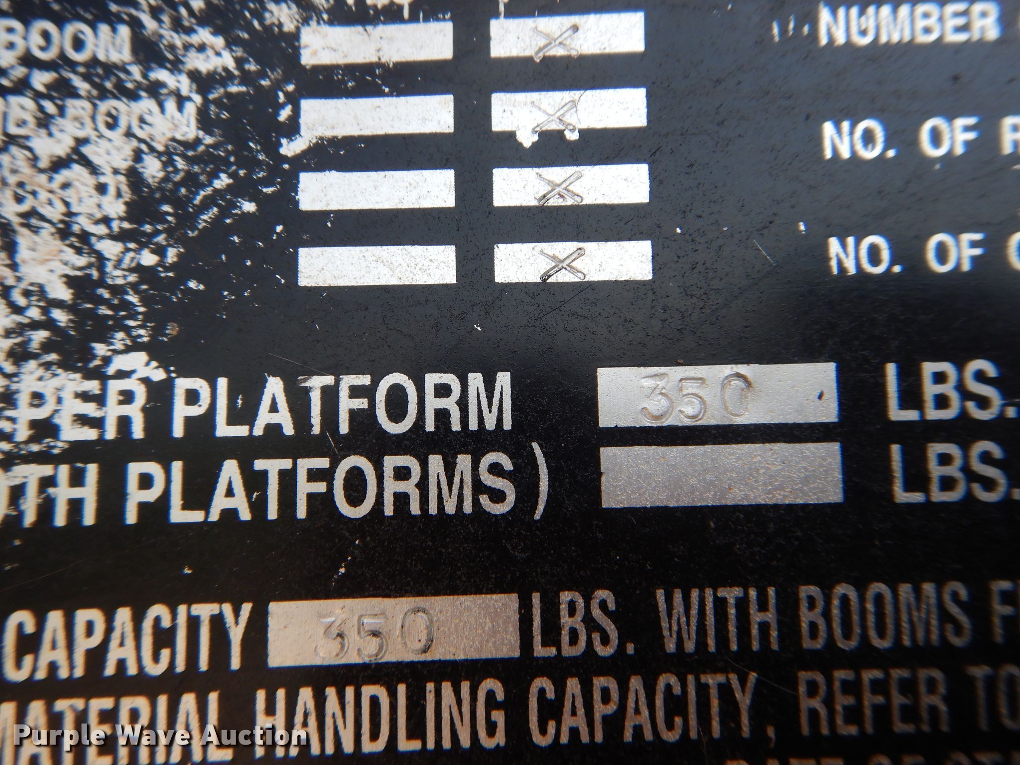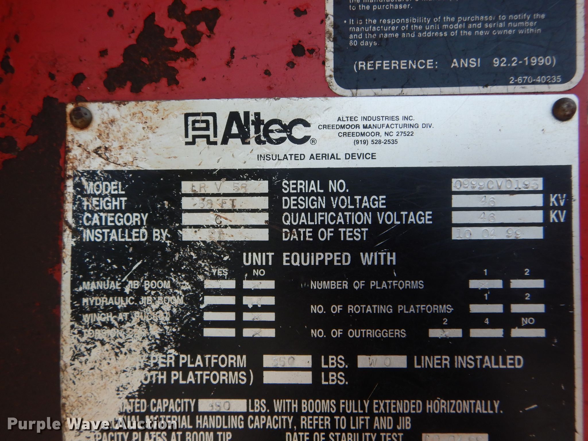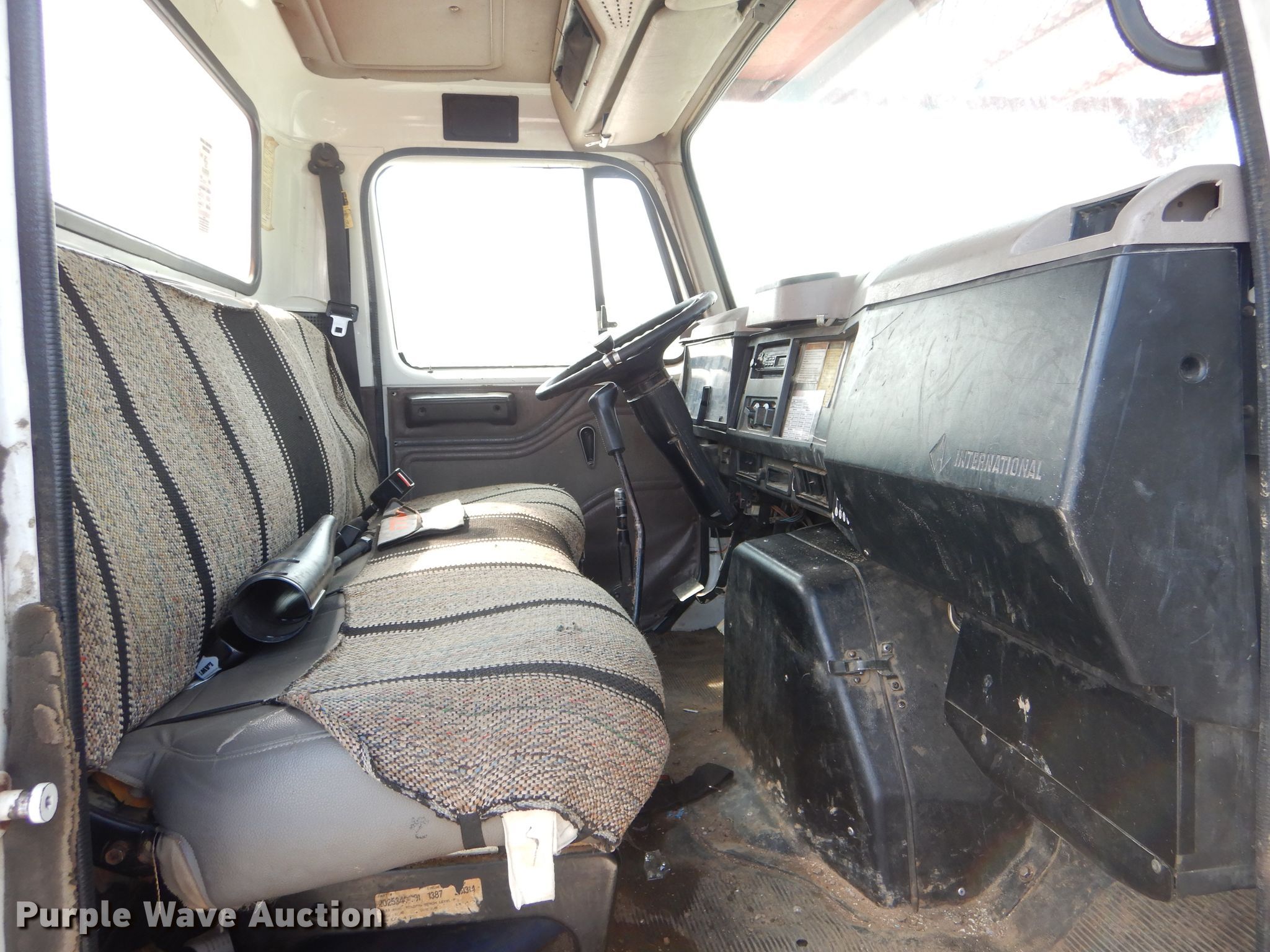 Purple Wave is selling a used Bucket Truck in Missouri. This item is a 2000 International 4700 bucket truck with the following: 63,935 miles on odometer, International DT466E 7.6L L6 diesel engine, Serial 469HM2U1169628, International 6Plus six speed manual transmission, Single axle, Heat, PTO, 14'L utility bed, Altec LRV58 articulating, insulated boom, 350 lbs maximum lift capacity, 58' maximum lift height, Man basket, Platform and ground controls,, Spring suspension, Hydraulic brakes, 188" wheelbase, 10R22.5 front tires, 11R22.5 rear tires, Contents not included, Cylinder leak, Unit# BT19