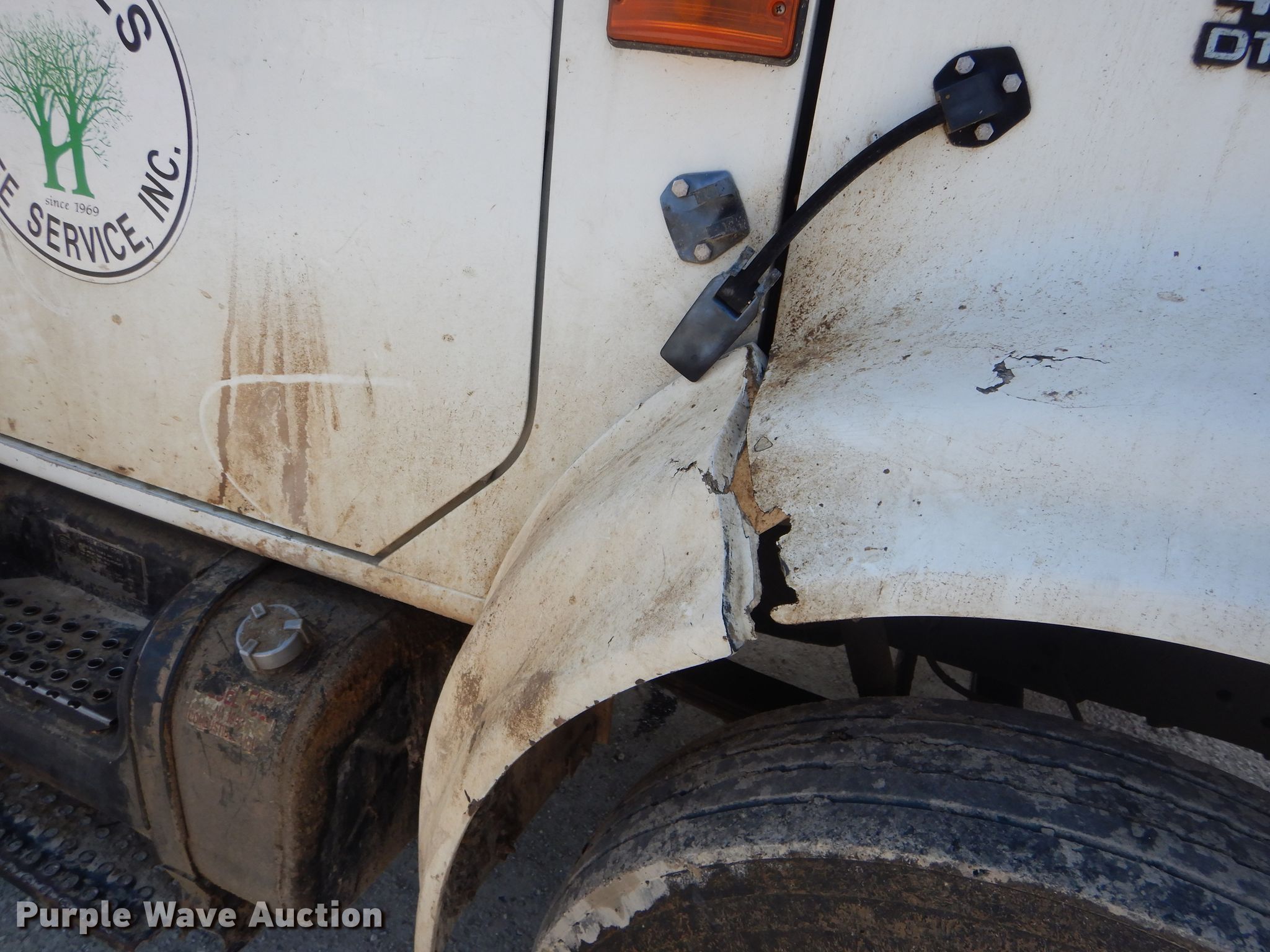 2000 International 4700 bucket truck. 63,935 miles on odometer, International DT466E 7.6L L6 diesel engine Serial 469HM2U1169628, International 6Plus six speed manual transmission, Single axle, Heat, PTO, 14'L utility bed, Altec LRV58 articulating, insulated boom 350 lbs maximum lift capacity, 58' maximum lift height, Man basket Platform and ground controls, Spring suspension, Hydraulic brakes, 188" wheelbase, 10R22.5 front tires, 11R22.5 rear tires, Contents not included, Cylinder leak, Unit# BT19. Missouri title. 1HTSCAAP3YH238488. Hentges Tree Service, Inc.. 5905 Old Lohman Rd. Jefferson City, MO 65109