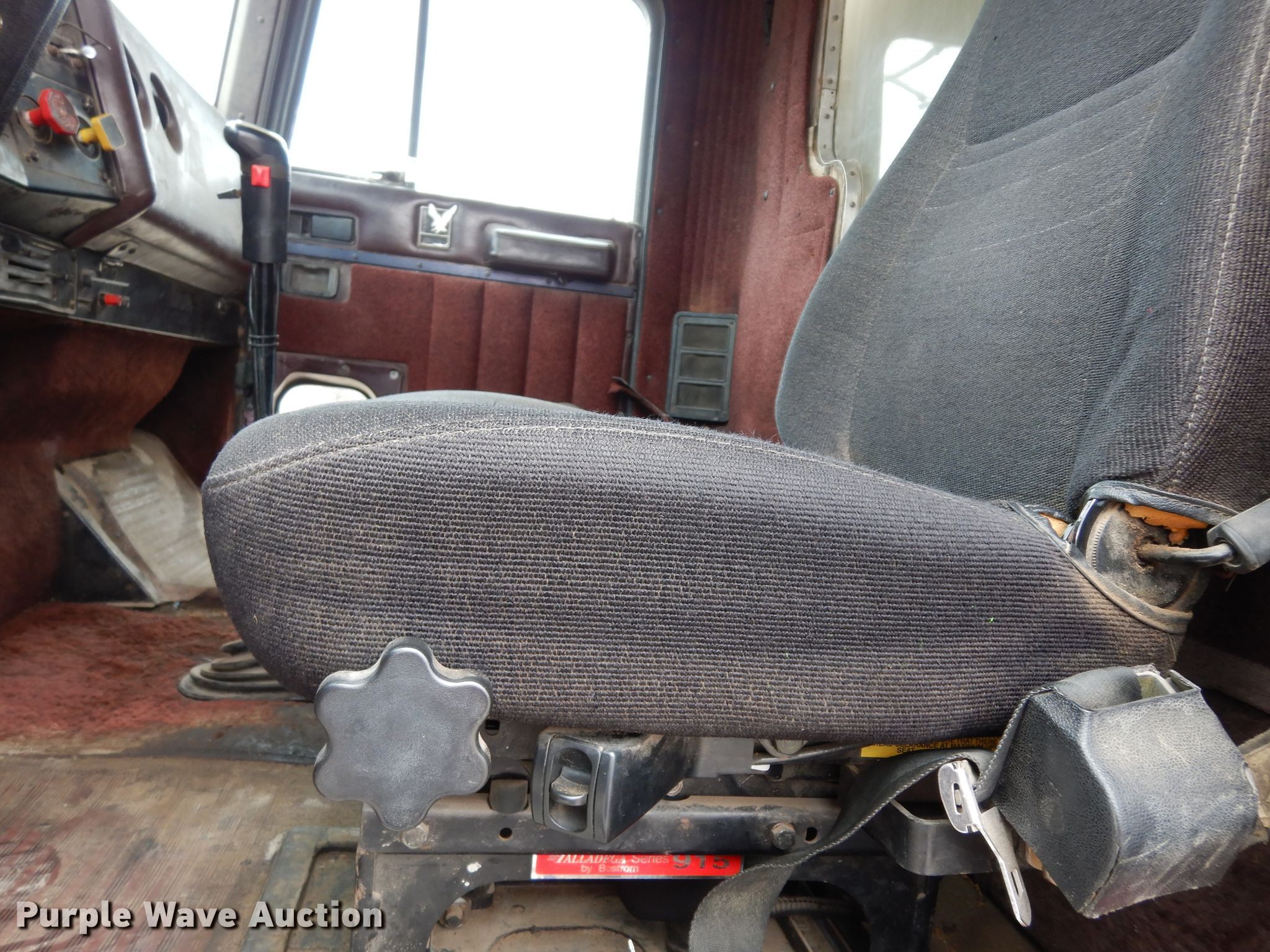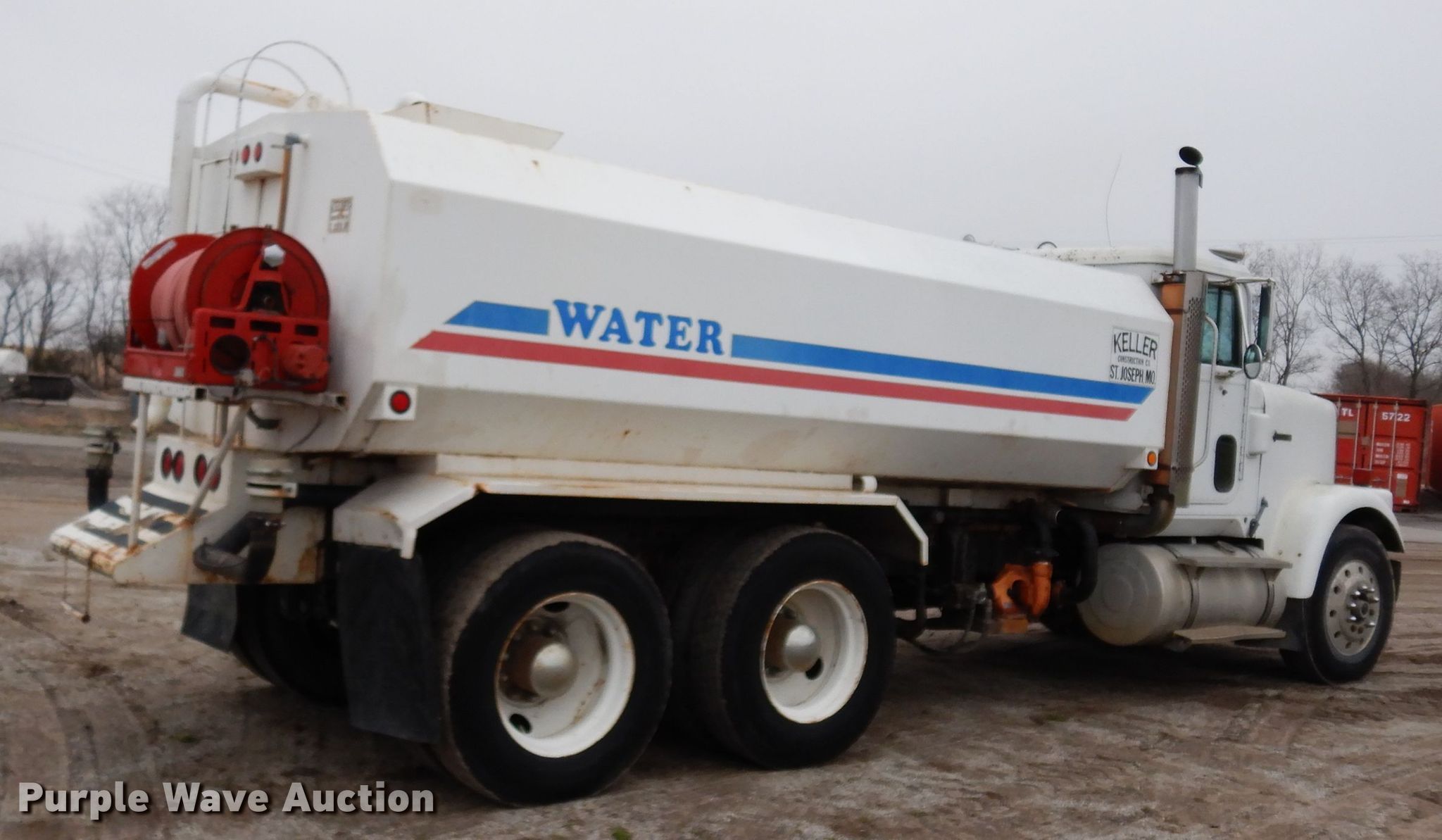 Purple Wave is selling a used Tank Truck or Water Truck in Missouri. This item is a 1987 International 9300 water truck with the following: 402,865 miles on odometer, Cummins six cylinder diesel engine, Eaton Fuller 13 speed manual transmission, Tandem axle, Inter-axle differential lock, AC and heat, Heated mirrors, PTO, 16'L tank, 4,000 gallon capacity, Berkley pump, Front and rear spray bars, Hose reel, Top fill, 224" wheelbase, Walking beam suspension, Air brakes, Engine brake, 11R24.5 tires, Windshield cracked, Rust in tank