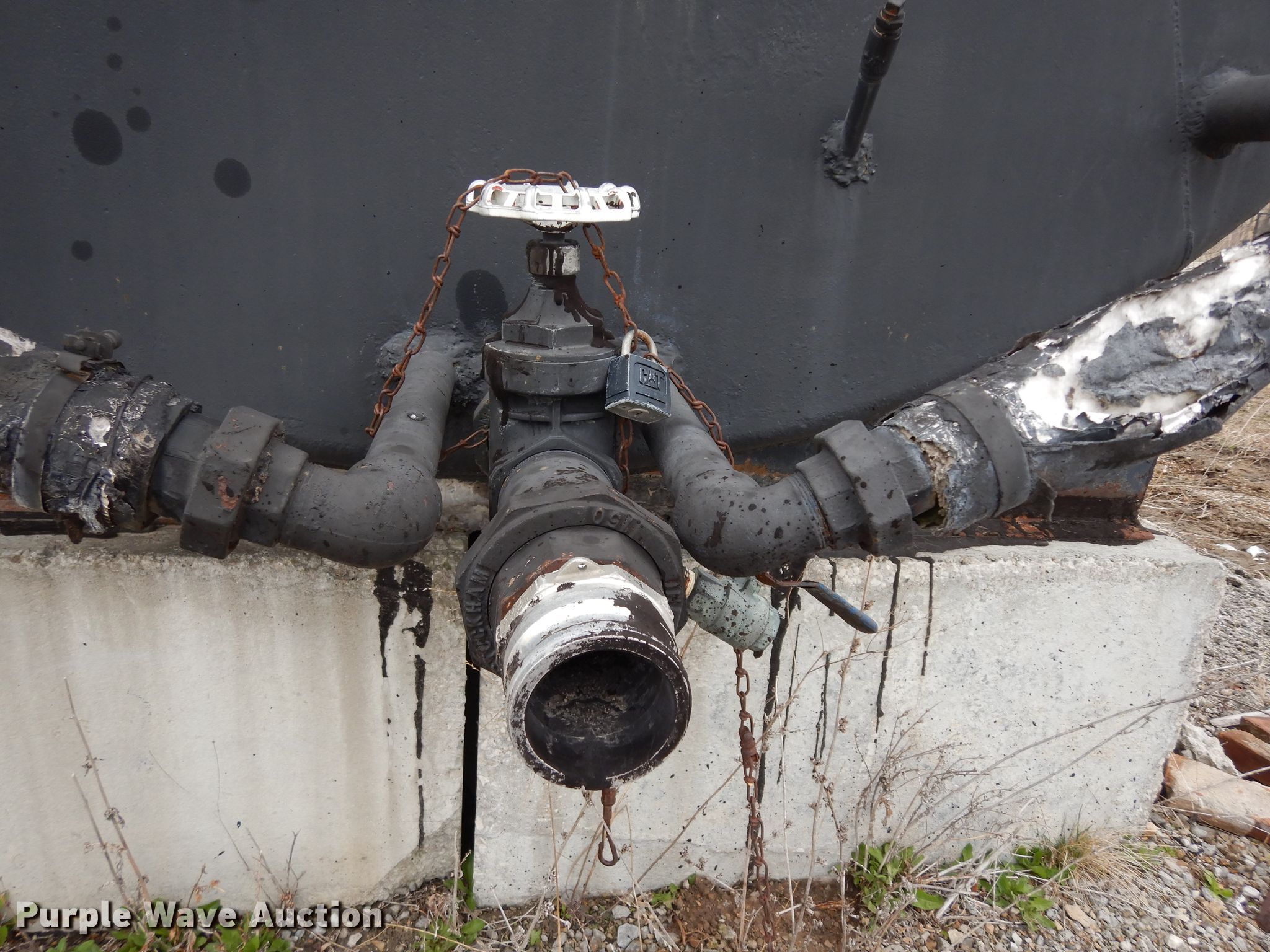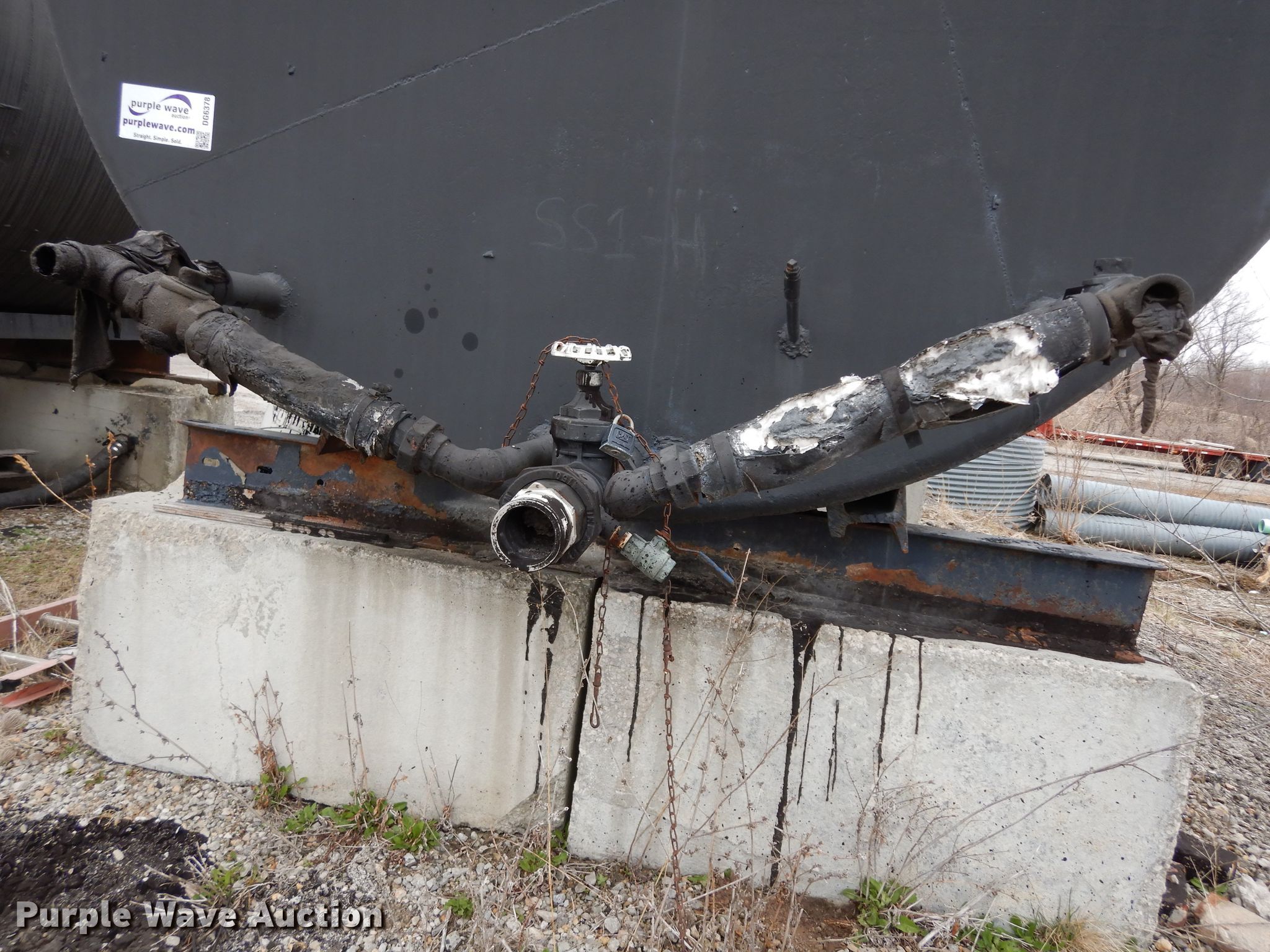 Purple Wave is selling a used Fuel and Lube in Missouri. This item is a Asphalt oil tank with the following: 16'L x 8' diameter, Approximately 6,000 gallon capacity, Coiled for heat, Front and rear outlets, Under side steel braces included, Concrete blocks not included