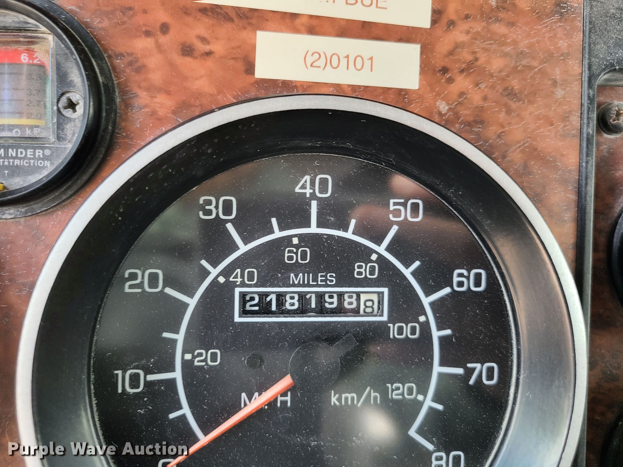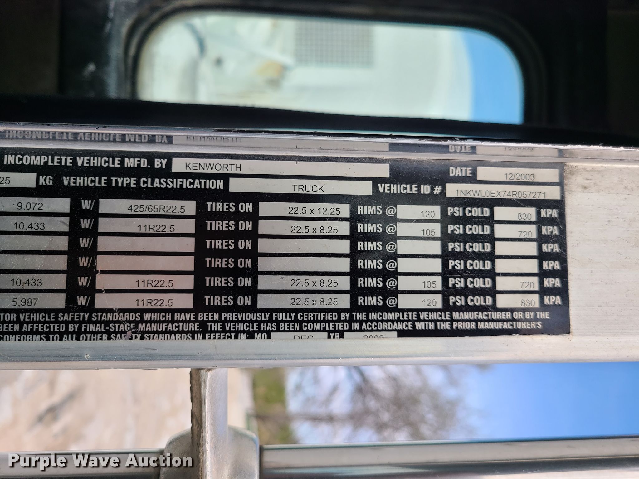 2004 Kenworth W900B ready mix truck. 218,198 miles on odometer, Cummins ISM 10.8L L6 diesel engine, Manual transmission, Triple axle, AC and heat, PTO, McNeilus ready mix bed 11 cu.yd. capacity, In cab controls, Rear drum controls, Rear discharge, 150 gallon water tank, (3) chute extensions, Serial 6829721757, Walking beam suspension, Air brakes, 425/65R22.5 front tires, 255/70R22.5 lift axle tires, 11R22.5 rear tires, GVWR 79,200 lbs, Unit# 210. Kansas title. 1NKWL0EX74R057271. Kincaid Ready Mix. 4800 Bannister Rd. Kansas City, MO 64137