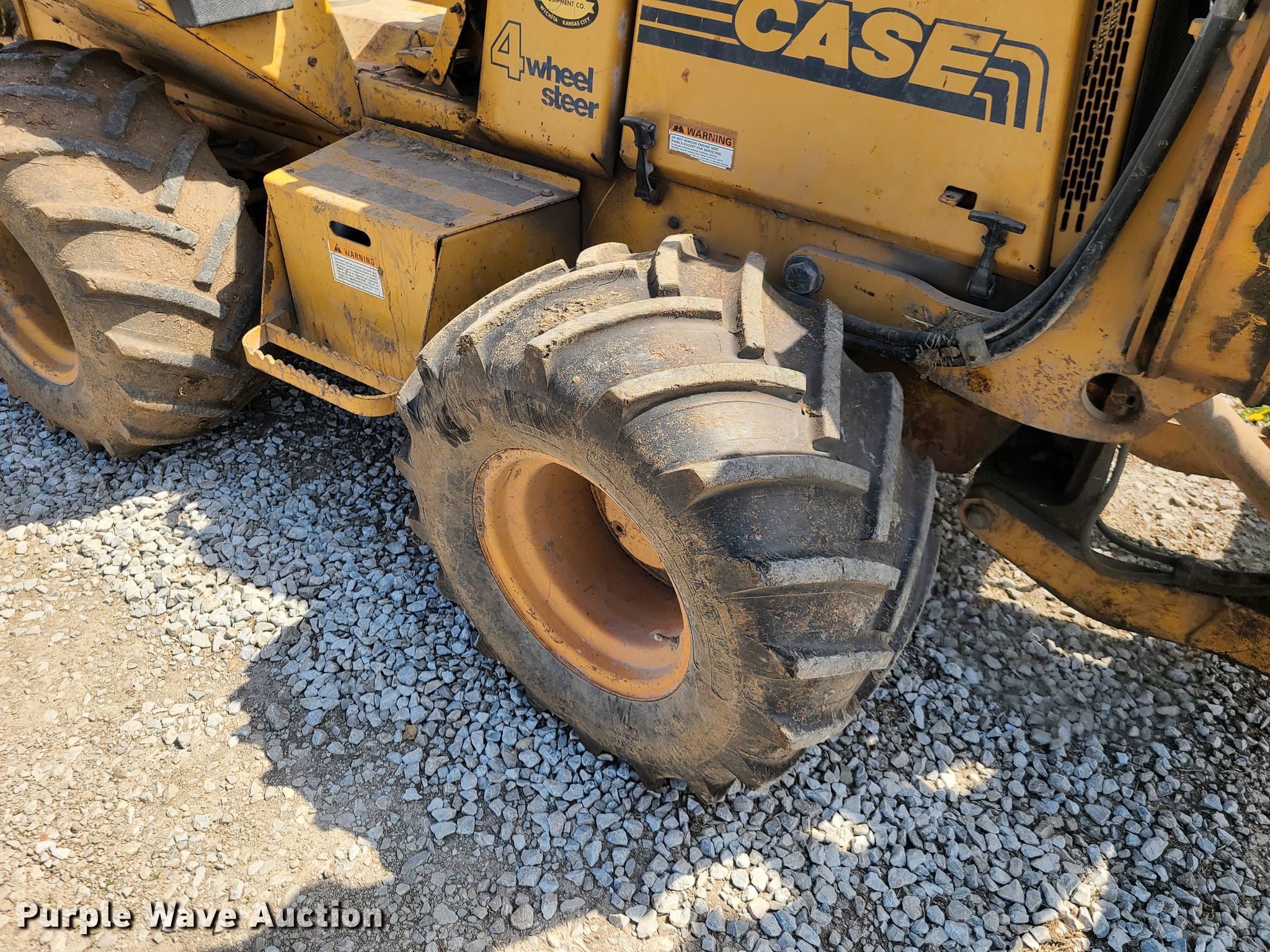 Purple Wave is selling a used Trencher or Rock Saw in Missouri. This item is a Case 560 trencher with the following: 3,323 hours on meter, Four cylinder diesel engine, Hydrostatic transmission, Four wheel drive, Four way backfill blade, 60"L trencher boom, 6" cutting width, Dirt teeth, Manual crumber, Serial JAF0178431, Backhoe model D125, 18"W bucket, Serial JAF0166273, 31 x 15.50 x 15 tires