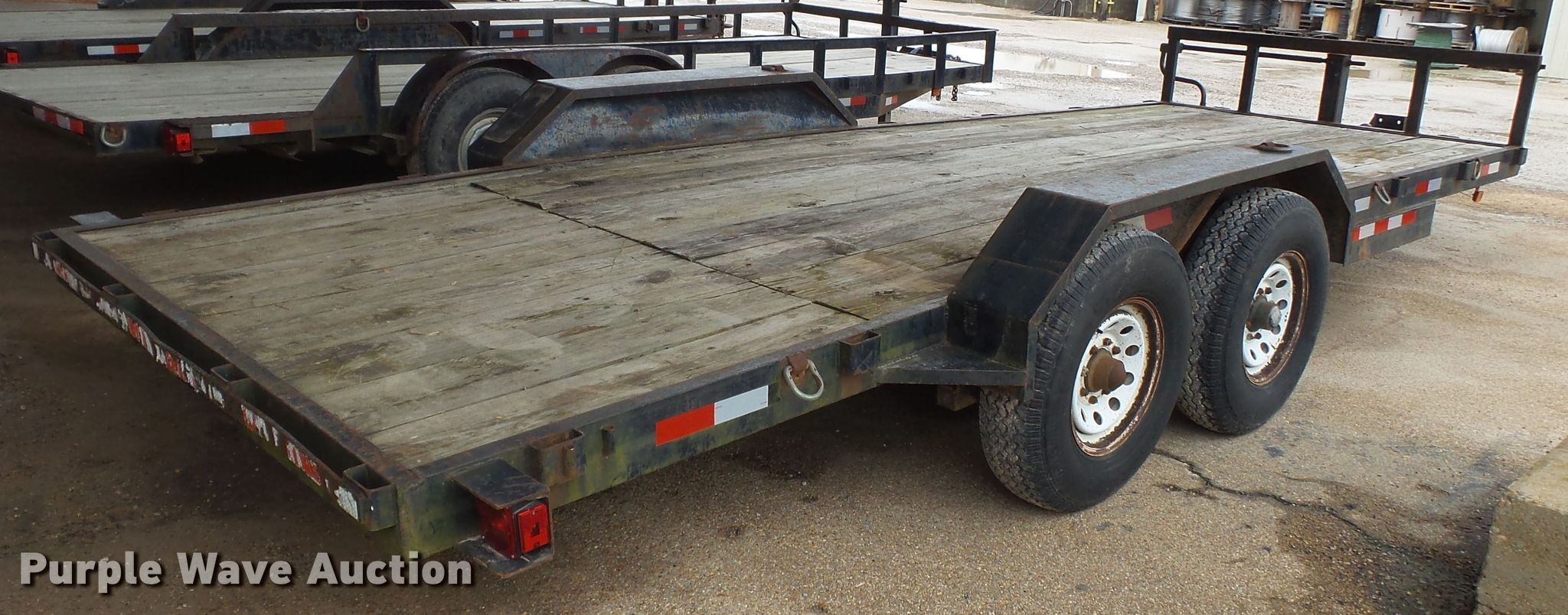 Purple Wave is selling a used Car or Utility Trailer in Missouri. This item is a 2001 R&W utility trailer with the following: 24'L x 102"W overall, 20'L x 84"W wood deck, 27" floor height, Single leg landing gear, Spring suspension, Electric brakes, Tandem axle, Steel wheels, LT235/85R16 tires, GVWR 14,000 lbs, Unit# 98-25
