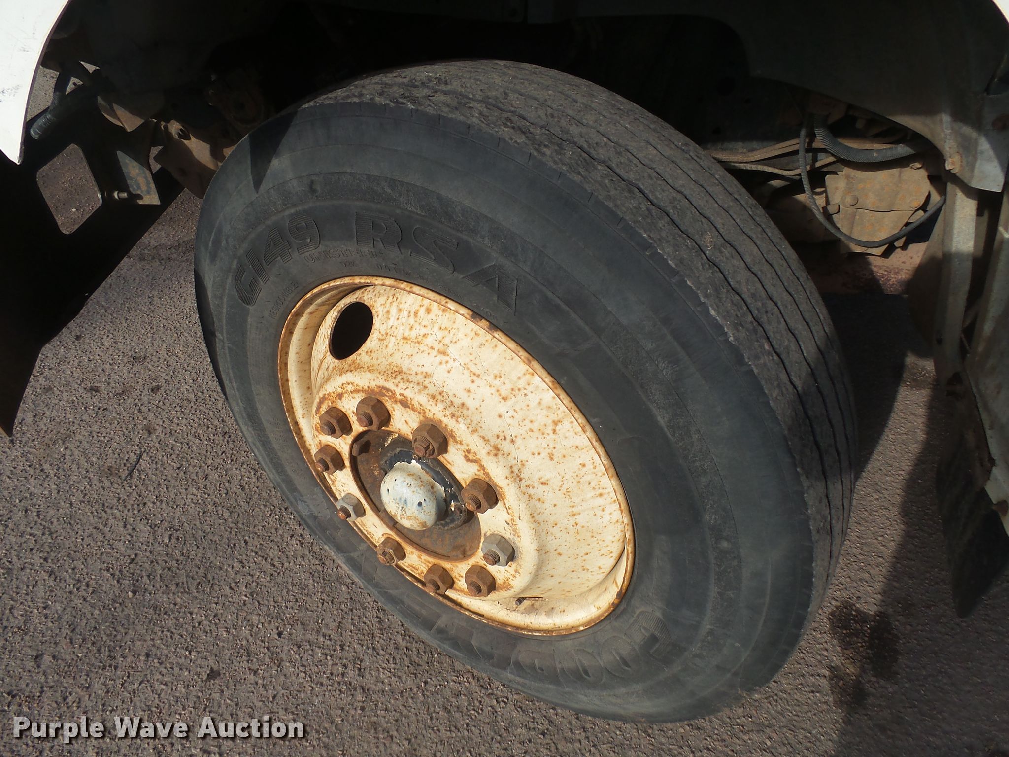 1998 Ford F700 chipper bed truck. 158,214 miles on odometer, Ford 7.0L V8 diesel engine, Automatic transmission, Single axle, Heat, PTO, 14'L steel chipper bed 32" side height, 38" side board height, Single ram hoist, Spring suspension, Hydraulic brakes, 10R22.5 tires, GVWR 26,000 lbs, FAWR 8,500 lbs, RAWR 17,500 lbs, Windshield cracked. South Dakota title. Title distribution may be delayed up to 14 days from verification of funds. 1FDNF70J2WVA00711. 909 S 9th Ave. Sioux Falls, SD 57104