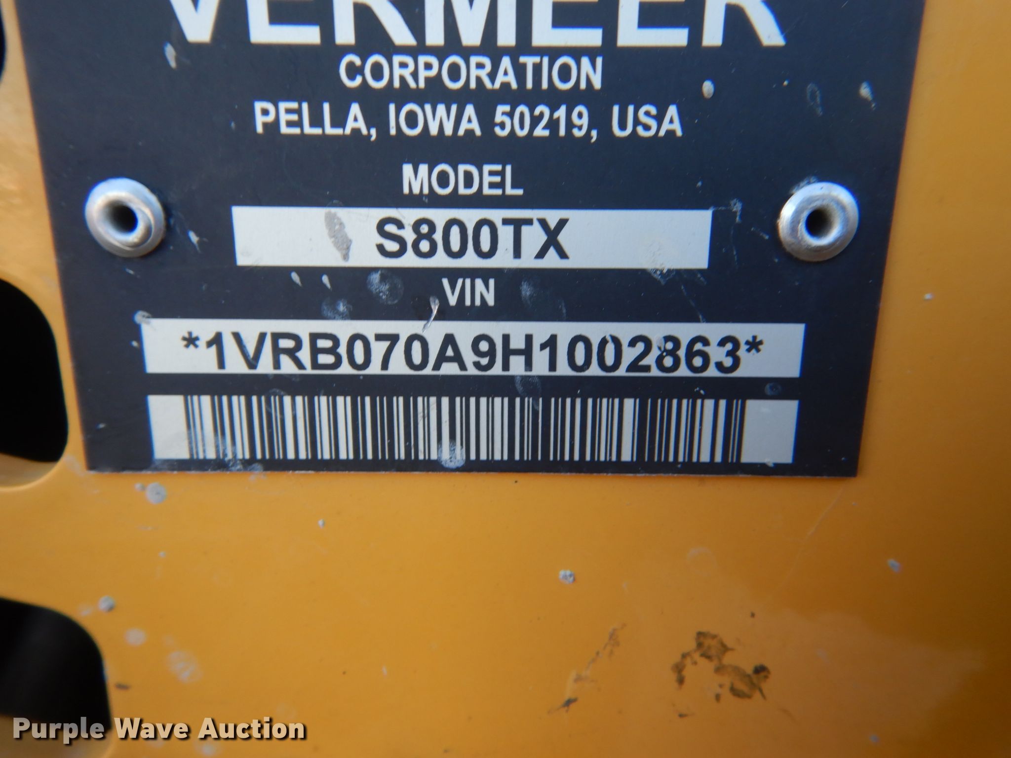 Purple Wave is selling a used Compact Utility Loader in Iowa. This item is a 2017 Vermeer S800TX compact utility loader with the following: 482 hours on meter, Serial: 1VRB070A9H1002863