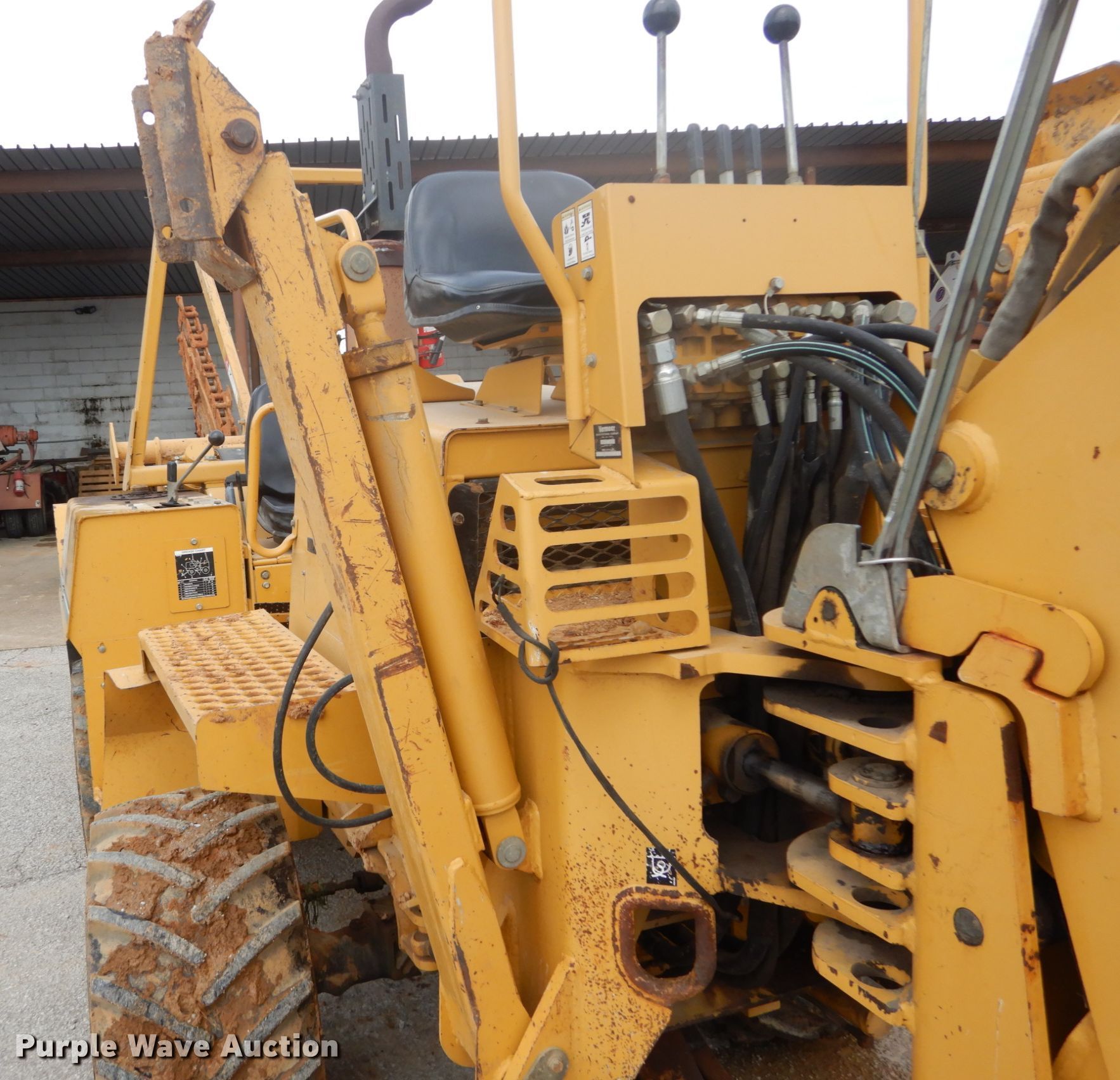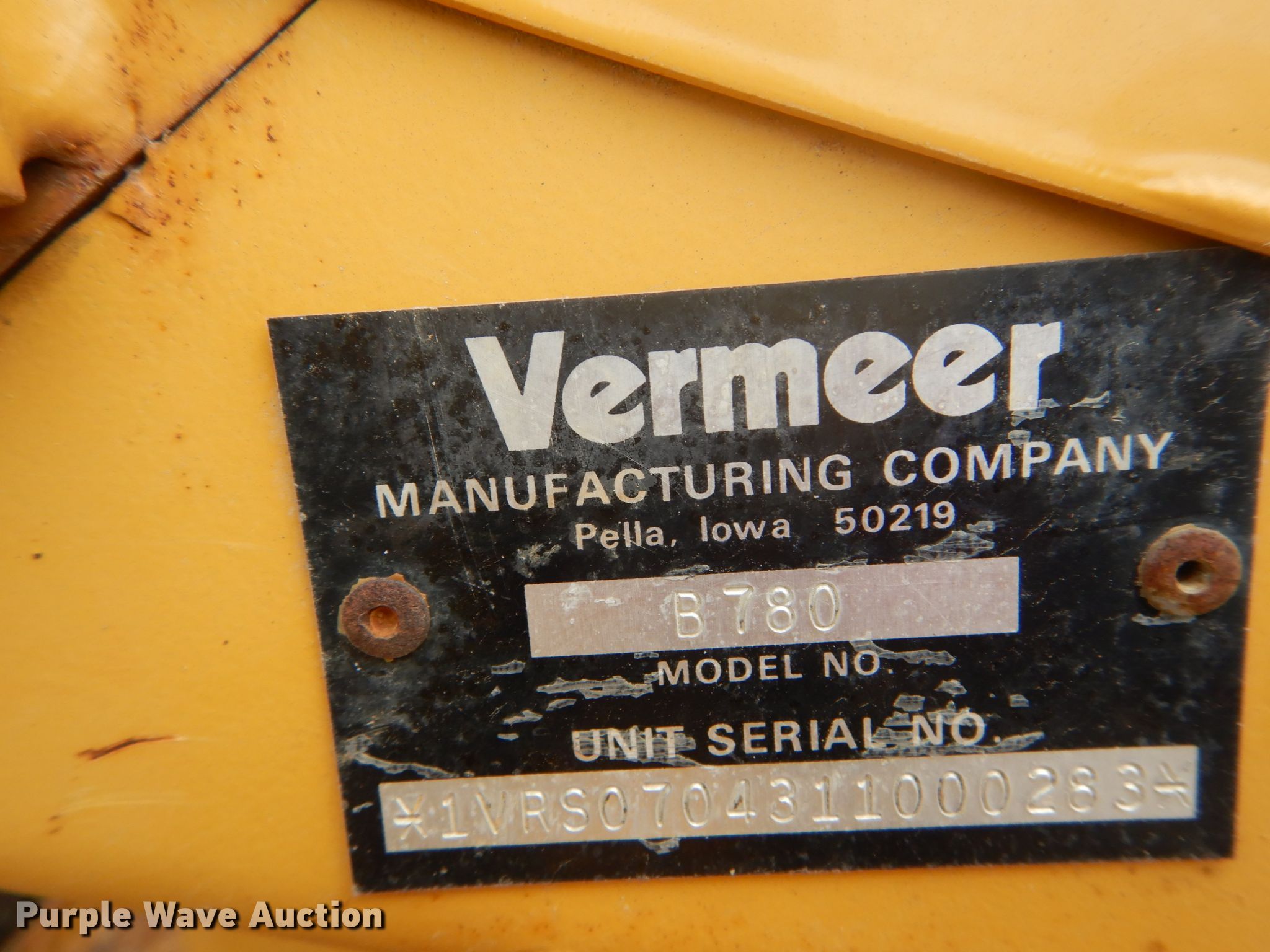 Purple Wave is selling a used Trencher or Rock Saw in Tennessee. This item is a 2001 Vermeer V5800 trencher with the following: 1,477 hours on meter, Cummins 4B four cylinder diesel engine, 60 HP, Manual transmission, 4F-4R gears, Four wheel drive, OROPS, Six-way backfill blade, Trencher model TTR5800, 60" trencher boom length, 3" cutting width, Dirt teeth, Serial 1VRP070E811000200, Backhoe model B780, 18"W bucket, Serial 1VRS0704311000283, 31 x 15.5-15 tires, Hydraulics weak, Serial 1VRM092W911000646