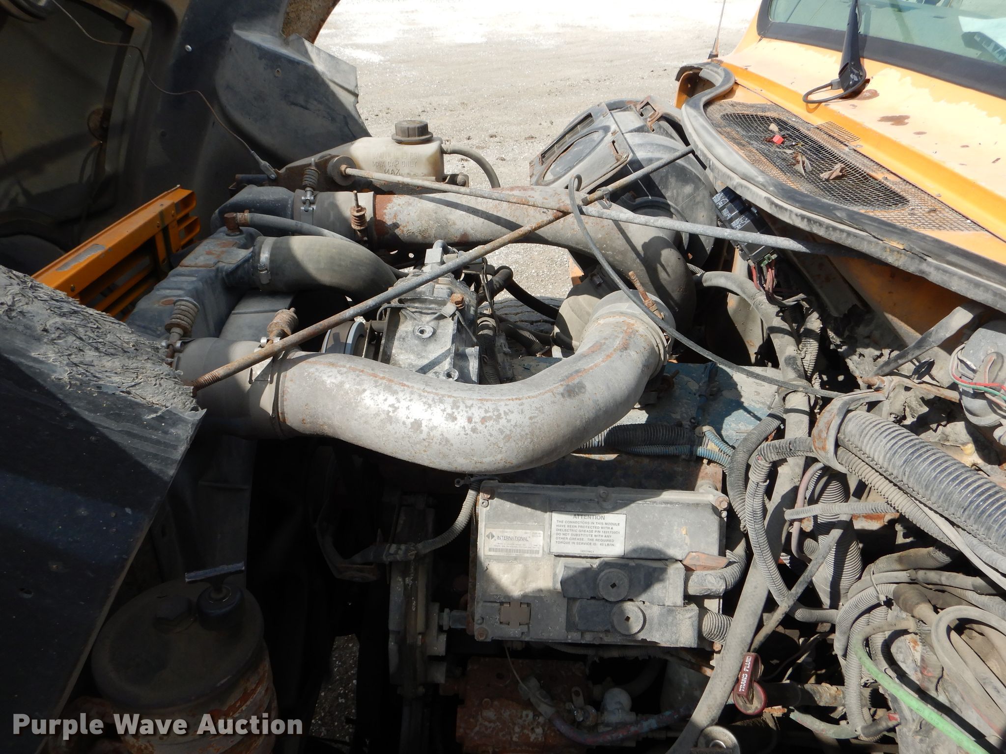 Purple Wave is selling a used Construction Dump Truck in Missouri. This item is a 2002 International 4900 dump truck with the following: 182,192 miles on odometer, 11,386 hours on meter, International DT466 7.6L L6 diesel engine, Automatic transmission, Single axle, AC and heat, Cruise, Power windows, Heated mirrors, PTO, 10'L x 96"W steel dump bed, 29" side height, Single ram hoist, Air operated end gate, Unattached end gate included,, Monroe MV-120-78-50-MO spreader, 144"W plow, 96"W wing plow, Spring suspension, Air brakes, 172" wheelbase, 315/80R22.5 front tires, 11R22.5 rear tires, MODOT ID 6864
