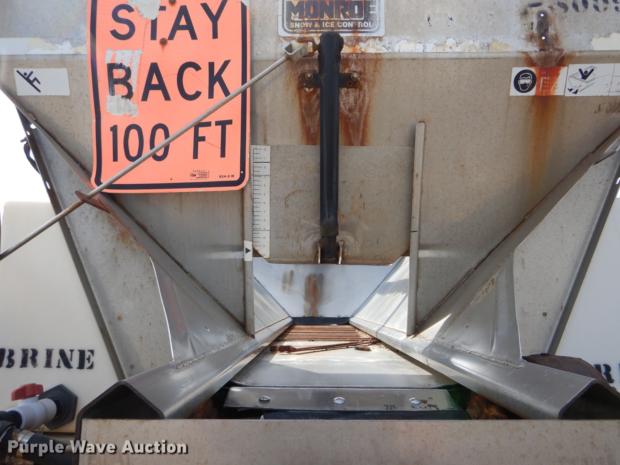 2002 International 4900 dump truck. 182,192 miles on odometer, 11,386 hours on meter, International DT466 7.6L L6 diesel engine, Automatic transmission, Single axle, AC and heat, Cruise, Power windows, Heated mirrors, PTO, 10'L x 96"W steel dump bed 29" side height, Single ram hoist, Air operated end gate Unattached end gate included, Monroe MV-120-78-50-MO spreader, 144"W plow, 96"W wing plow, Spring suspension, Air brakes, 172" wheelbase, 315/80R22.5 front tires, 11R22.5 rear tires, MODOT ID 6864. Missouri title. 1HTSDAAR92H523945. Missouri Department of Transportation (MODOT). 26826 US Hwy 63. Macon, MO 63552