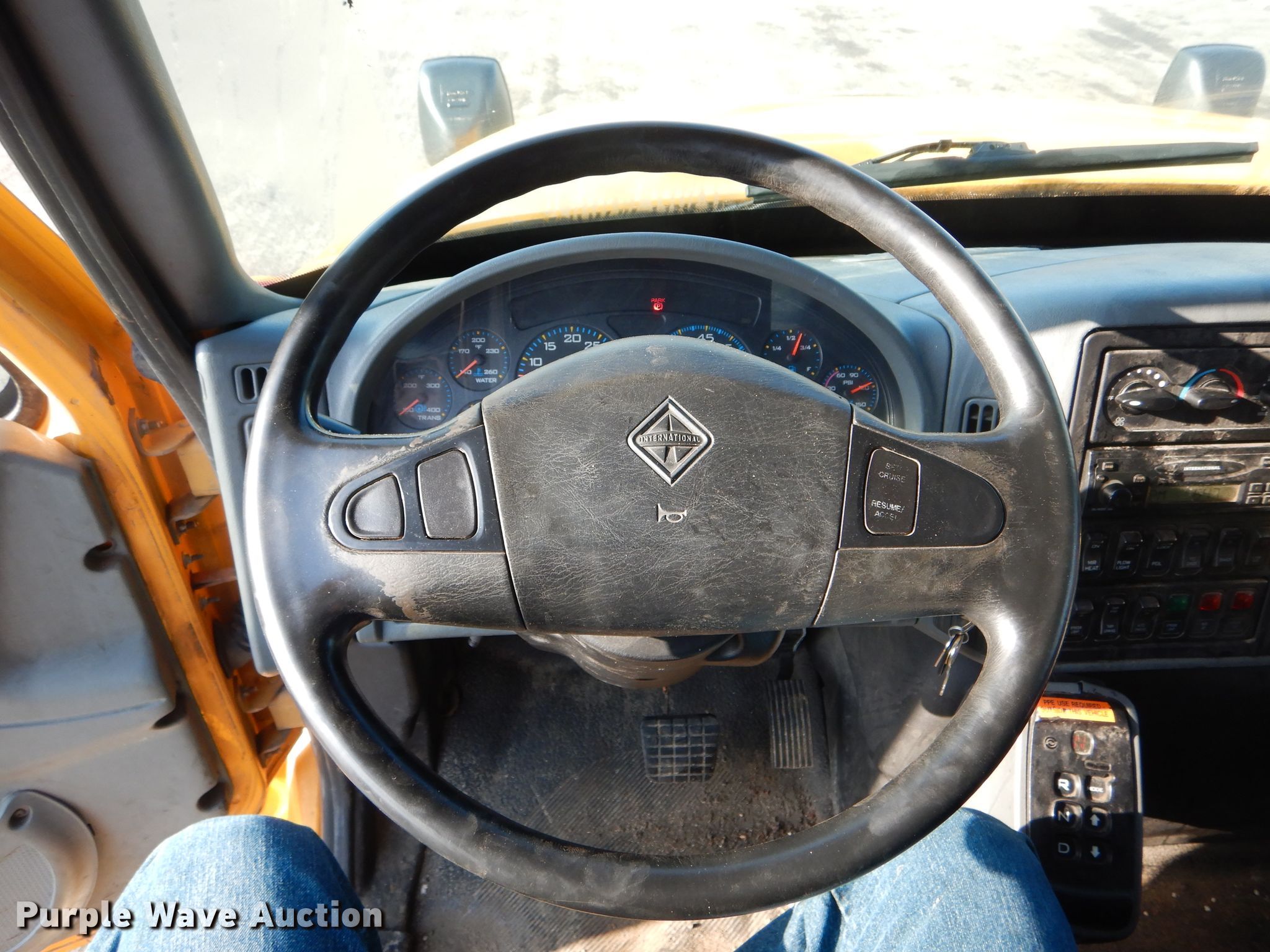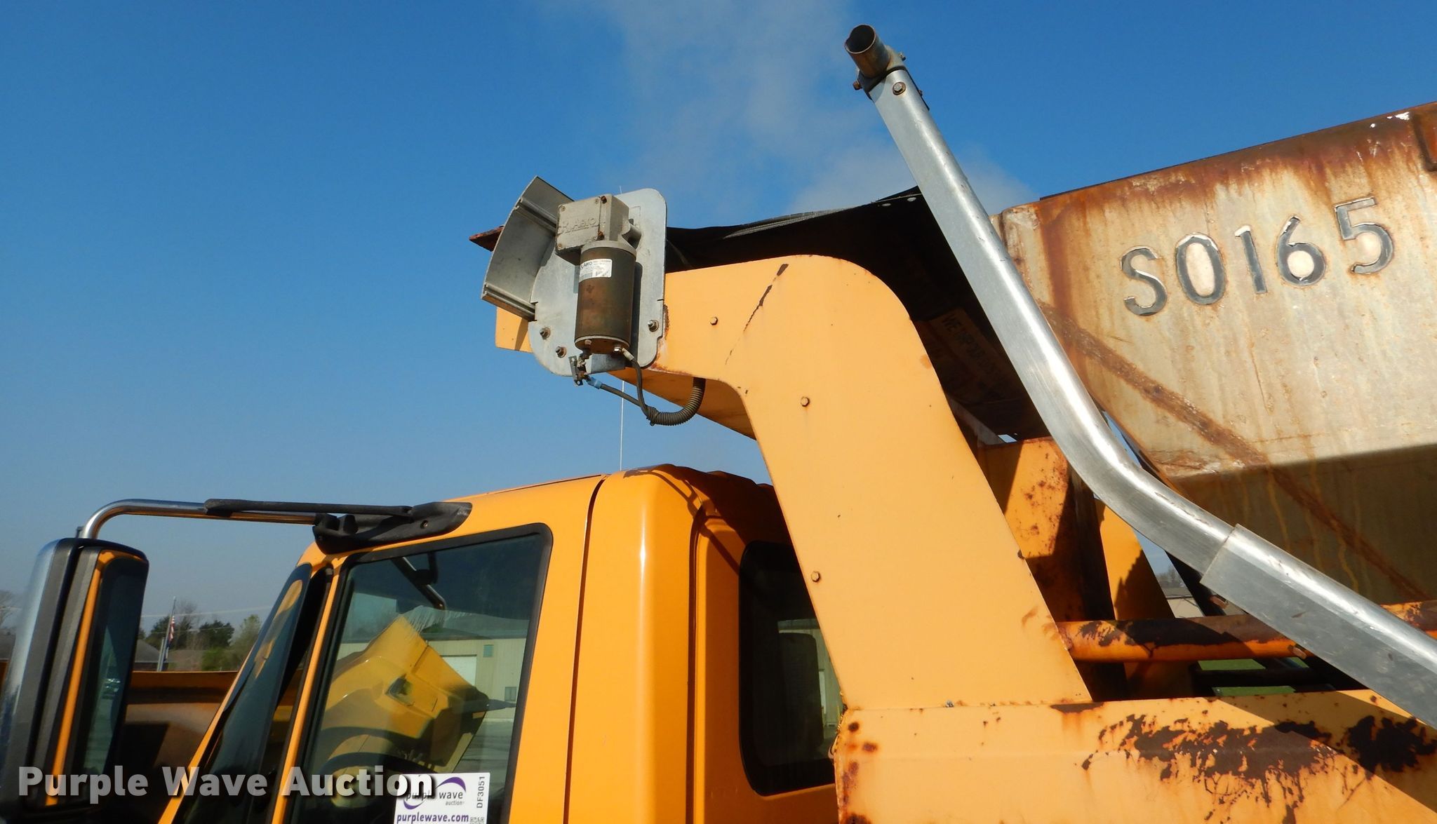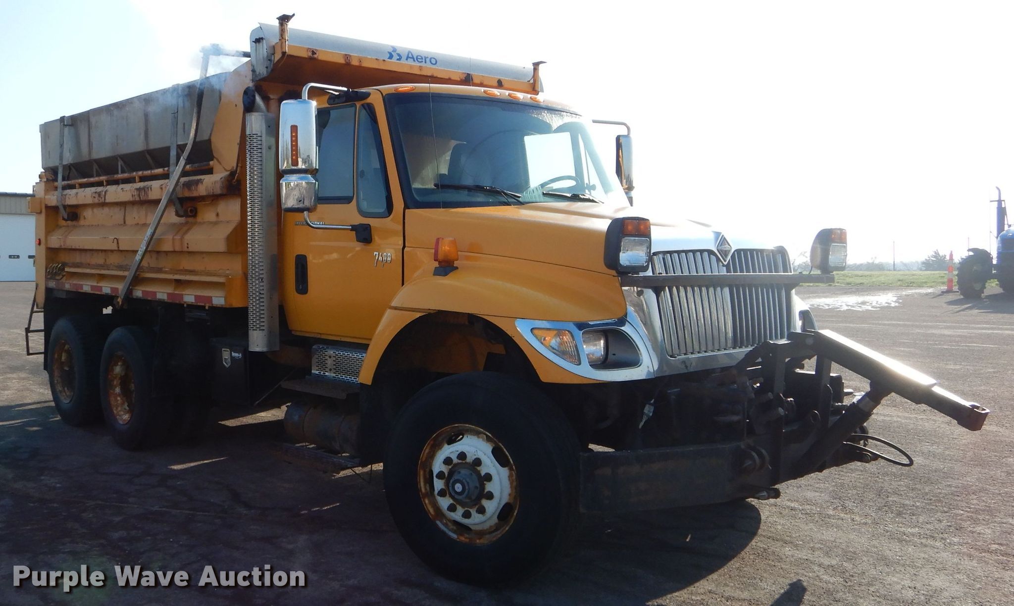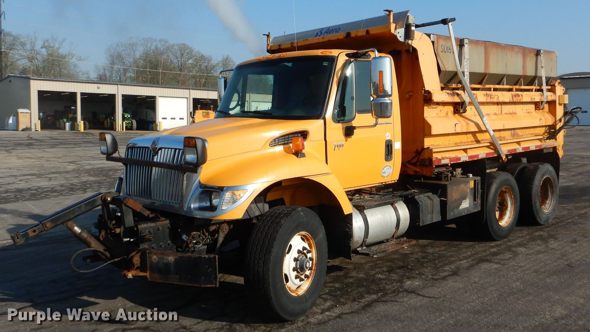 Purple Wave is selling a used Construction Dump Truck in Missouri. This item is a 2006 International 7400 dump truck with the following: 154,373 miles on odometer, 9.3L L6 diesel engine, Automatic transmission, Inter-axle differential lock, Tandem axle, AC and heat, Cruise, Power windows, Heated mirrors, Front mounted PTO, Wheeler HT1330 steel dump bed, 13'L x 96"W, 36" side height, Single ram hoist, Air operated end gate, Flink 8611-12.5MO01 spreader, 192" wheelbase, Spring over walking beam suspension, Air brakes, 315/80R22.5 front tires, 11R22.5 rear tires, GVWR 56,000 lbs, FAWR 16,000 lbs, IAWR 20,000 lbs, RAWR 20,000 lbs, Non-operational EGR, Non-operational bed hoist, will not raise, Driver's door intermittently locks itself, MODOT ID 7527