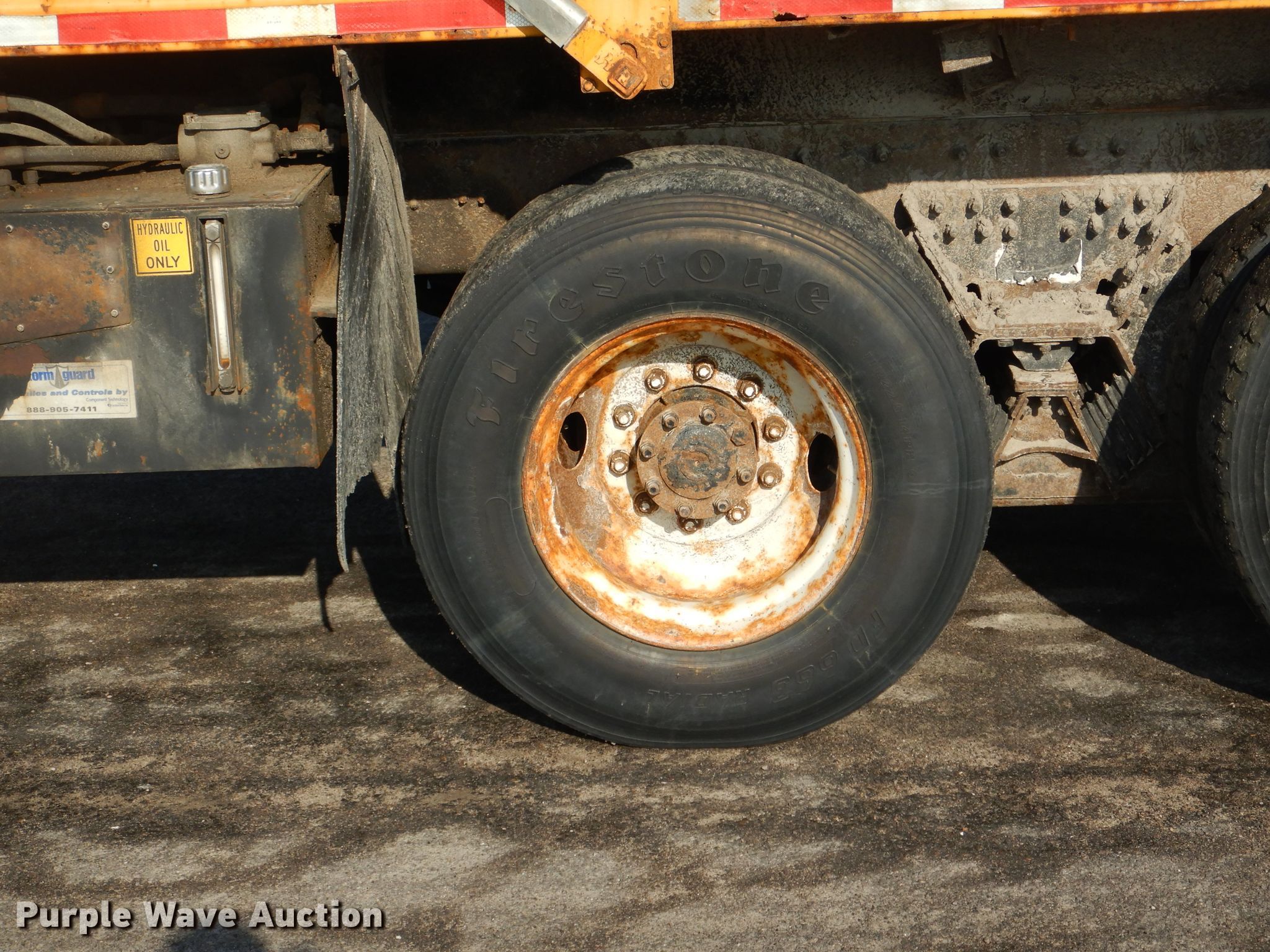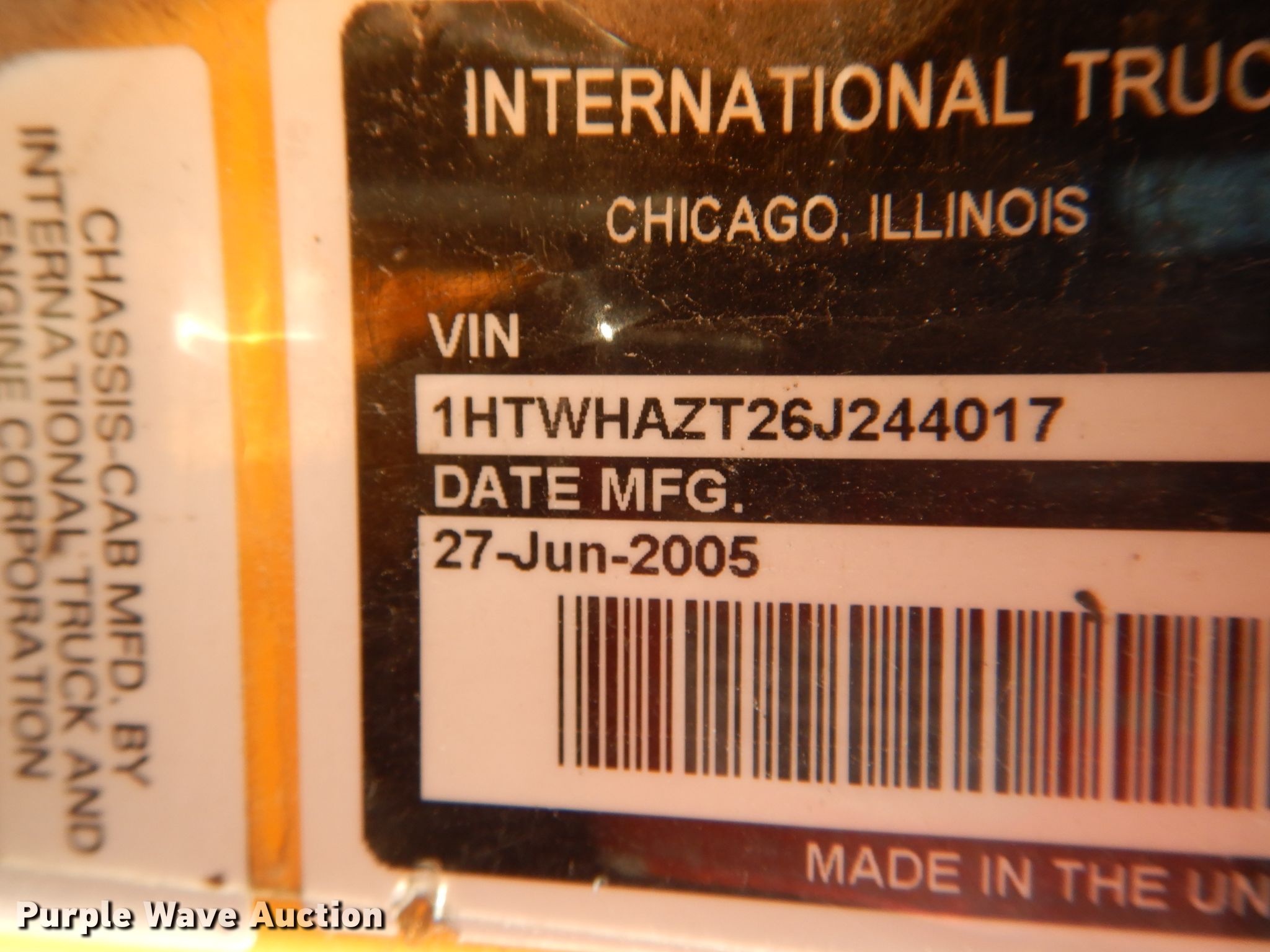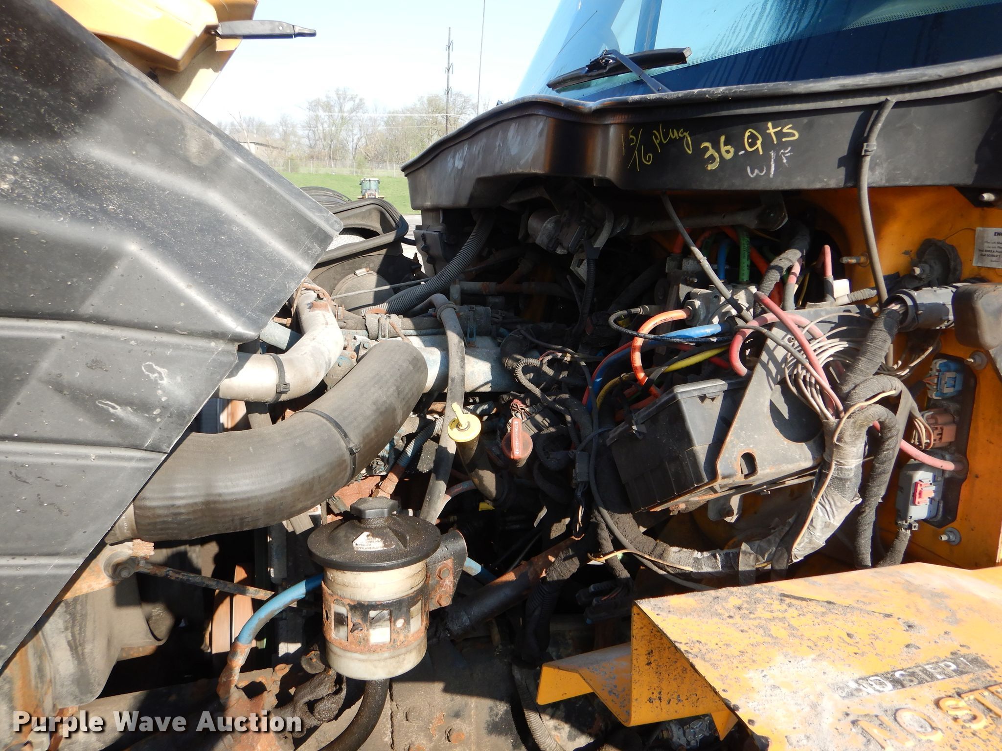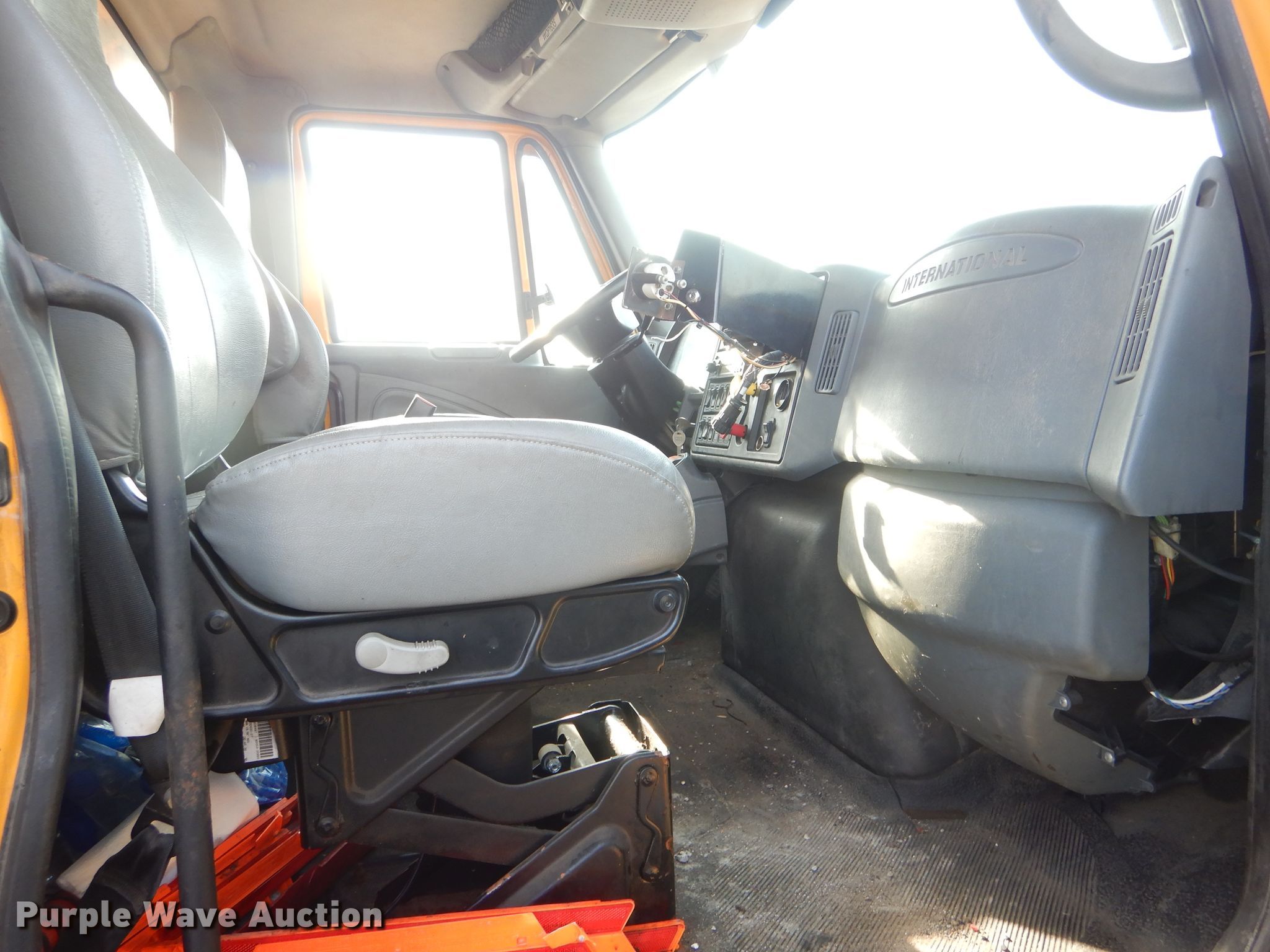 Purple Wave is selling a used Construction Dump Truck in Missouri. This item is a 2006 International 7400 dump truck with the following: 154,373 miles on odometer, 9.3L L6 diesel engine, Automatic transmission, Inter-axle differential lock, Tandem axle, AC and heat, Cruise, Power windows, Heated mirrors, Front mounted PTO, Wheeler HT1330 steel dump bed, 13'L x 96"W, 36" side height, Single ram hoist, Air operated end gate, Flink 8611-12.5MO01 spreader, 192" wheelbase, Spring over walking beam suspension, Air brakes, 315/80R22.5 front tires, 11R22.5 rear tires, GVWR 56,000 lbs, FAWR 16,000 lbs, IAWR 20,000 lbs, RAWR 20,000 lbs, Non-operational EGR, Non-operational bed hoist, will not raise, Driver's door intermittently locks itself, MODOT ID 7527