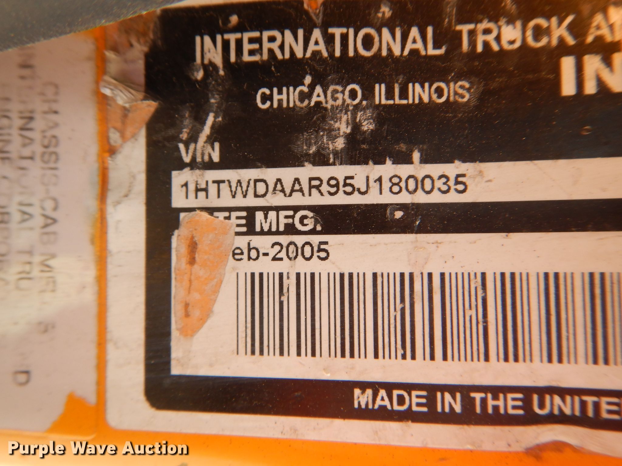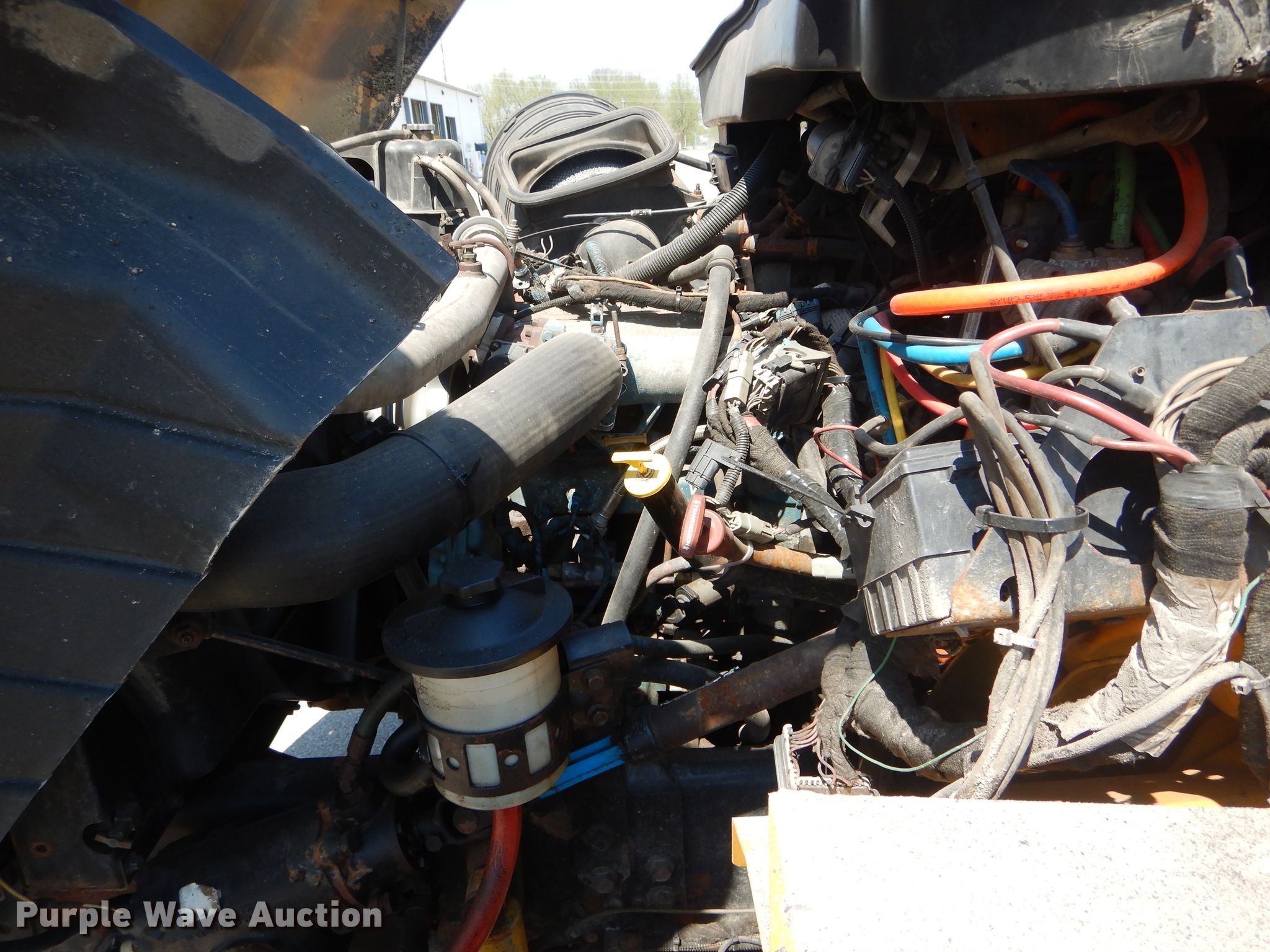 Purple Wave is selling a used Construction Dump Truck in Missouri. This item is a 2005 International 7400 Crew Cab dump truck with the following: 201,387 miles on odometer, 14,062 hours on meter, International DT466 7.6L L6 diesel engine, Automatic transmission, Single axle, AC and heat, Cruise, Power windows, Heated mirrors, Front mounted PTO, Wheeler HT1024 steel dump bed, 10'L x 96"W, 25" side height, Single ram hoist, Air operated end gate, Spring suspension, Air brakes, 215" wheelbase, 315/80R22.5 front tires, 11R22.5 rear tires, GVWR 35,000 lbs, FAWR 14,000 lbs, RAWR 21,000 lbs, Non-operational dump bed, MODOT ID 7616