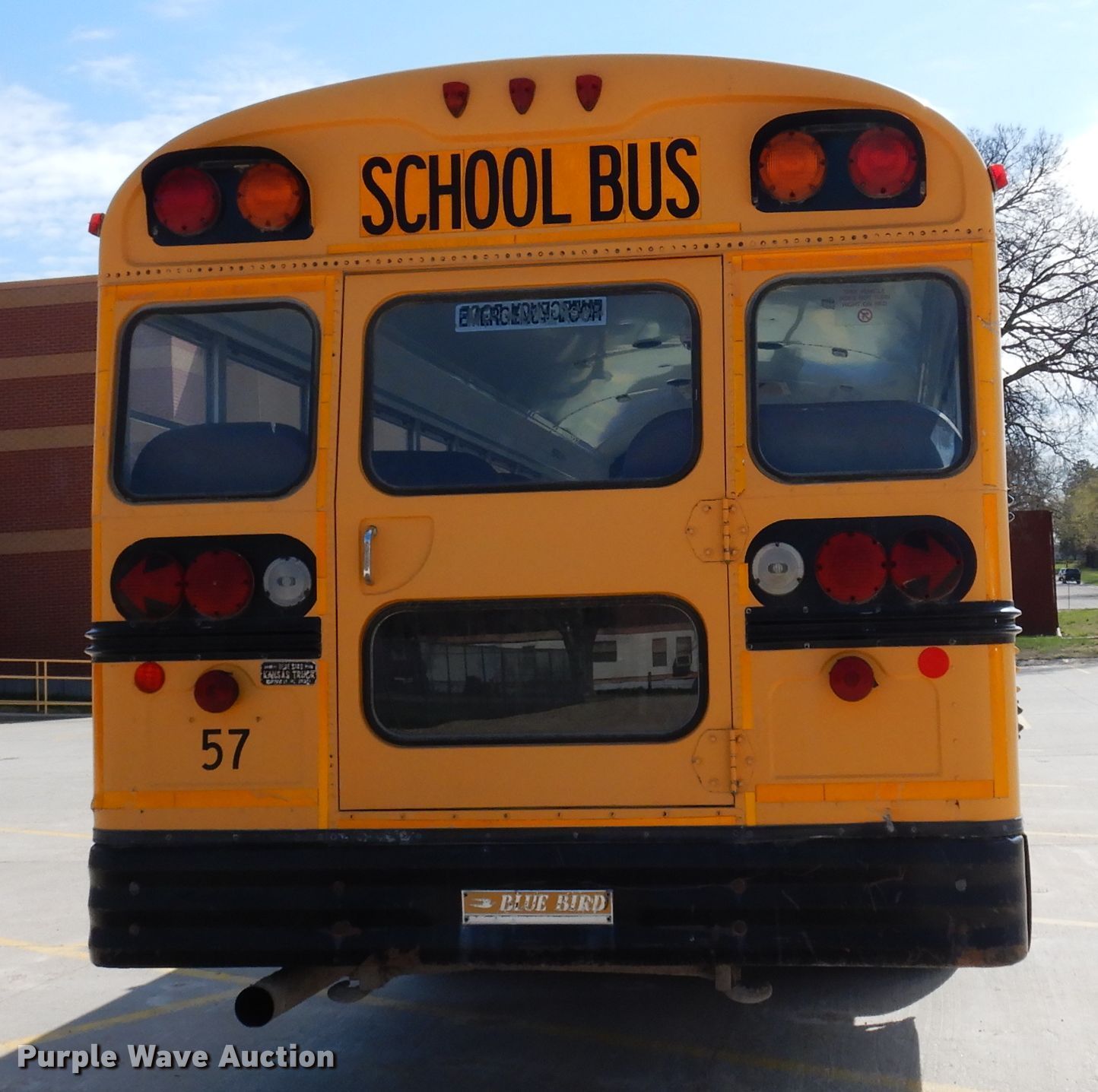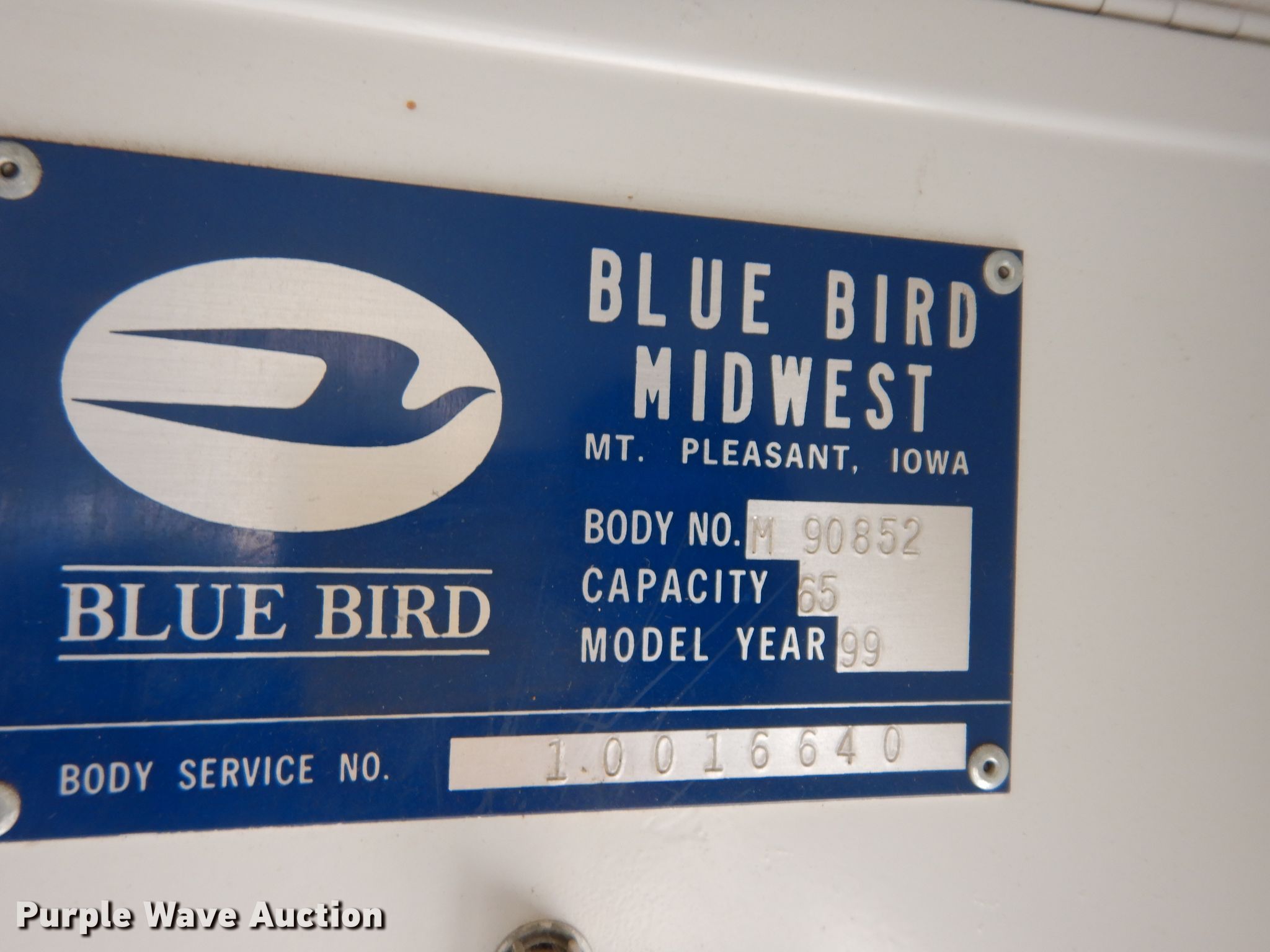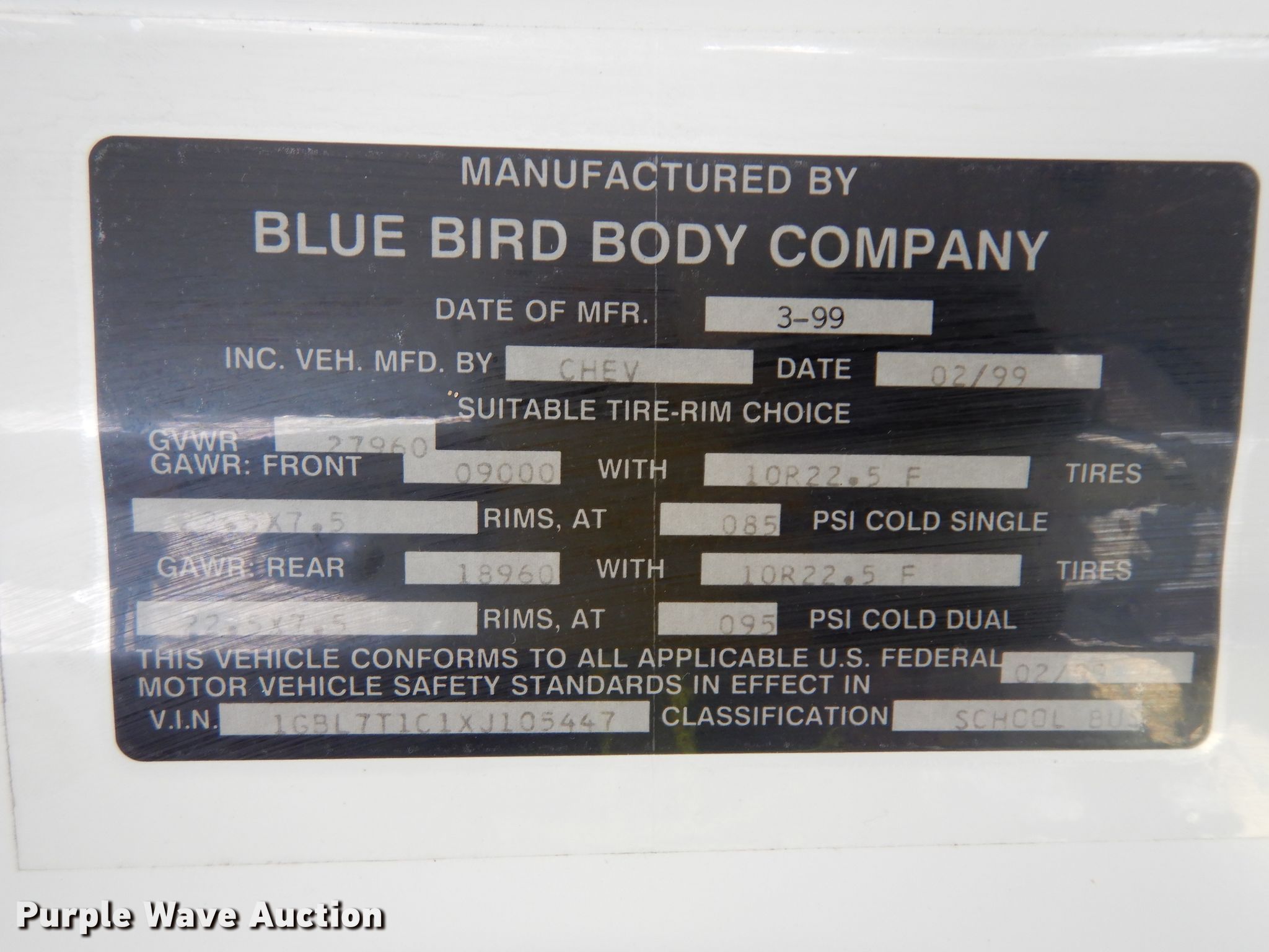 Purple Wave is selling a used Bus in Kansas. This item is a 1999 Chevrolet CV2000 school bus with the following: 209,315 miles on odometer, Caterpillar 3126 7.2L L6 diesel engine, 190 HP, Serial 7A552361, Automatic transmission, Single axle, Heat, Heated mirrors, 65 passenger capacity, Spring suspension, Hydraulic brakes, 261" wheelbase, Firestone 10R22.5 tires, GVWR 27,960 lbs, Decals will be removed prior to auction, Unit# 57
