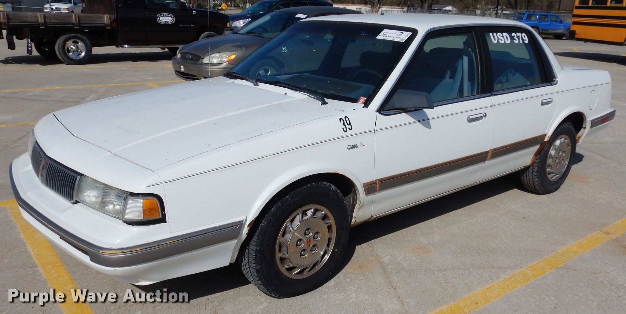 1996 Oldsmobile Ciera SL. 186,875 miles on odometer, Miles may vary, unit still in use. Engine Displacement: 3.1L V6 OHV 12V, Cylinders: 8, Fuel type: Gas. Transmission Automatic. Interior AC, Heat, Powered windows, Powered locks, Cruise control. Tires Size: 205/70R14. Notes Driver interior power panel unattached, Decals will be removed prior to auction. Kansas title. 1G3AJ55M1T6395771. Clay Center, KS 67432